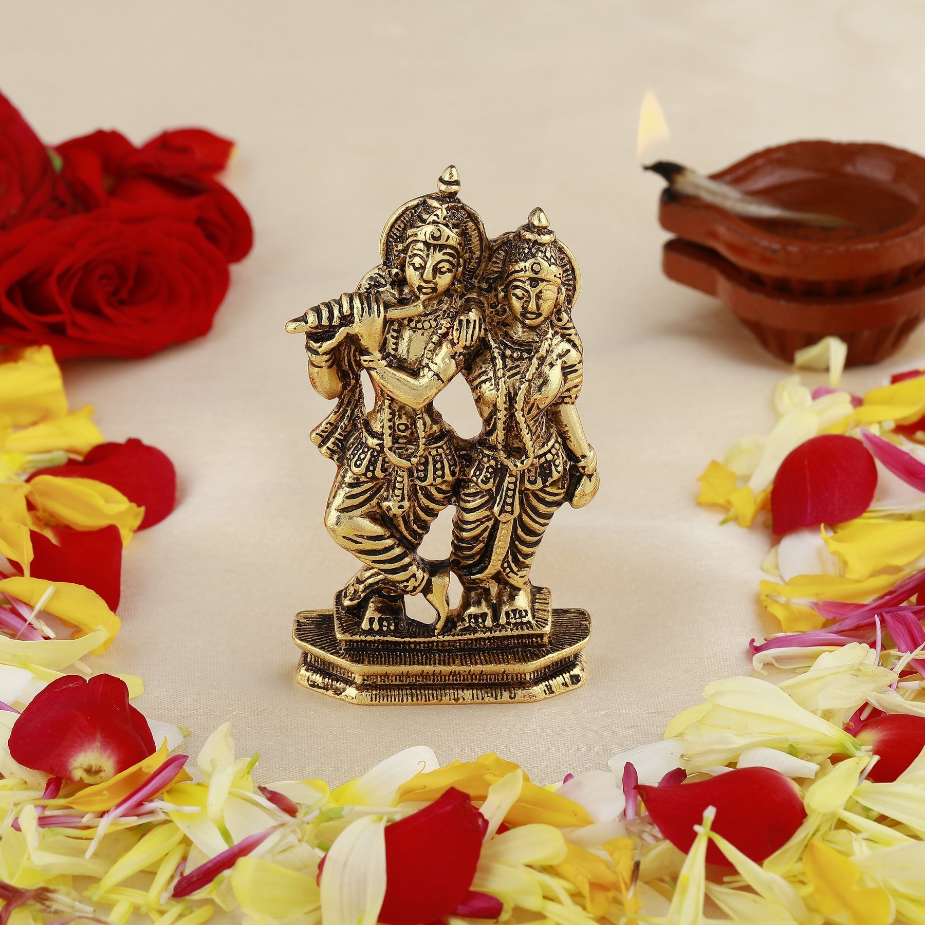 • Lord Radha and Krishna symbolize love, passion, harmony, and prosperity. And to bring all the goodness to your home, here is an idol of Radha Krishna that uplifts the simplicity of your home decor. You can also surprise your near and dear ones with this radha krishna Idol/Murti on housewarming ceremonies or grand poojas and enjoy every moment.
