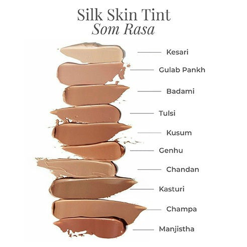 Experience the lightweight and soft touch of the Som Rasa Silk Skin Tint. Named after the revered plant Indian vinea, this skin tint is a lightweight formulation to softly blur out imperfections. Almost like a finishing cream and much lighter than a conventional foundation, this skin tint can be used as the first step of your makeup routine and the last step of your skincare routine for a healthy glow. The base of this light-textured and silky tint is enriched with freshly hand-pressed oils of Moringa, Almond, Sunflower, and Green Tea.