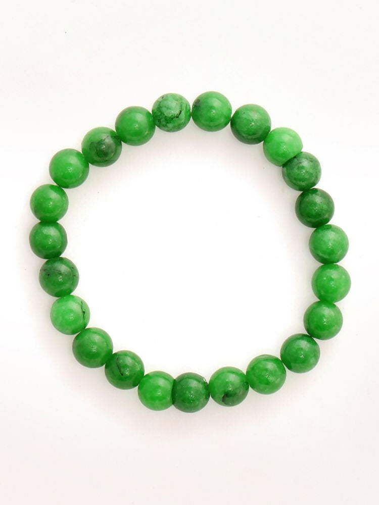 Invite harmony and elegance into your accessory collection with Ruby Raang’s Green Beads Elastic Bracelet, handcrafted from Green Jade stones. Celebrated for its nurturing and balancing properties, Green Jade is believed to attract prosperity and emotional well-being. The polished round beads radiate a serene, earthy green that complements a range of styles, while the elastic cord ensures a secure and comfortable fit for everyday wear. Minimal yet meaningful, this bracelet brings a refreshing touch of nature-inspired beauty to any ensemble. Style tip: Pair it with whites, neutrals, or florals to highlight the calming tone of the jade.