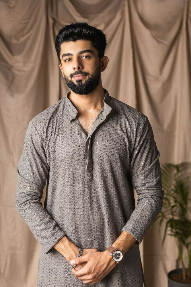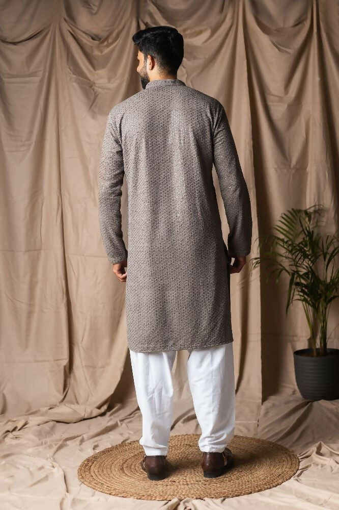 Grey Rayon Thread Embroidery Work Kurta Set - Mahotsav