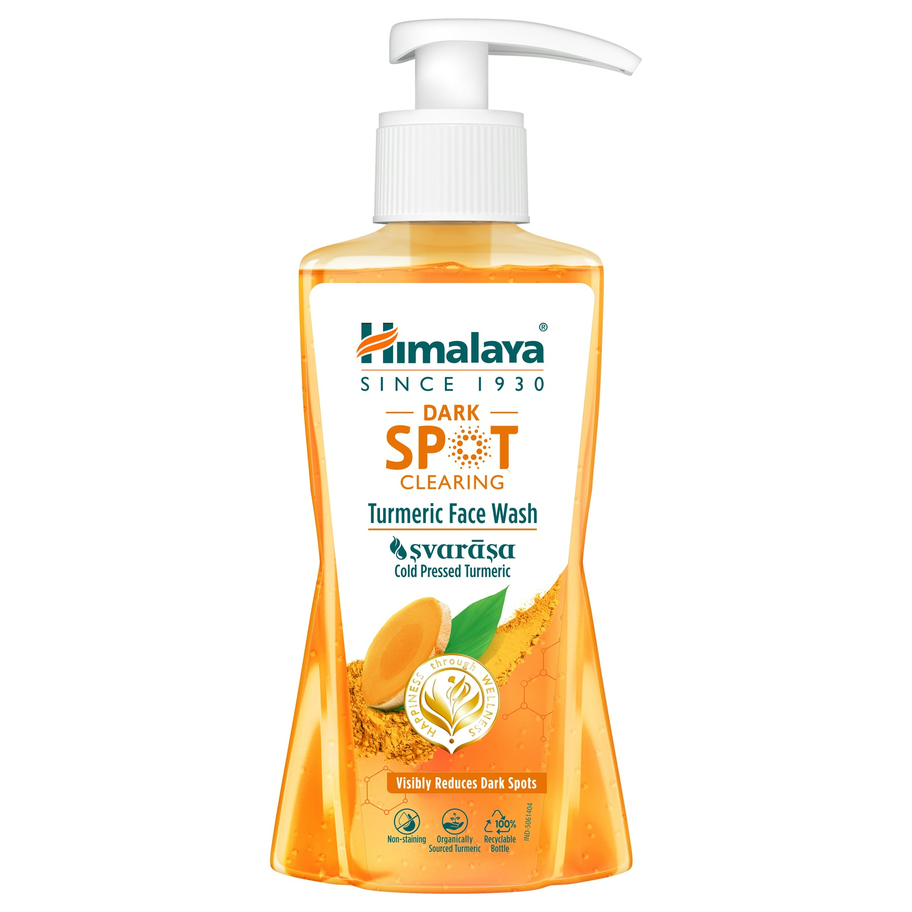- Apply a small amount of Himalaya Dark Spot Clearing Turmeric Face Wash and gently work up a lather using a circular motion. Wash off and pat dry.