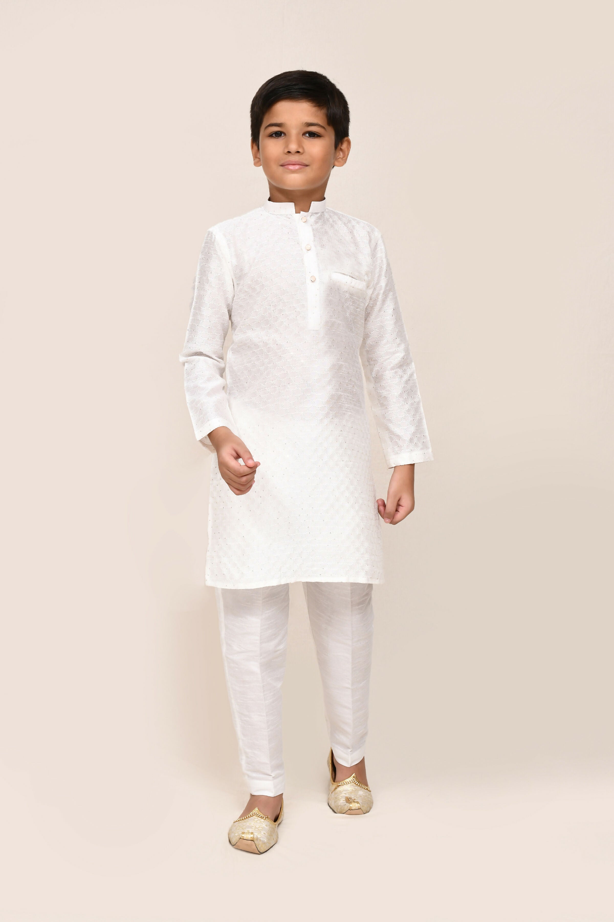 Joban Fashion Art Silk White Kurta With Straight Fit Pant