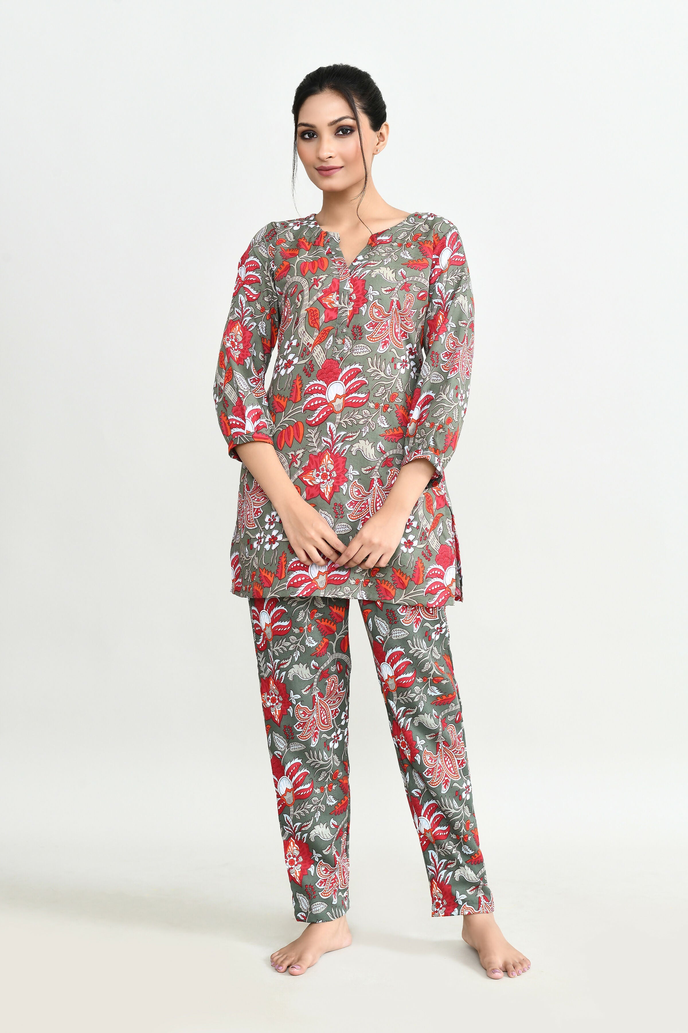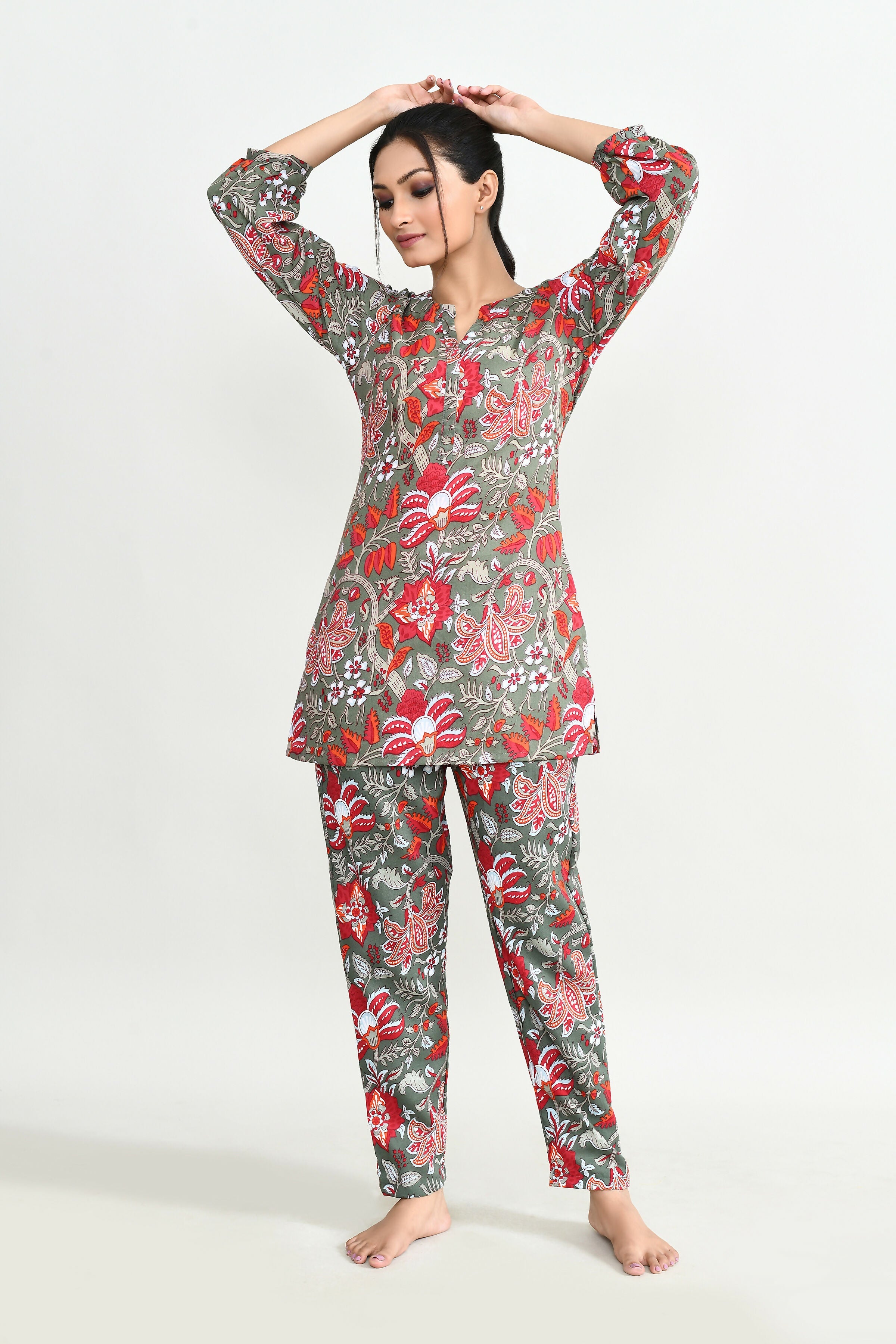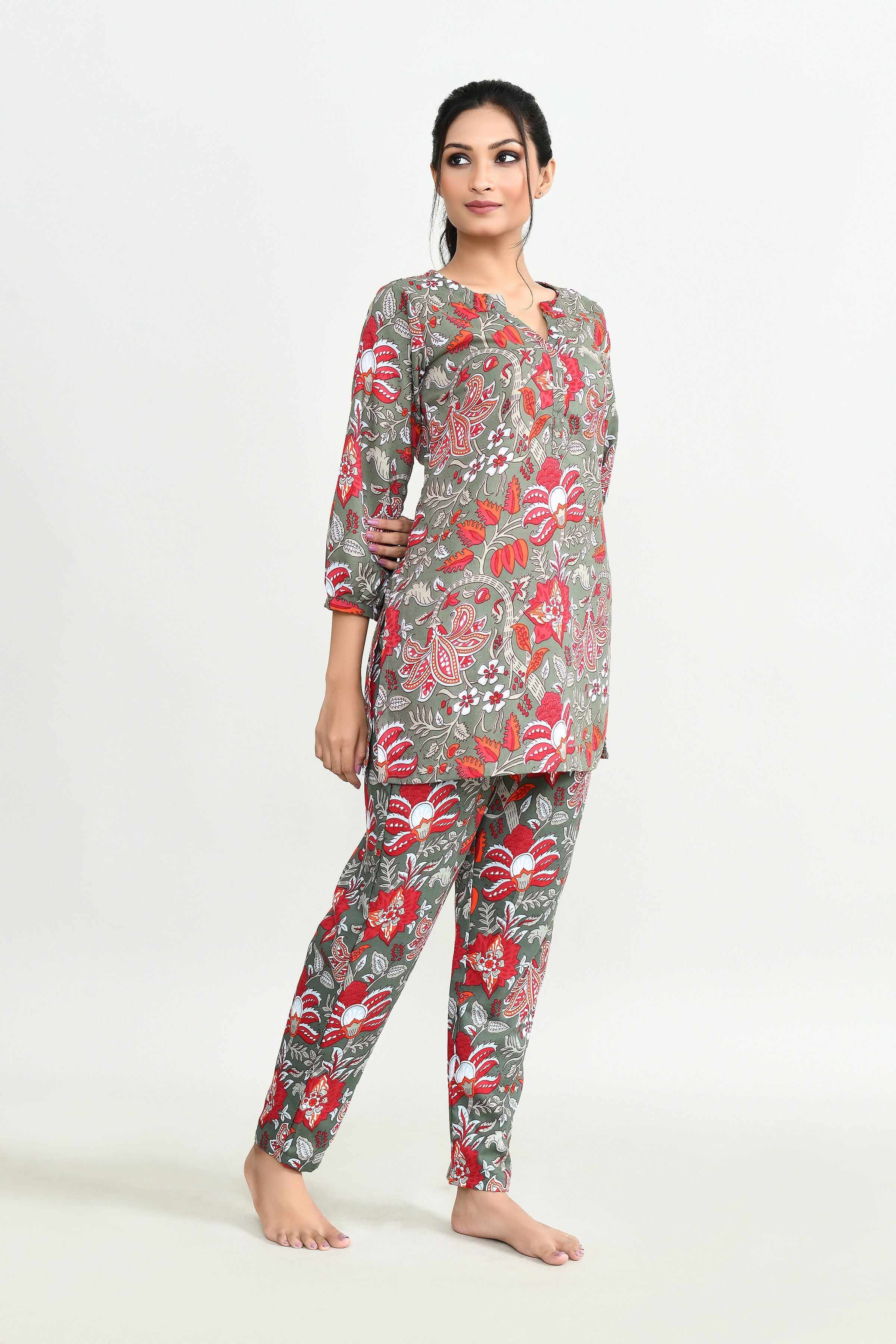 Joban Fashion Beautiful Maroon & Green Cotton Cod Set