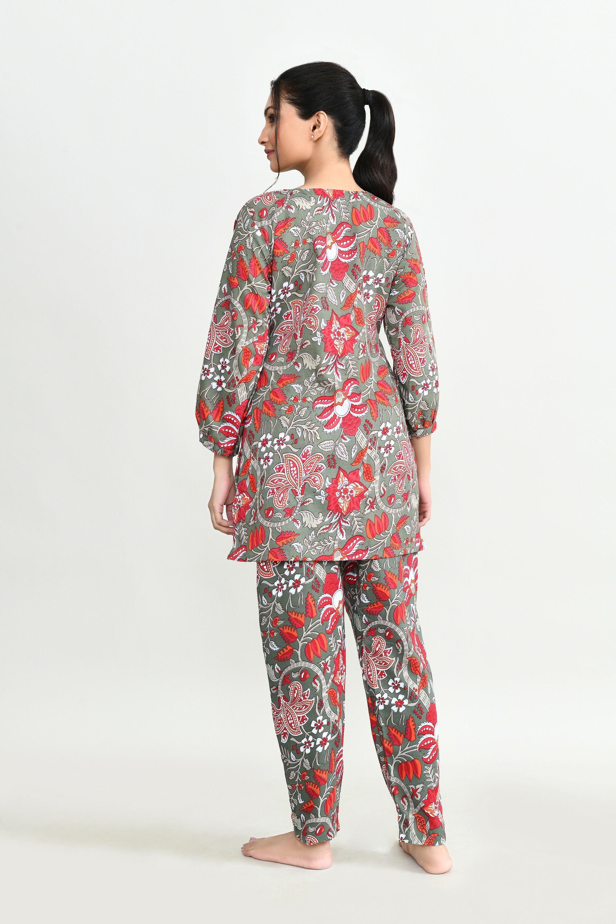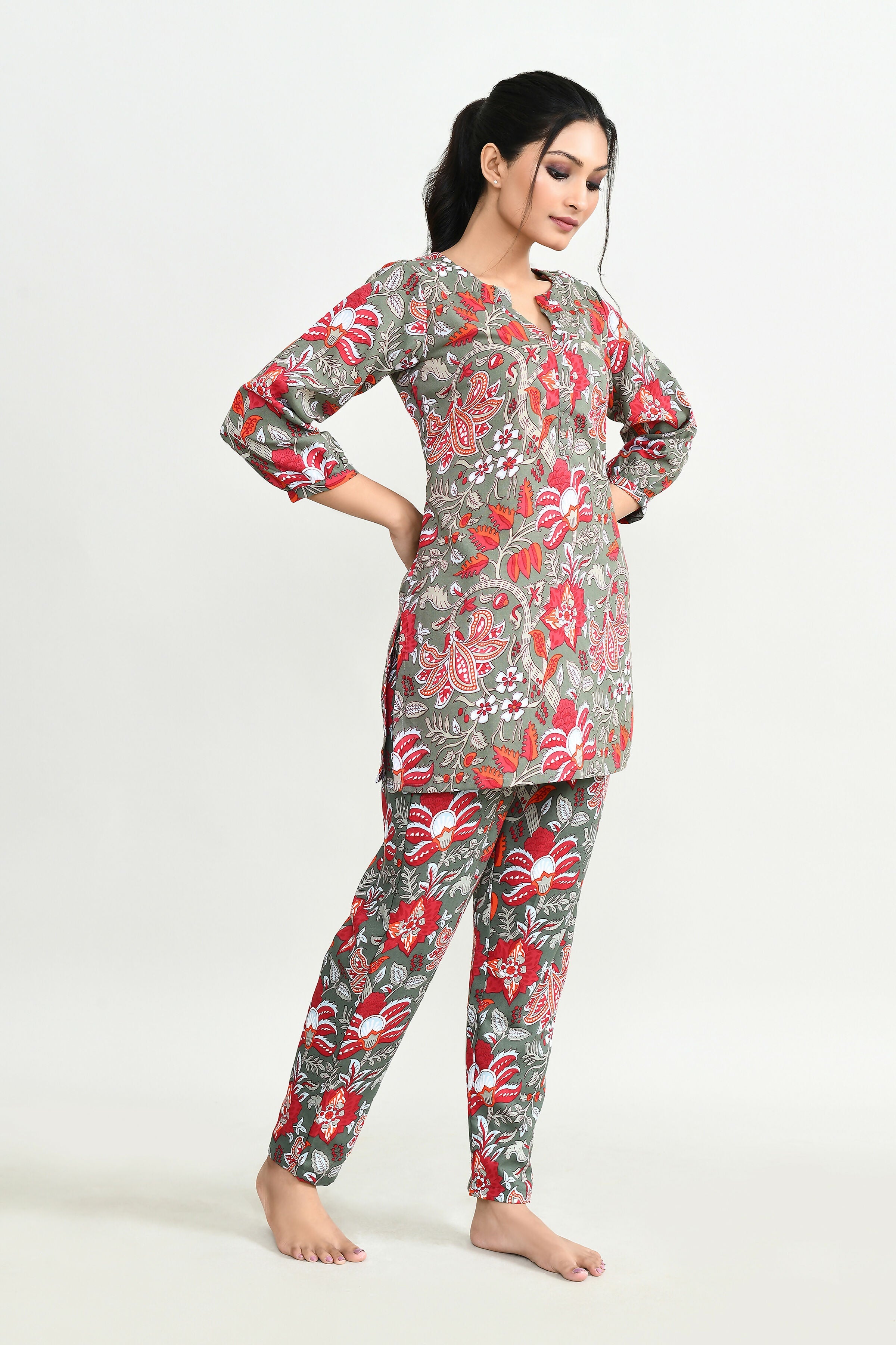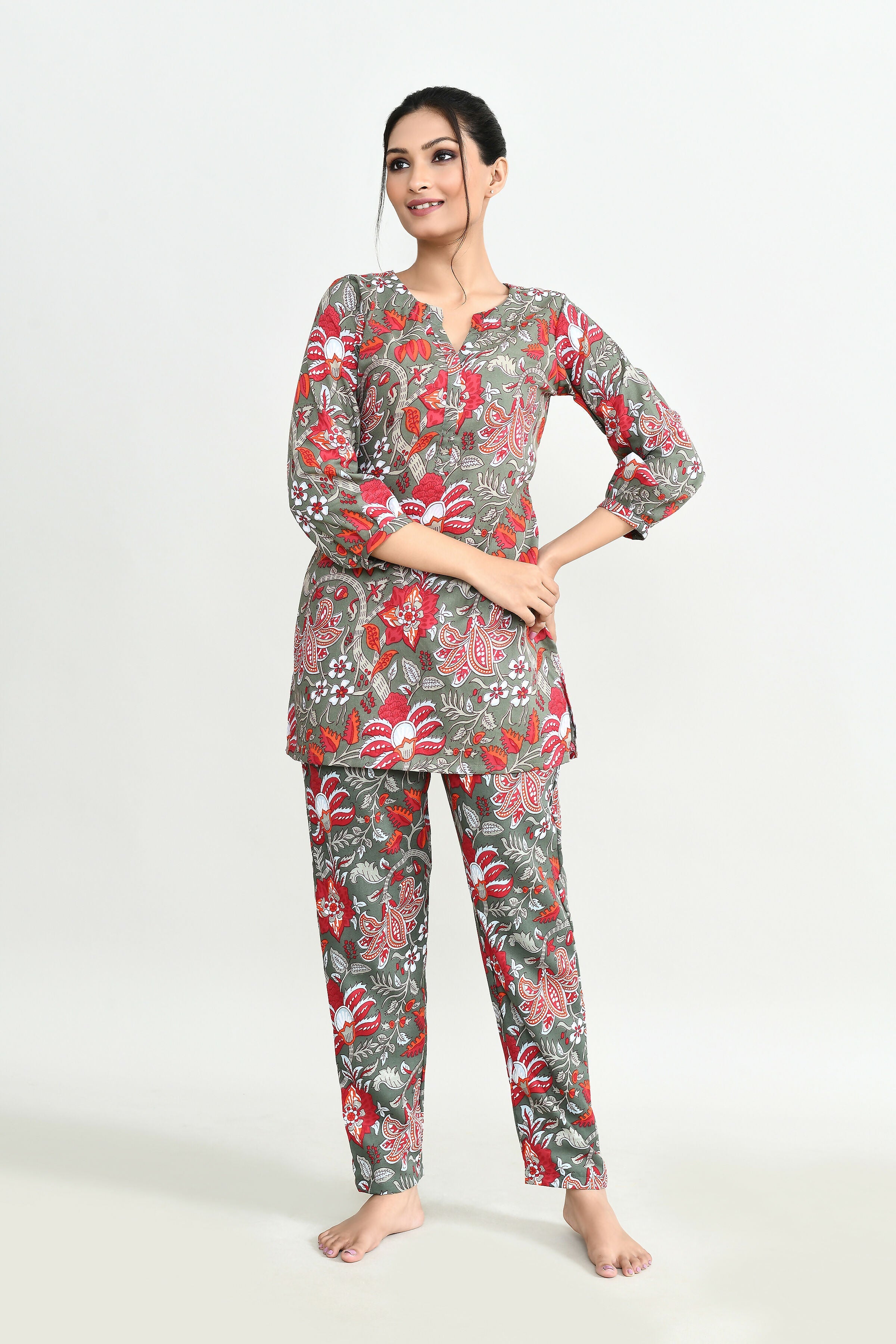 Joban Fashion Beautiful Maroon & Green Cotton Cod Set