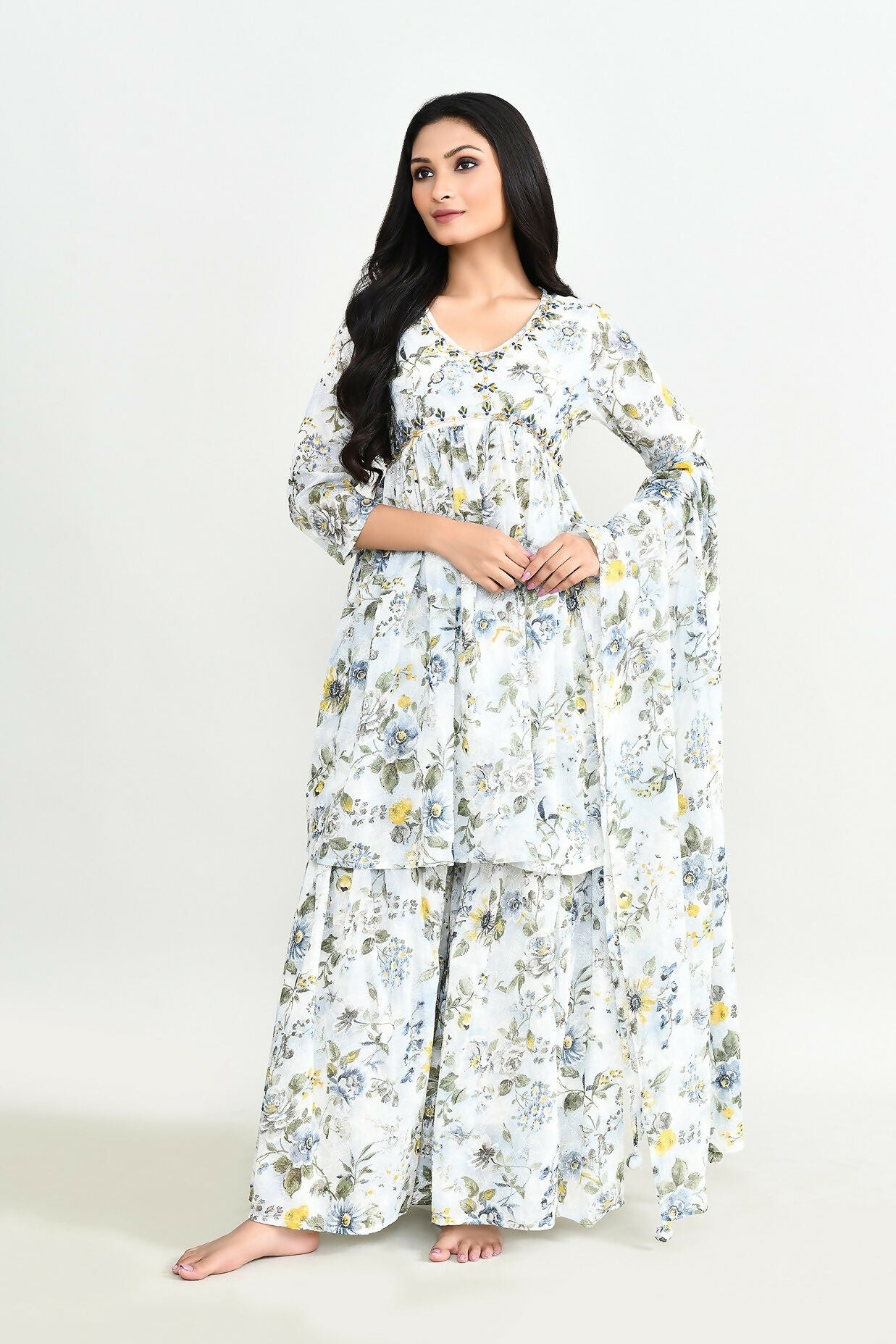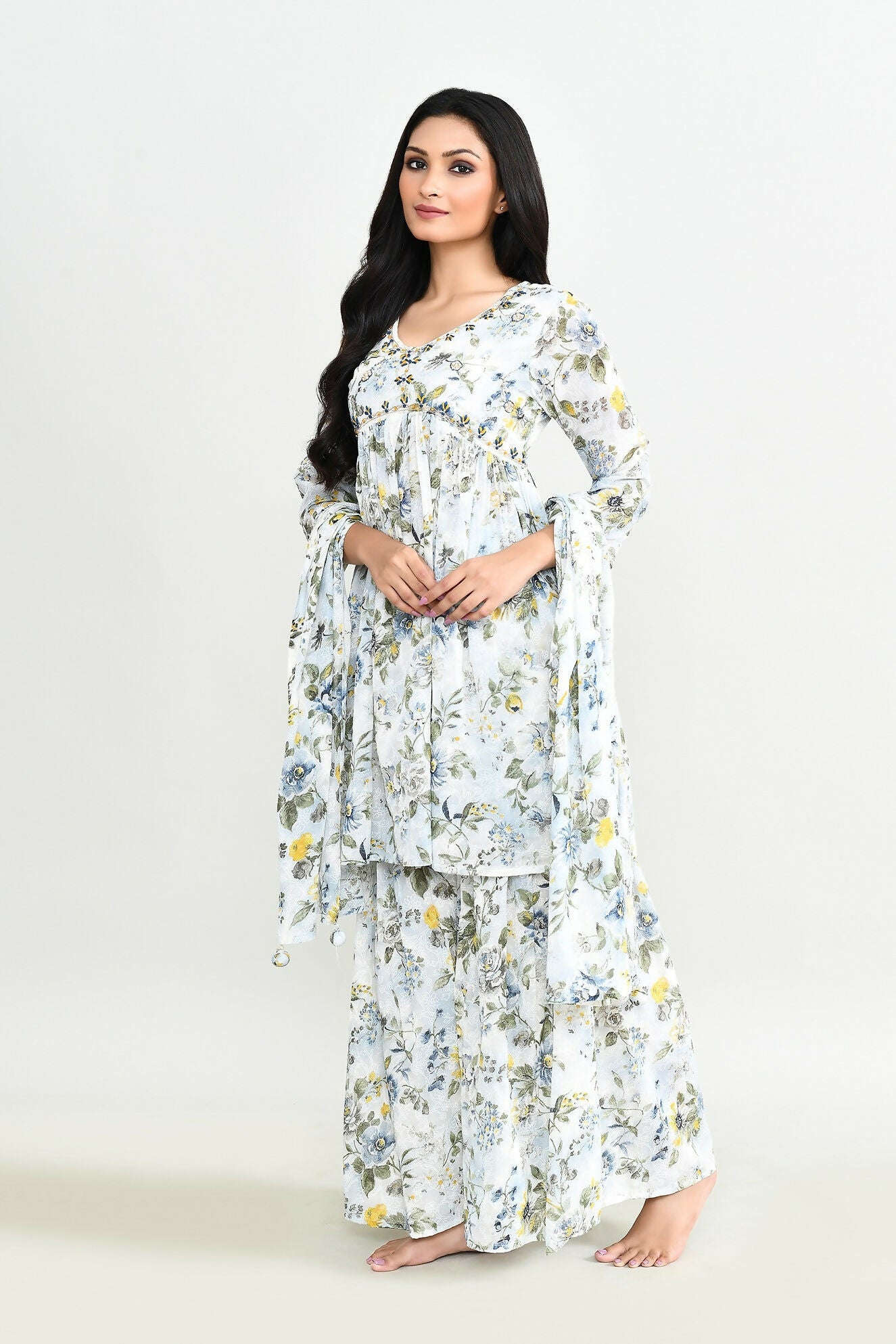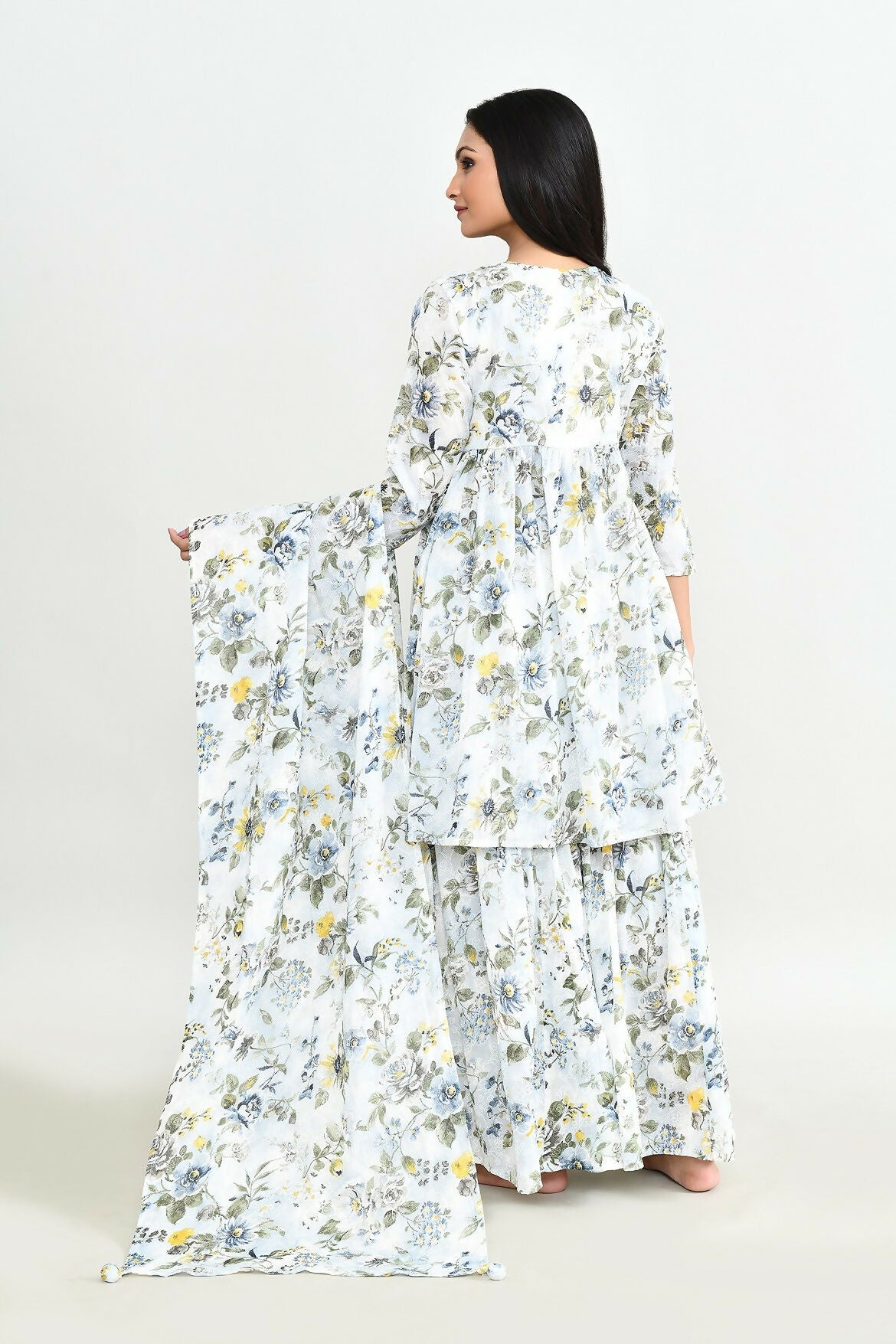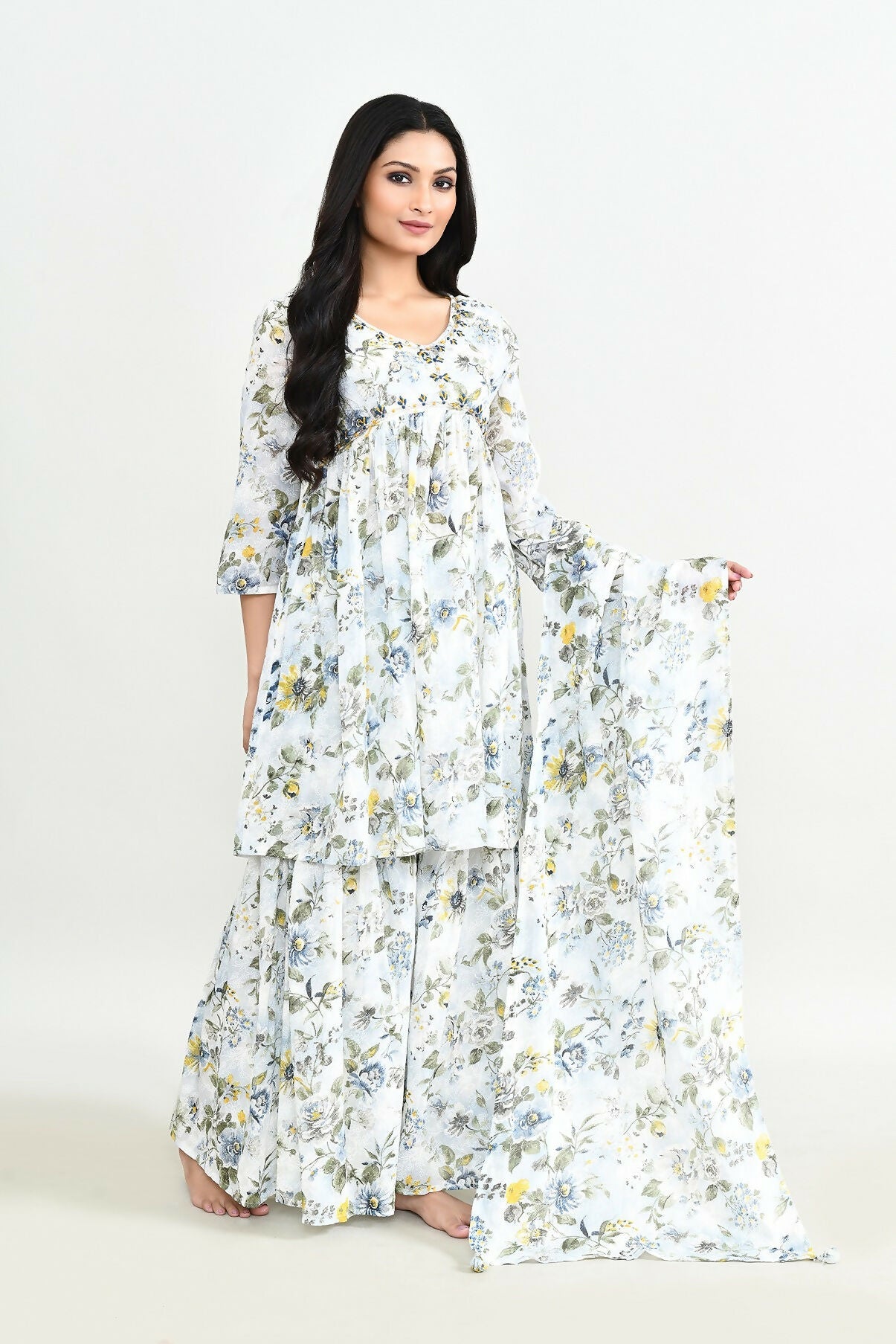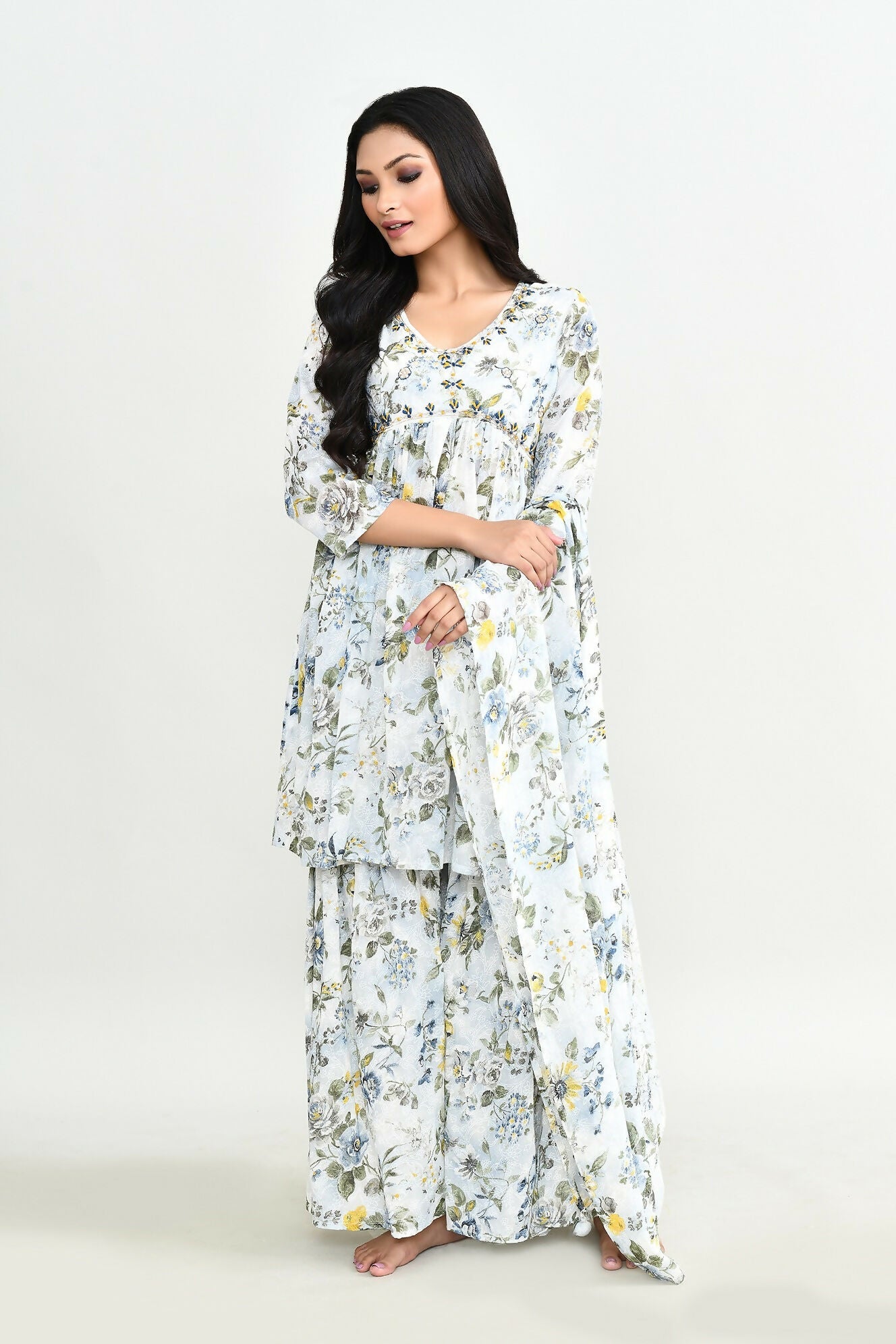 Joban Fashion Beautiful White Printed Cotton Sharara