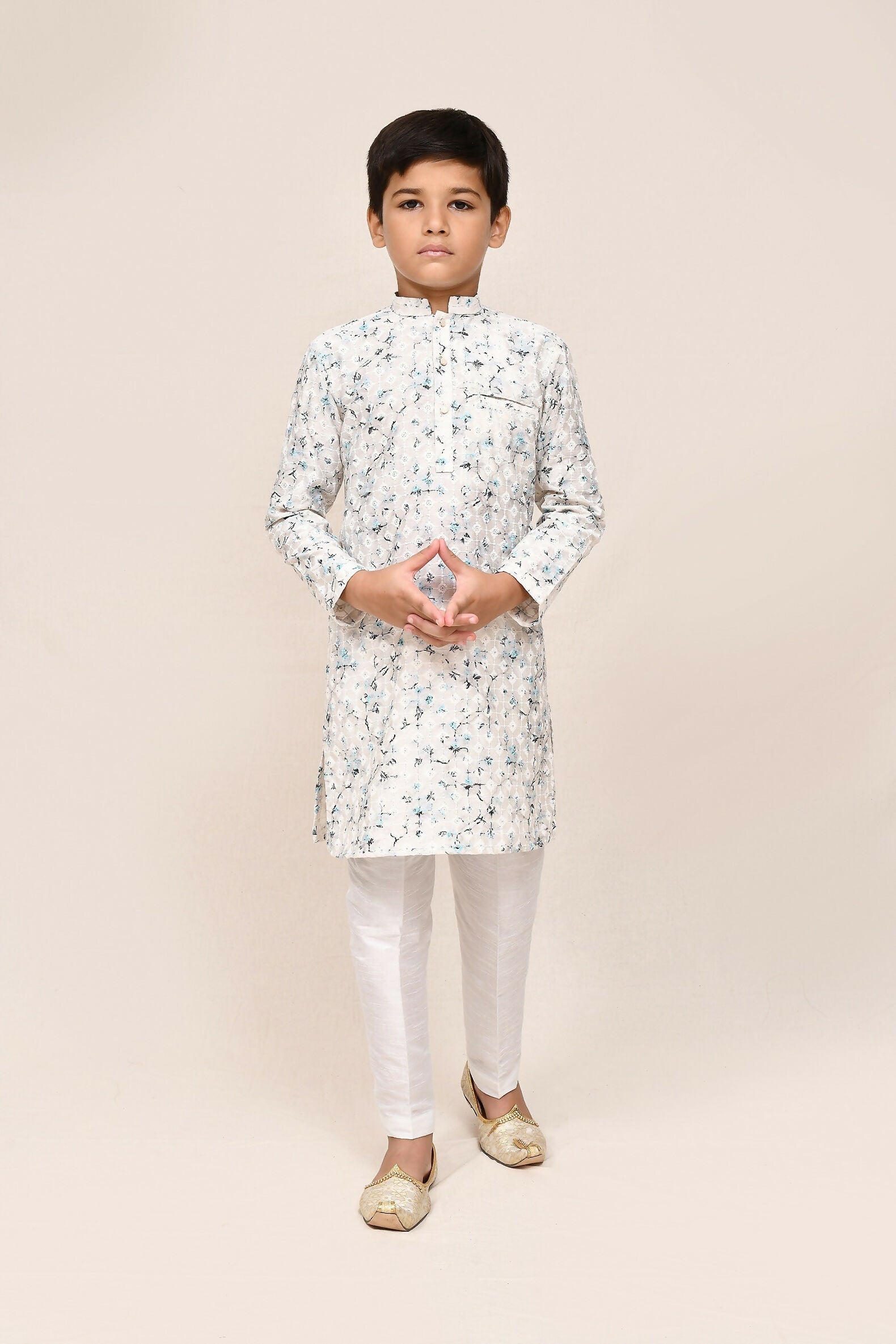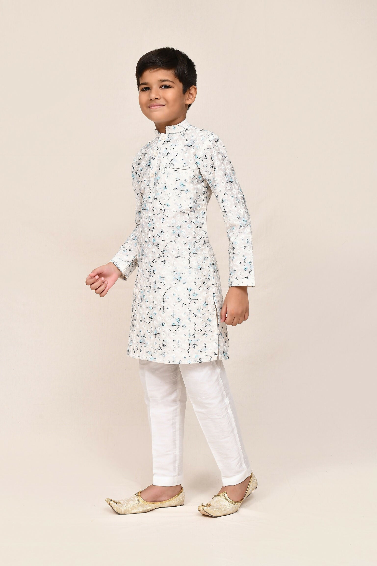 Joban Fashion Cotton Based Full Thread Work White Kurta With Straight Fit Pant