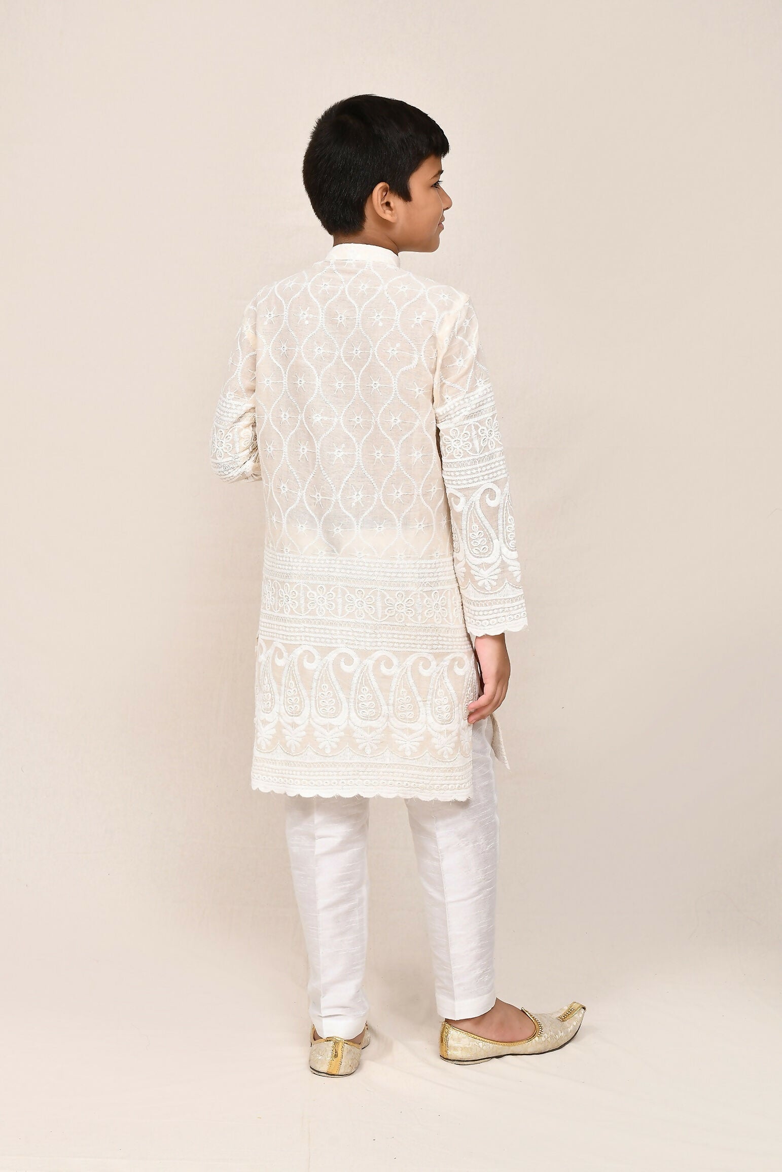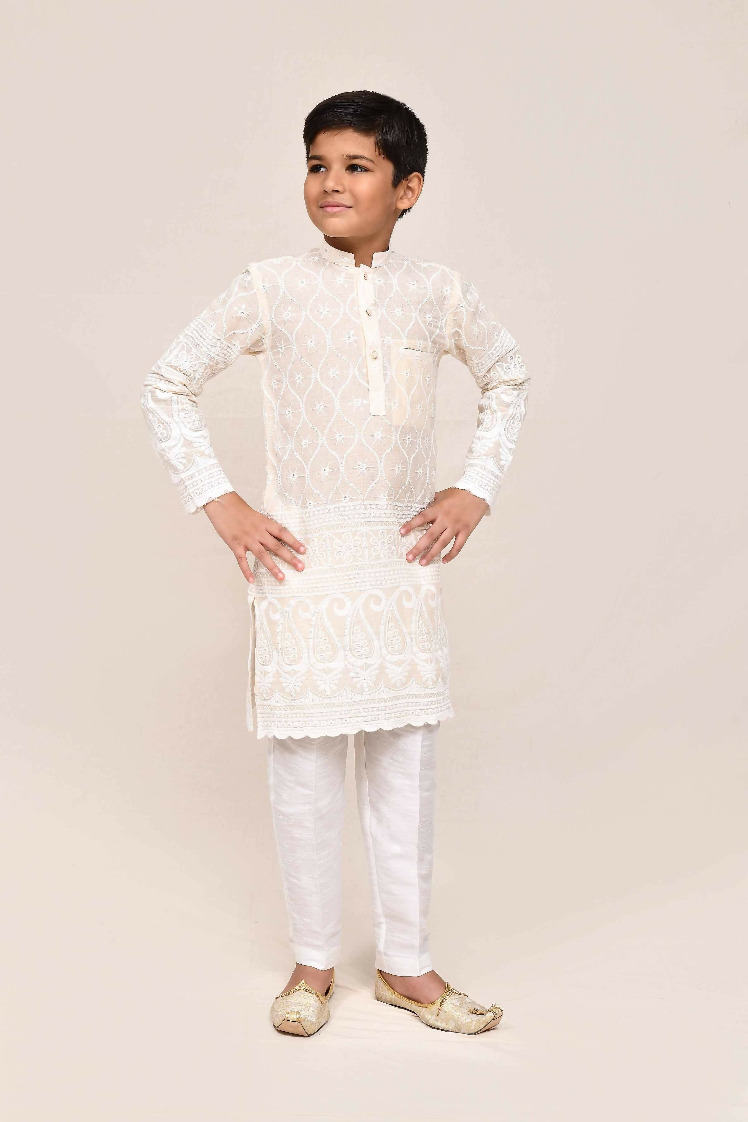 Joban Fashion Cotton Based With Thread & Sequence Work Cream Kurta With Straight Fit Pant