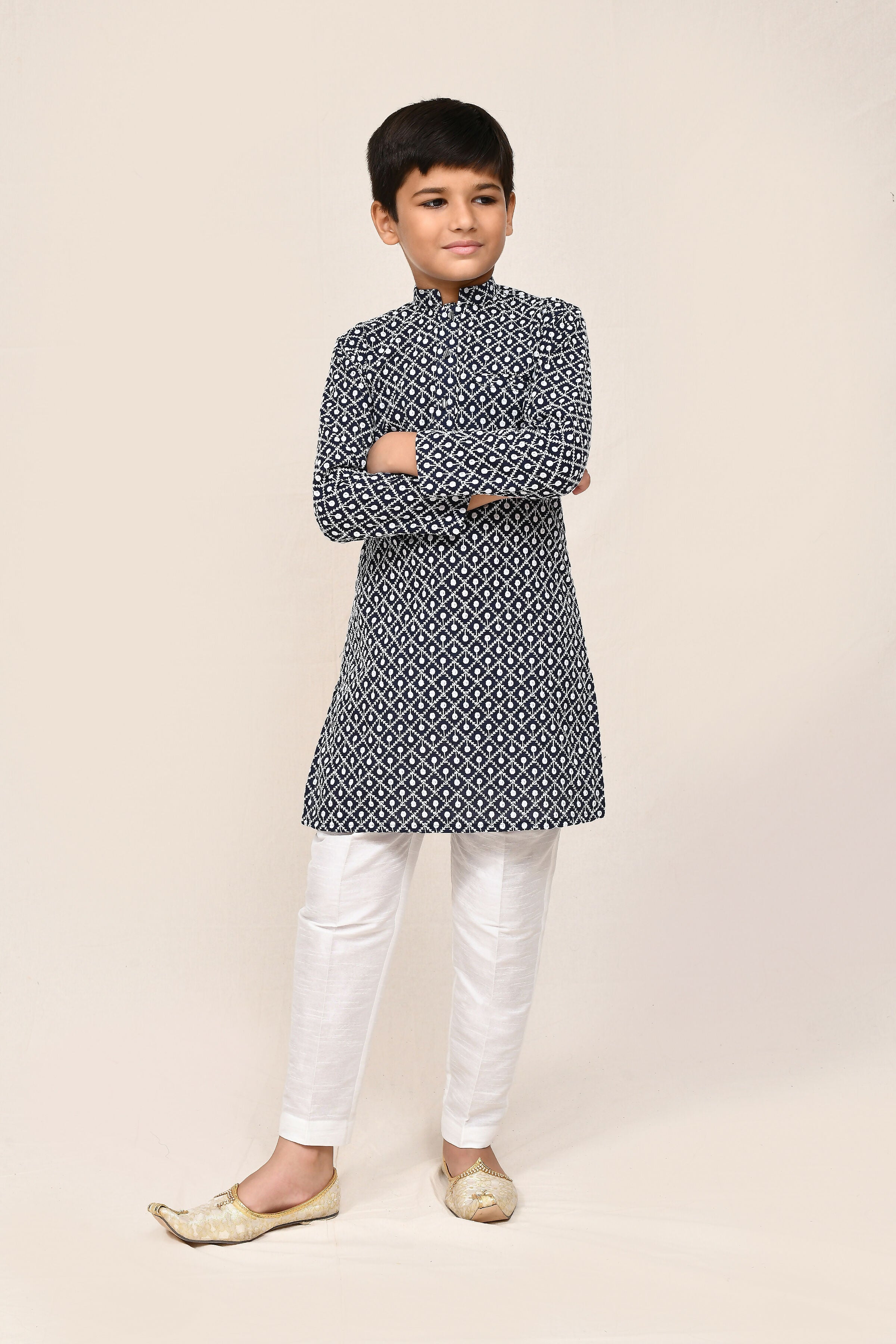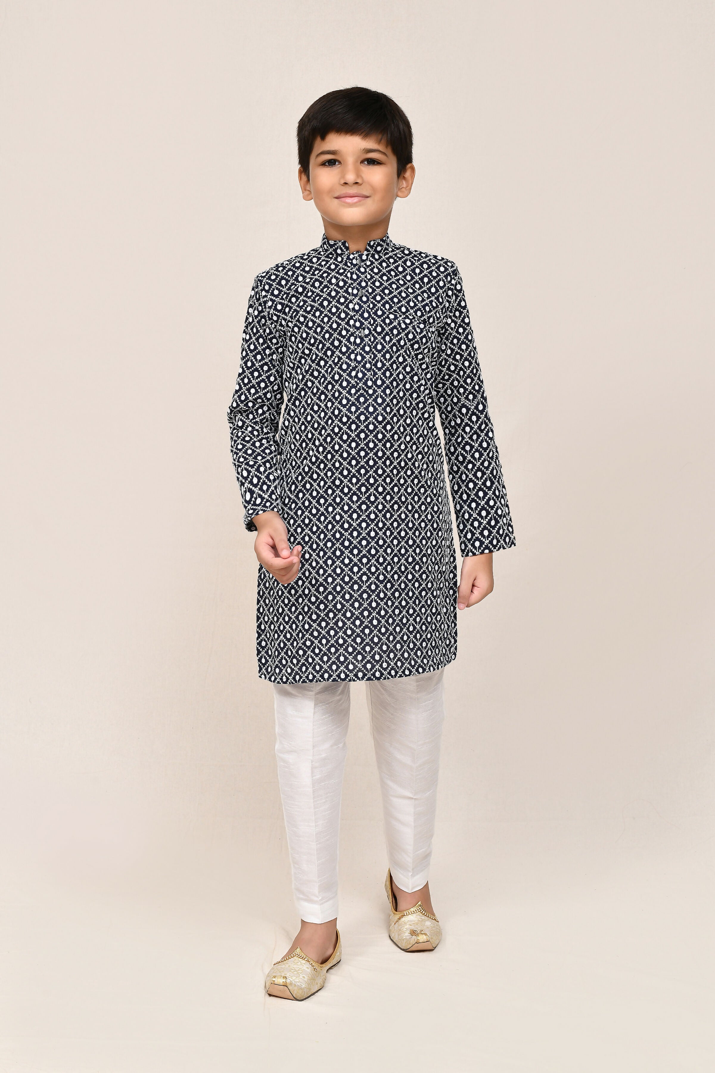 Joban Fashion Cotton Navy Blue Kurta With Straight Fit Pant