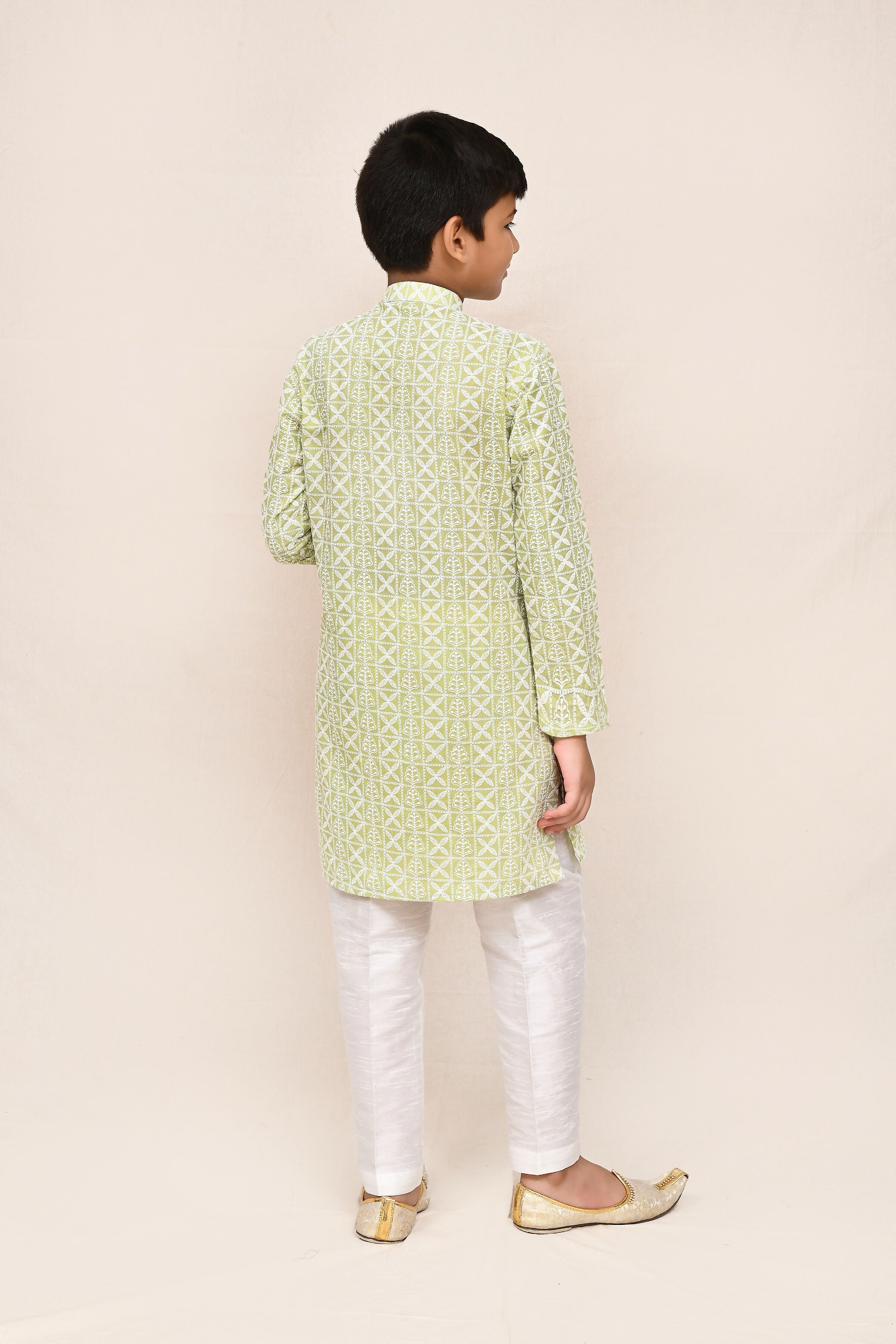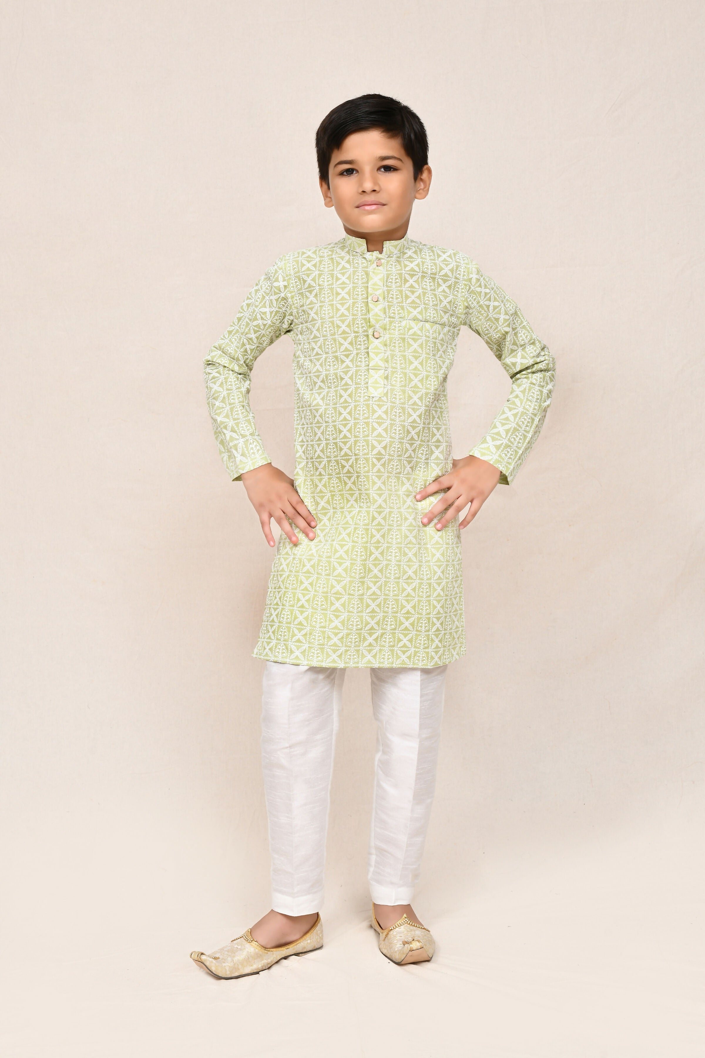 Joban Fashion Cotton Pastel Green Kurta With Straight Fit Pant