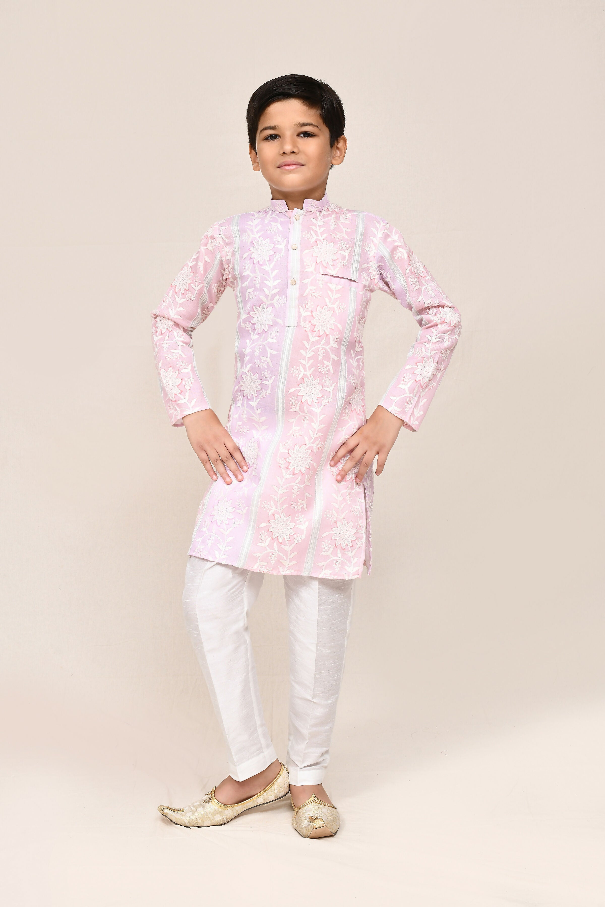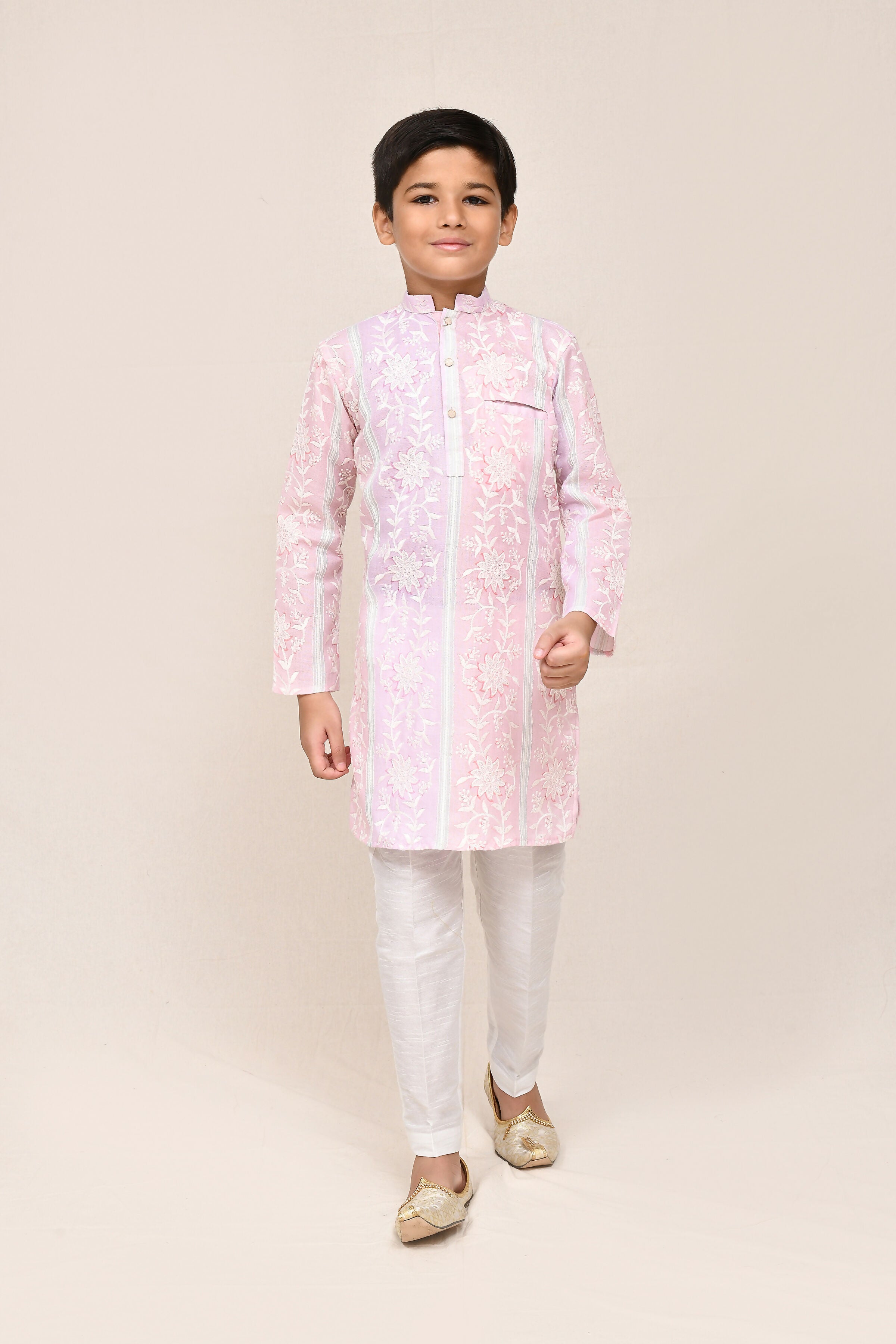 Joban Fashion Cotton Pink & Light Purple Kurta With Straight Fit Pant