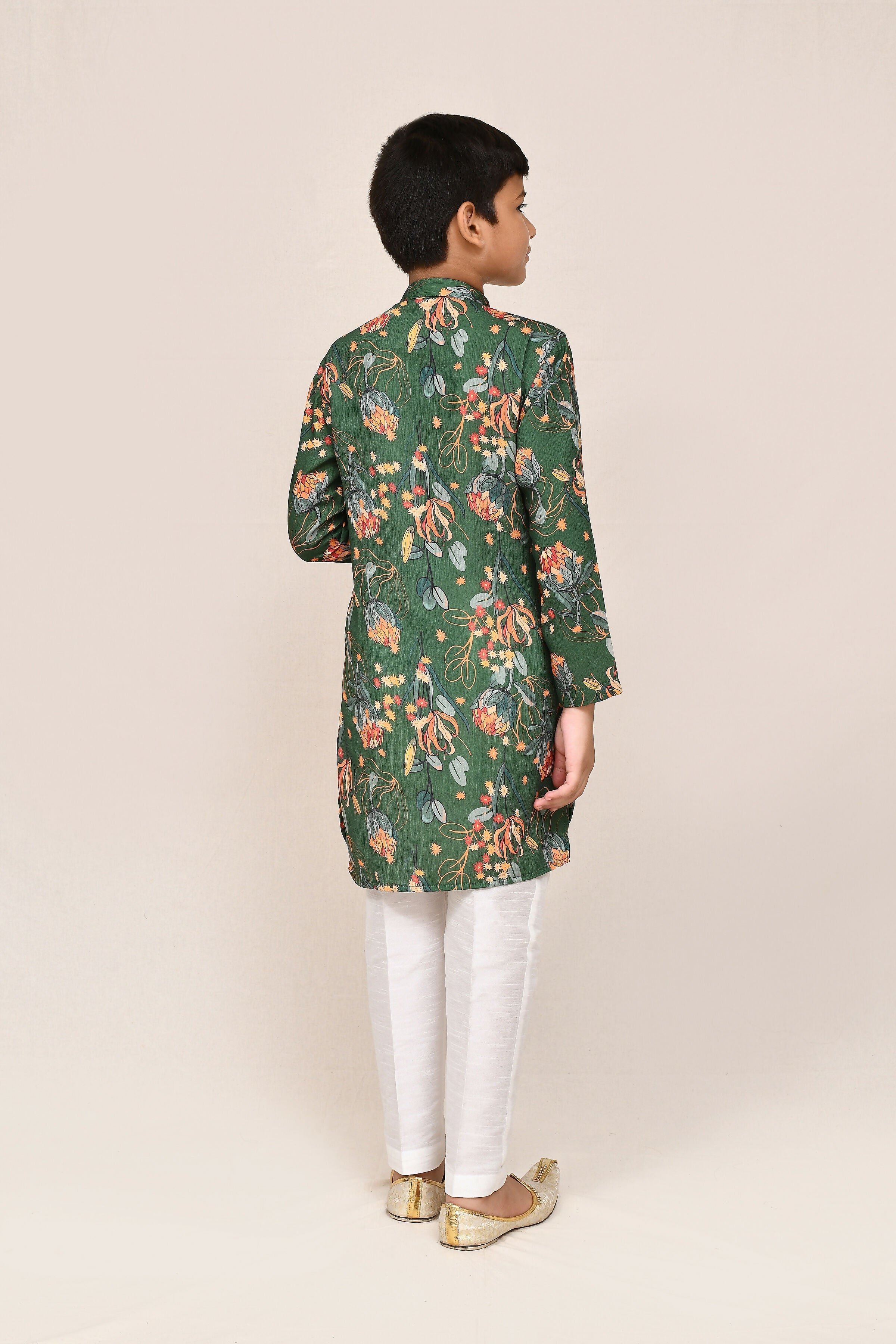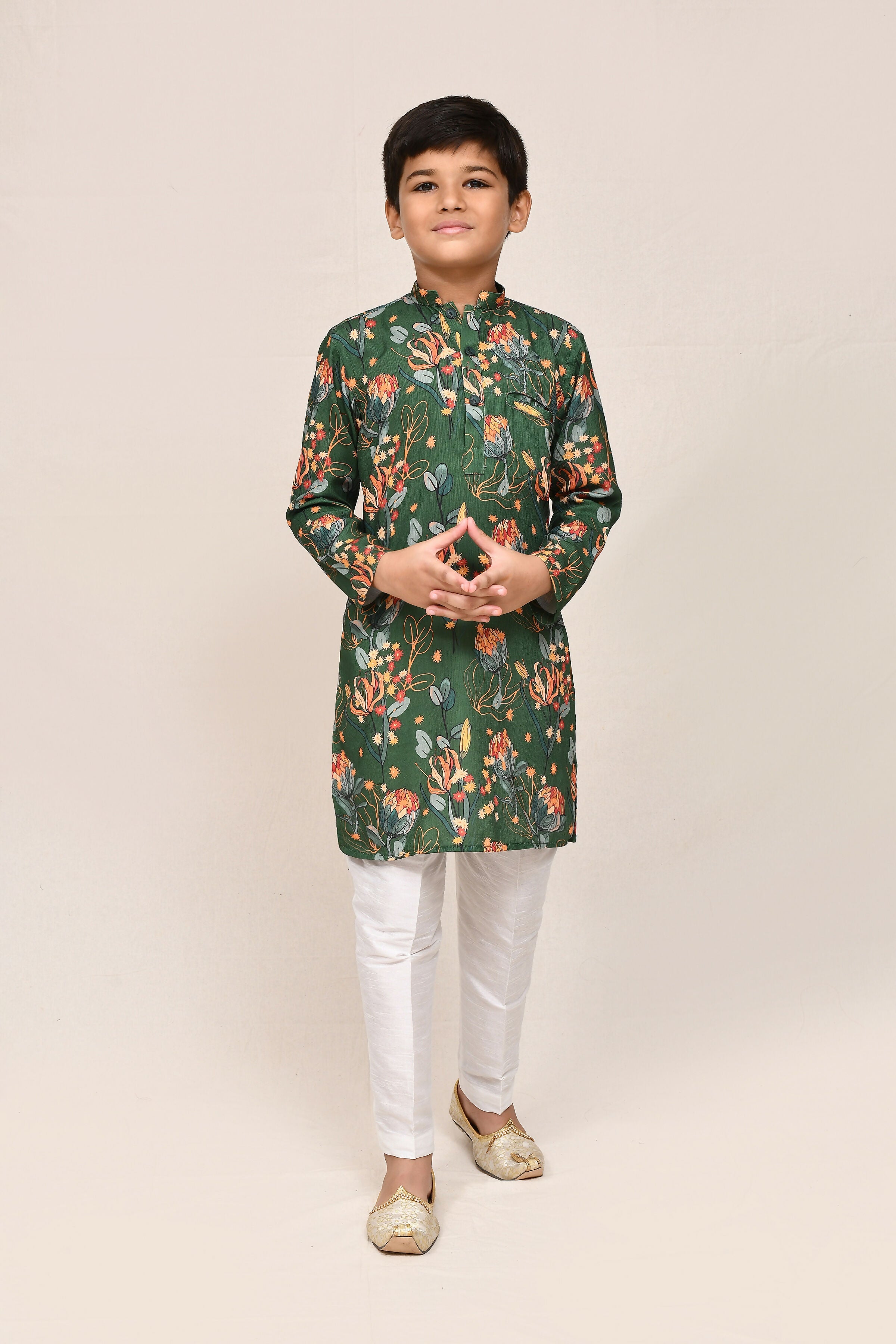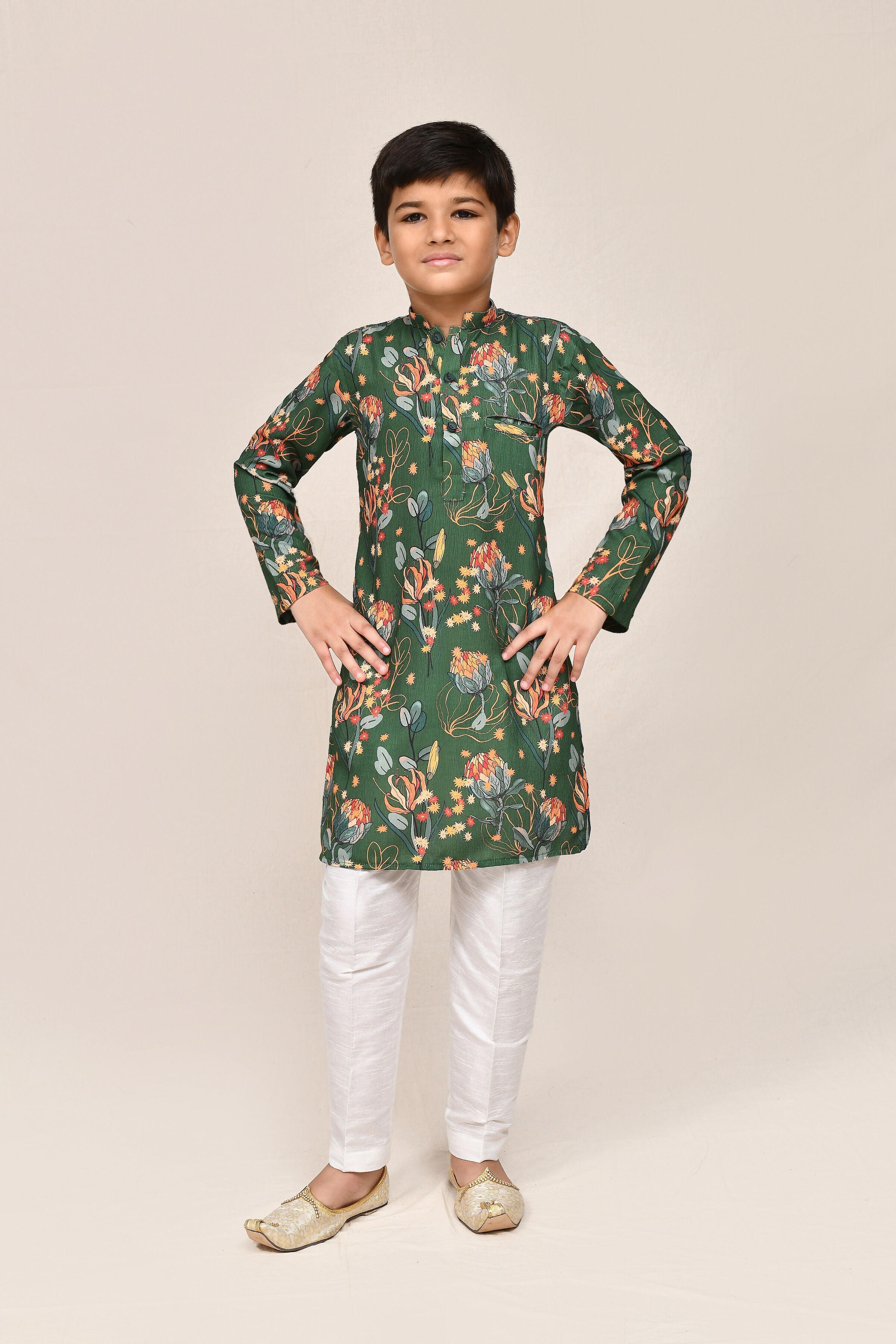 Joban Fashion Cotton Silk Green Kurta With Straight Fit Pant