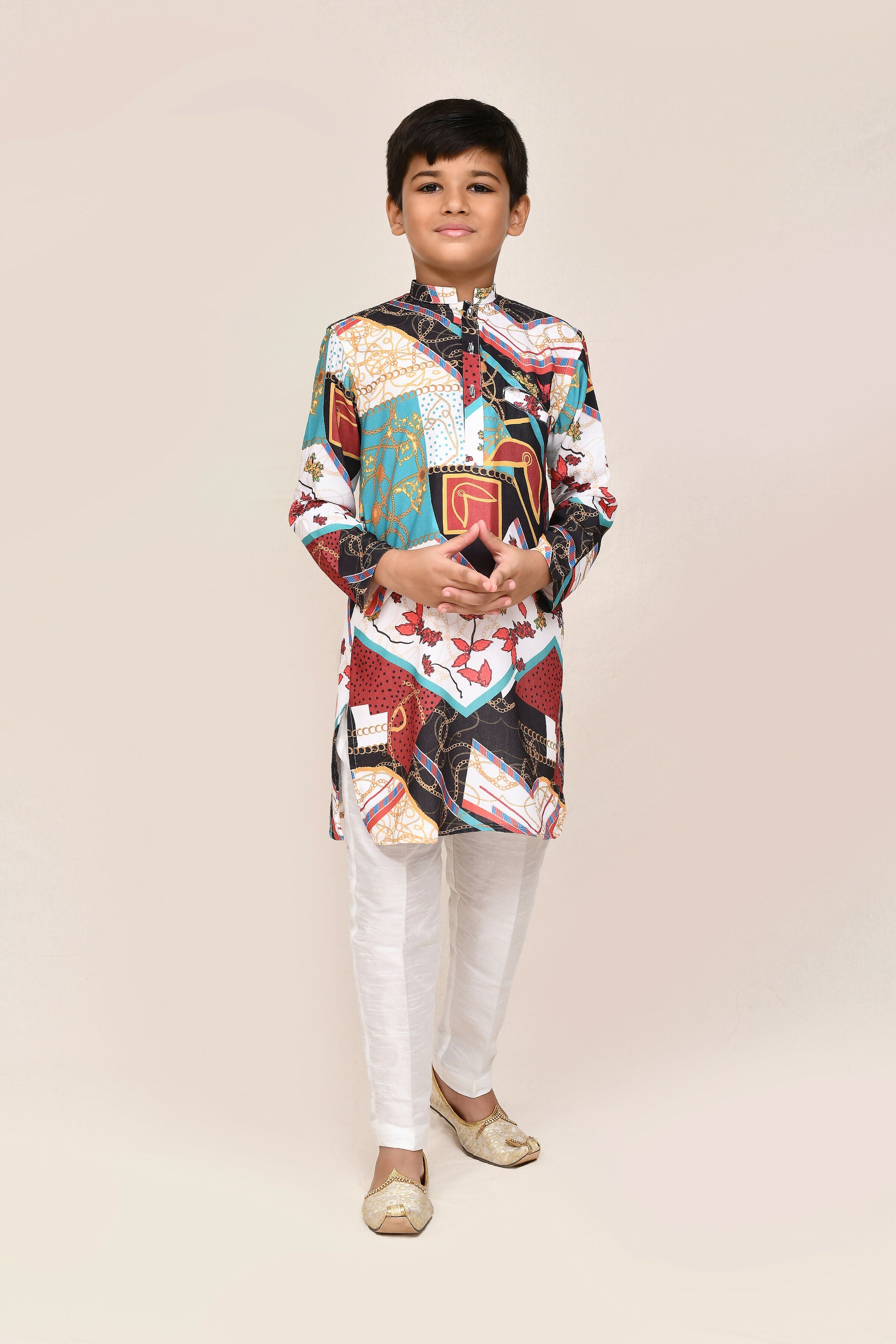 Joban Fashion Cotton Silk Multicolor Kurta With Straight Fit Pant