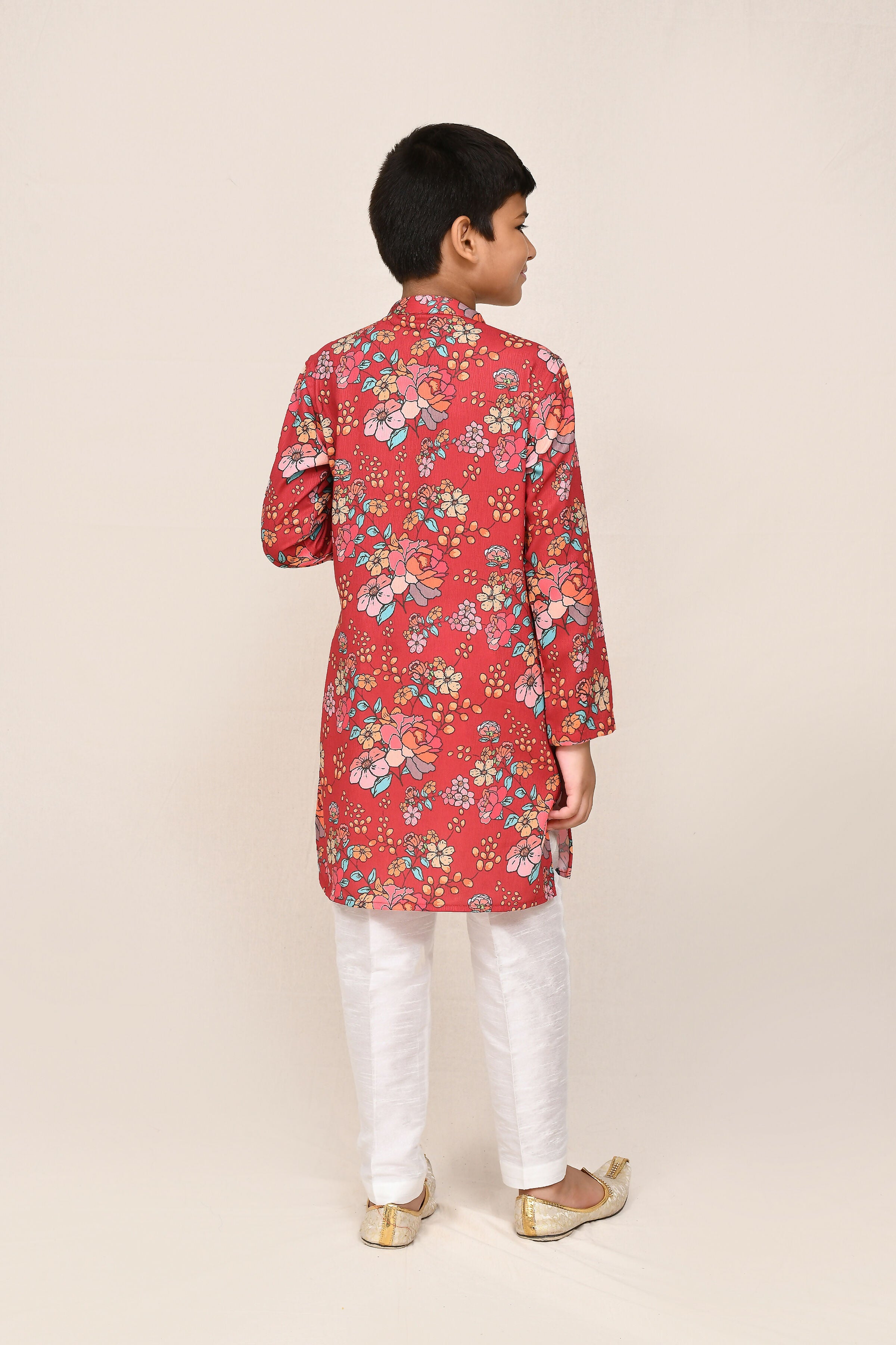 Joban Fashion Cotton Silk Red Kurta With Straight Fit Pant