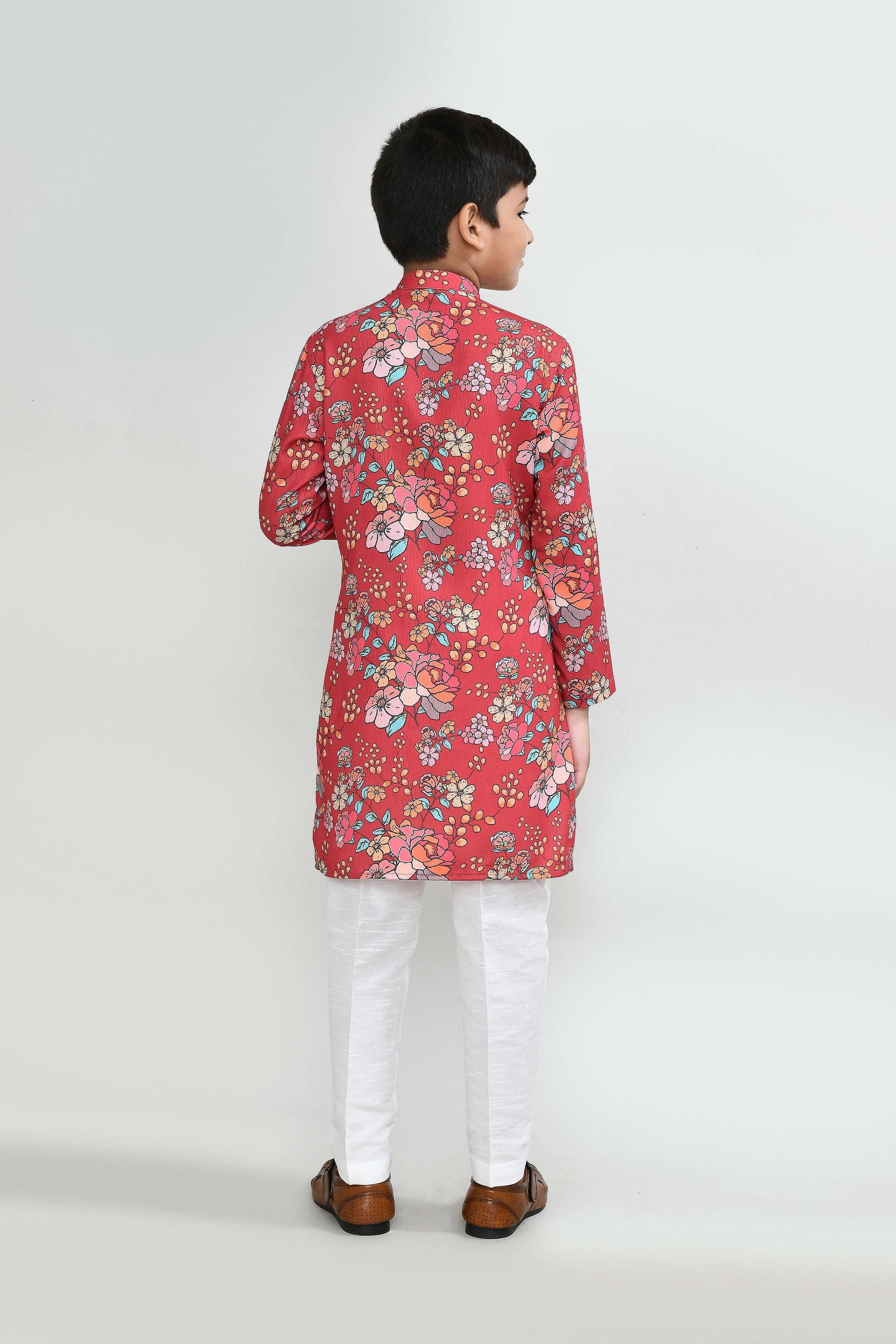 Joban Fashion Cotton Silk Red Kurta With Straight Fit Pant