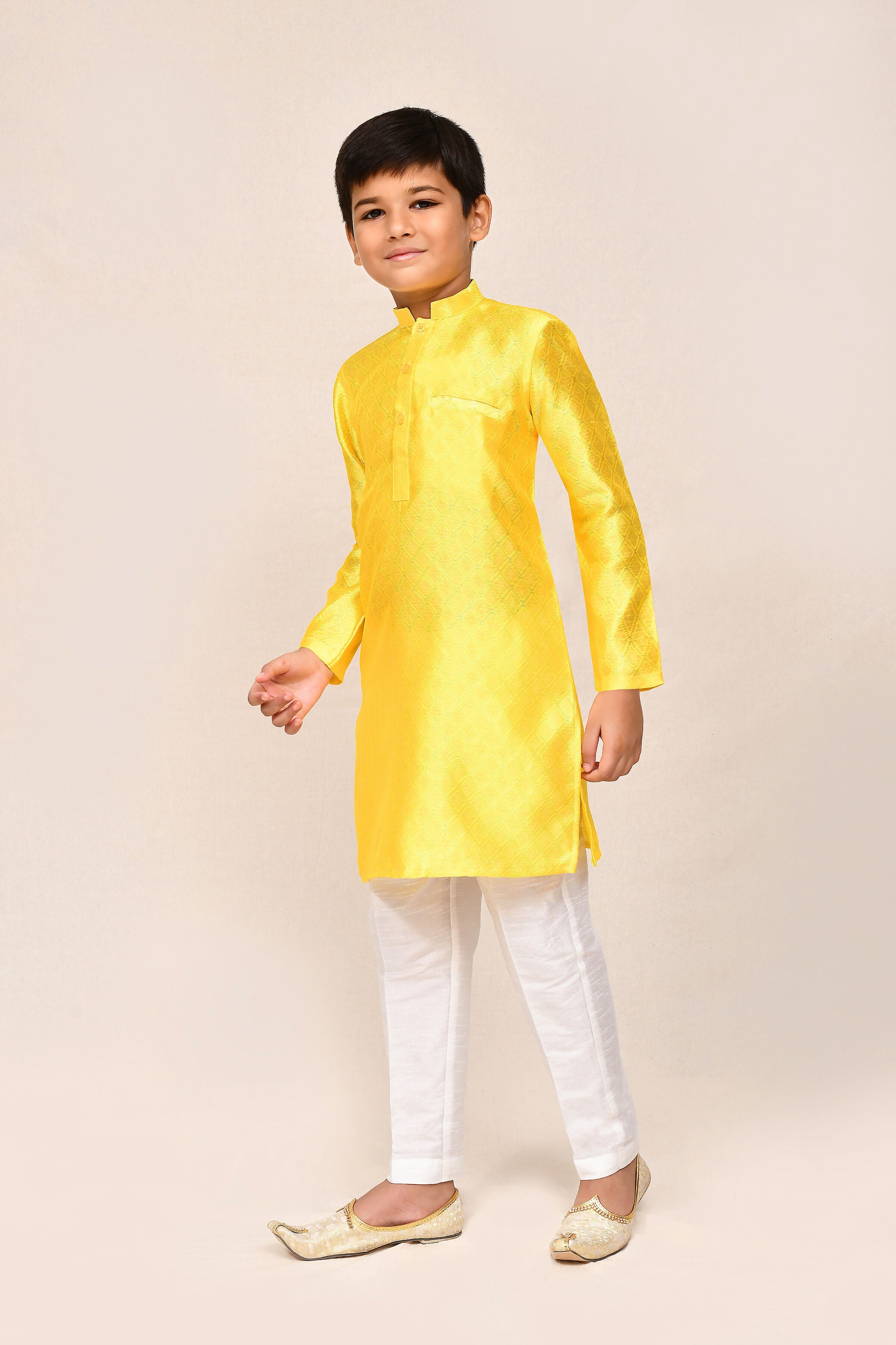 Joban Fashion Cotton Silk Yellow Kurta With Straight Fit Pant