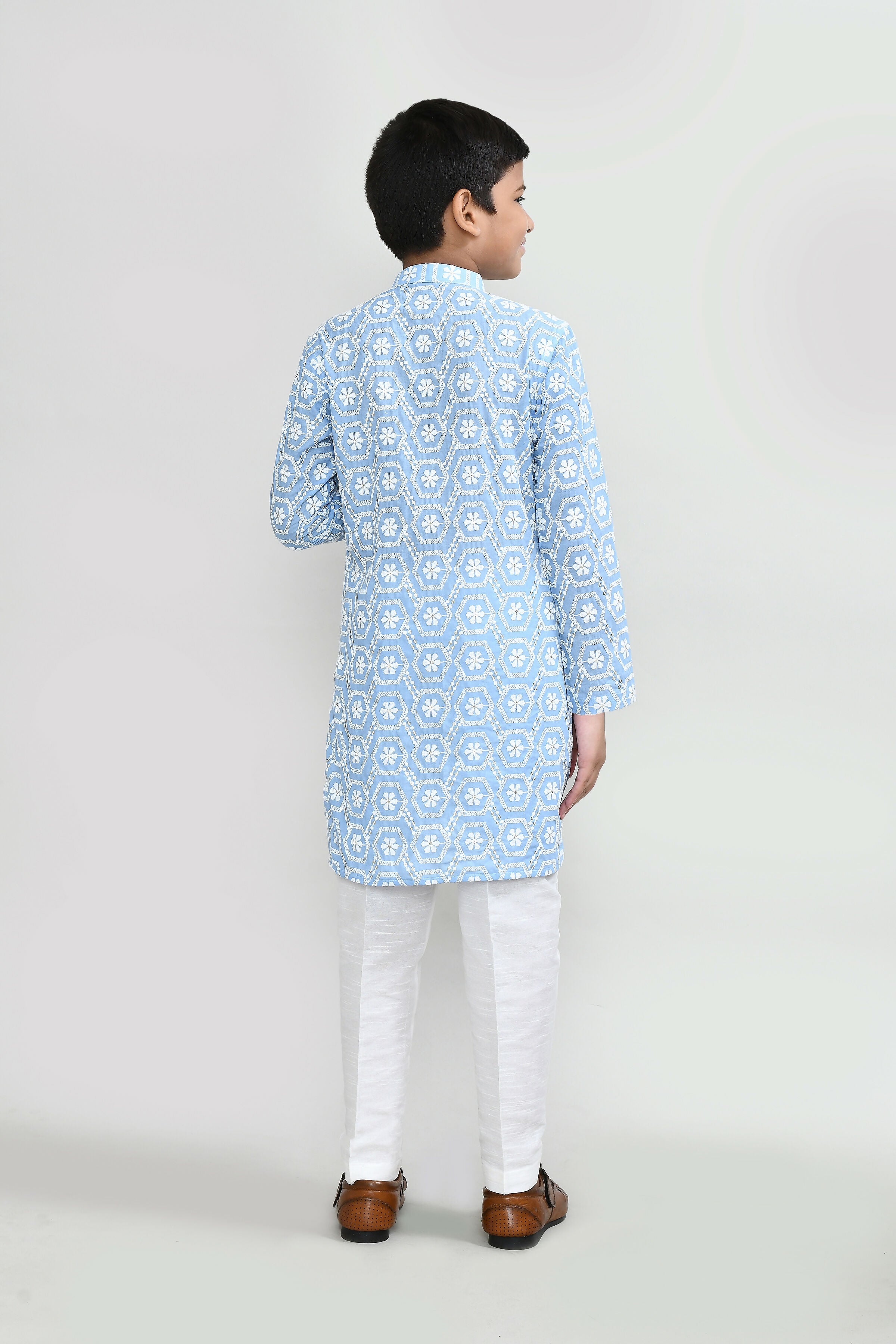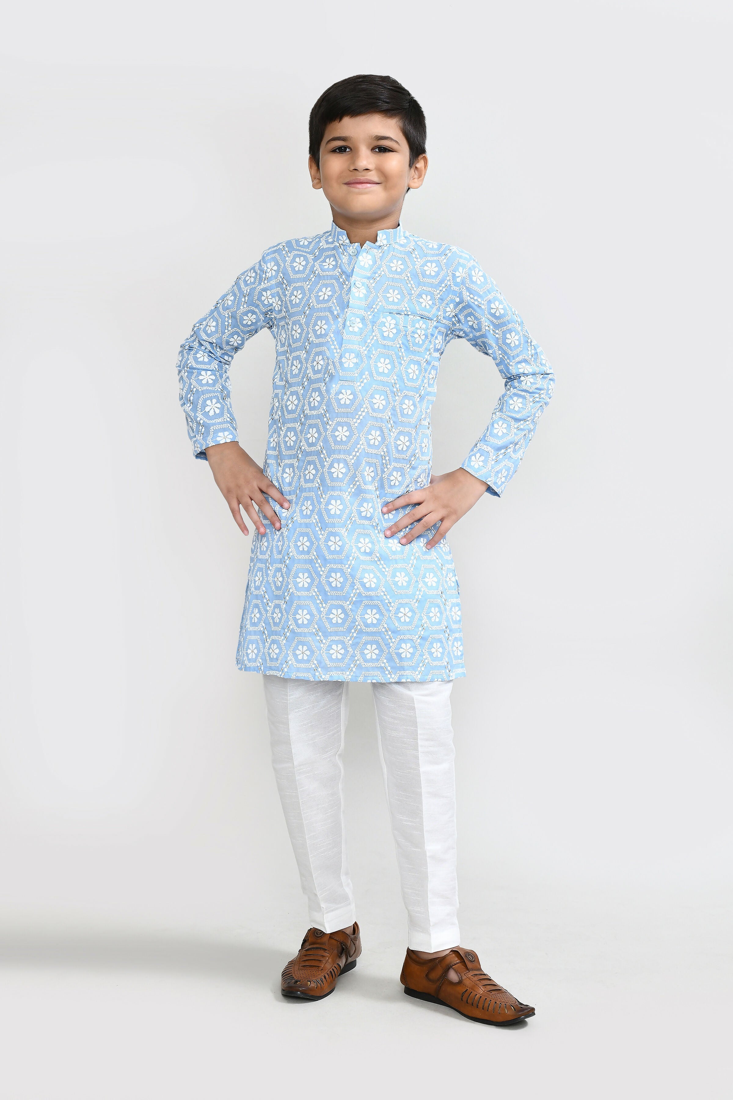 Joban Fashion Cotton Sky blue Kurta With Straight Fit Pant