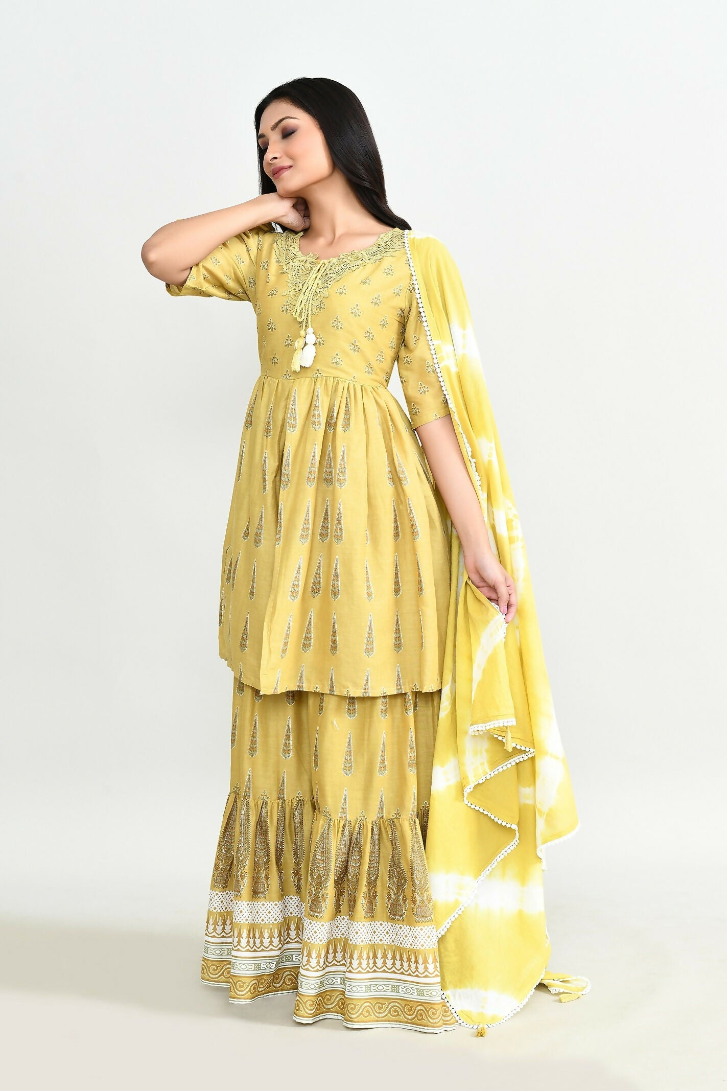 Joban Fashion Elegant Olive Green Cotton Sharara