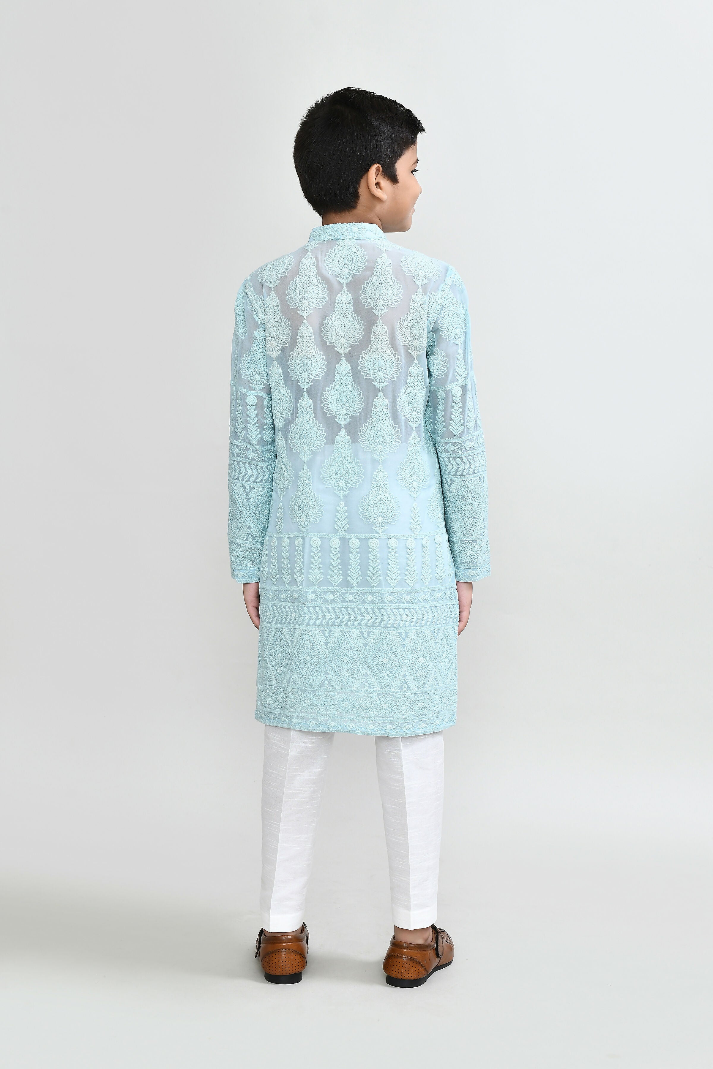 Joban Fashion Georgette Aqua Green Kurta With Straight Fit Pant