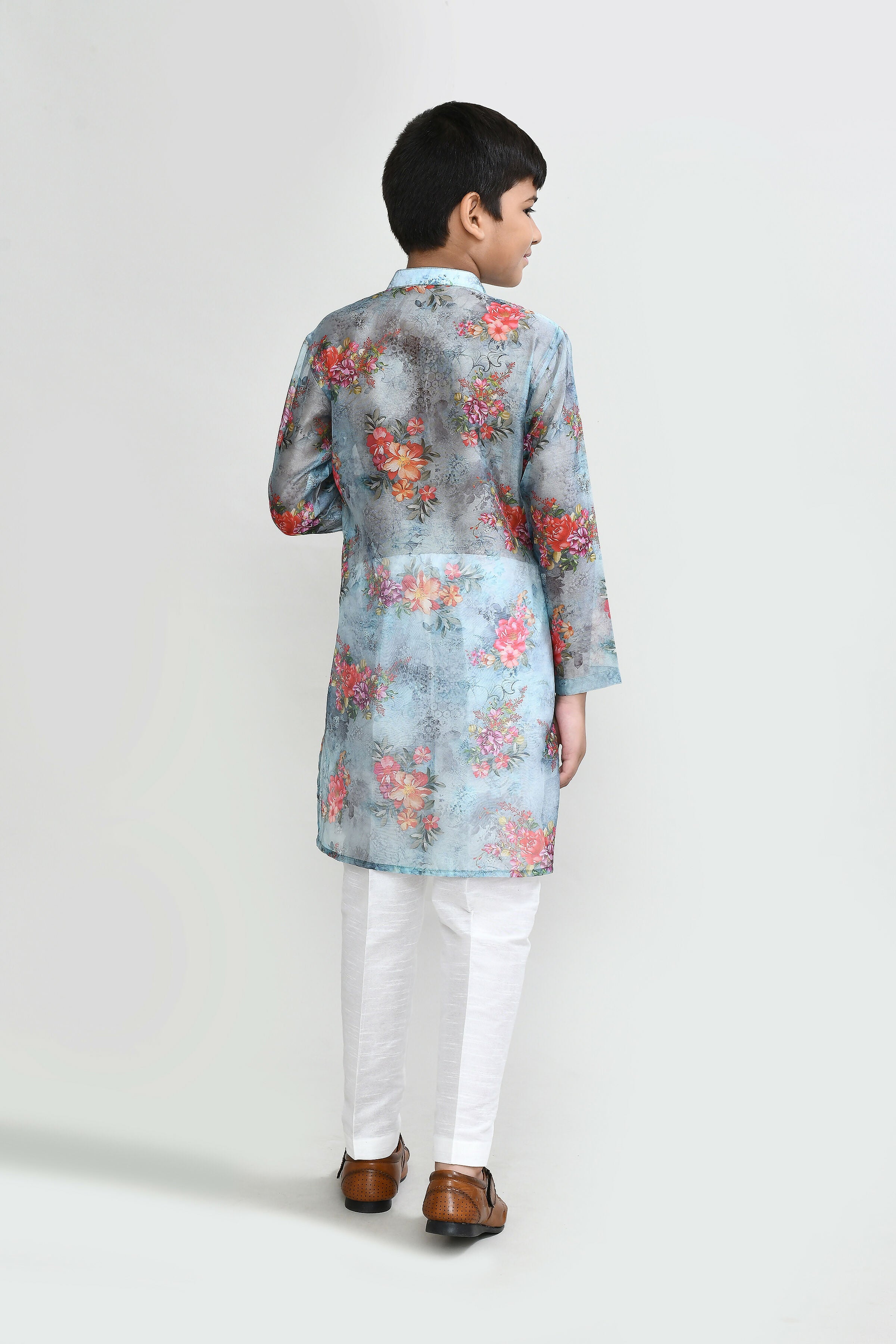Joban Fashion Georgette Sea Green Kurta With Straight Fit Pant
