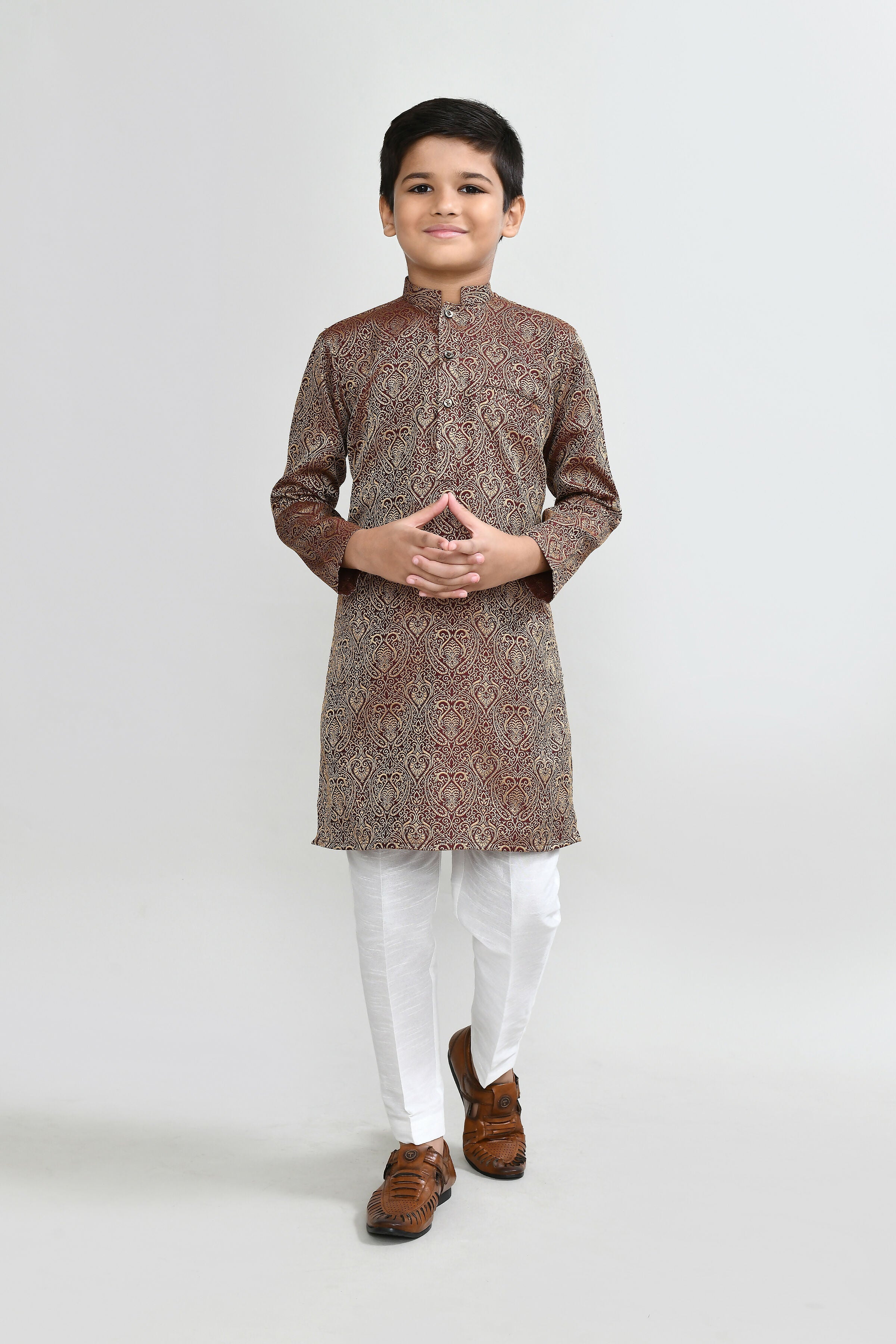 Joban Fashion Imported Jacquard Maroon Kurta With Straight Fit Pant