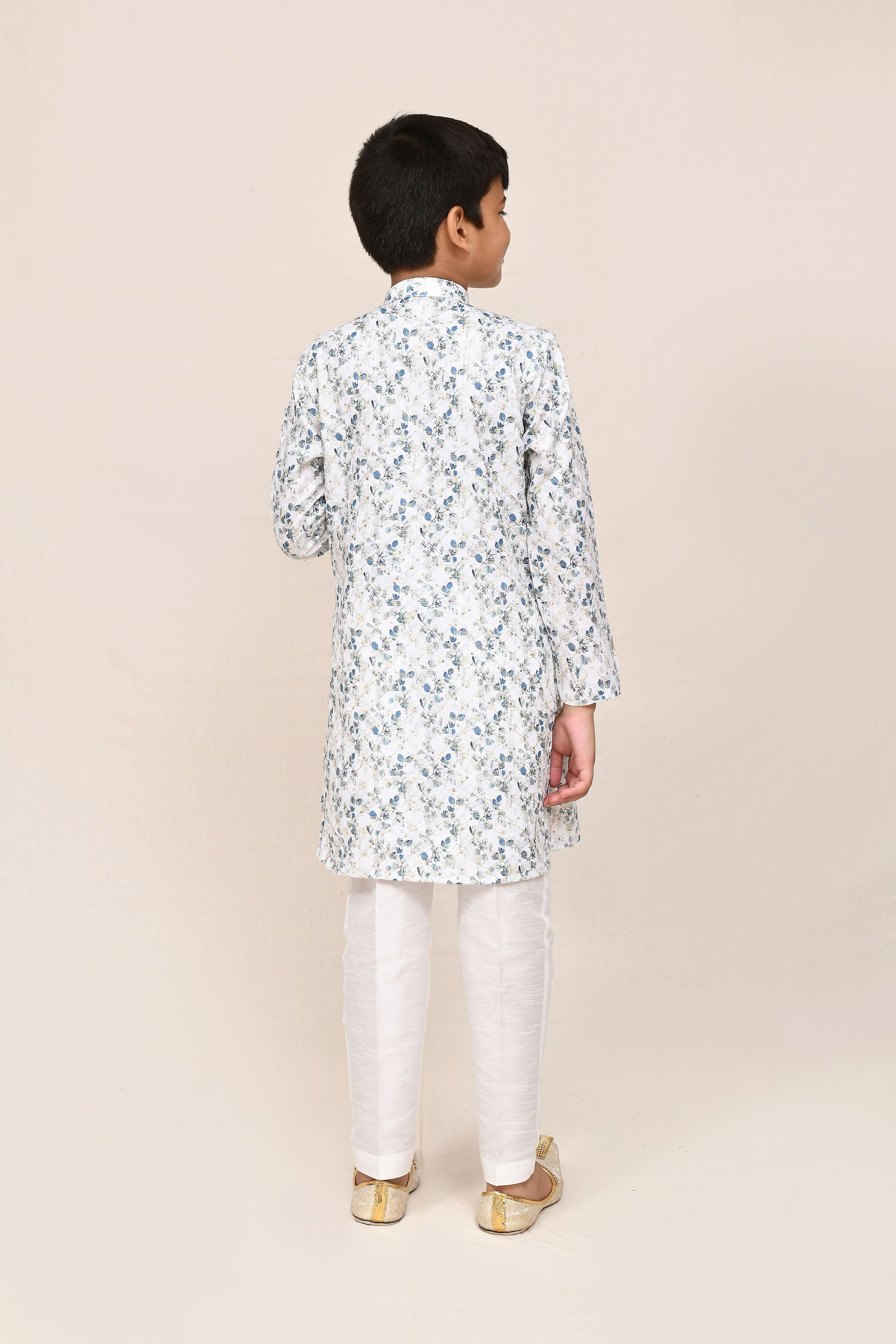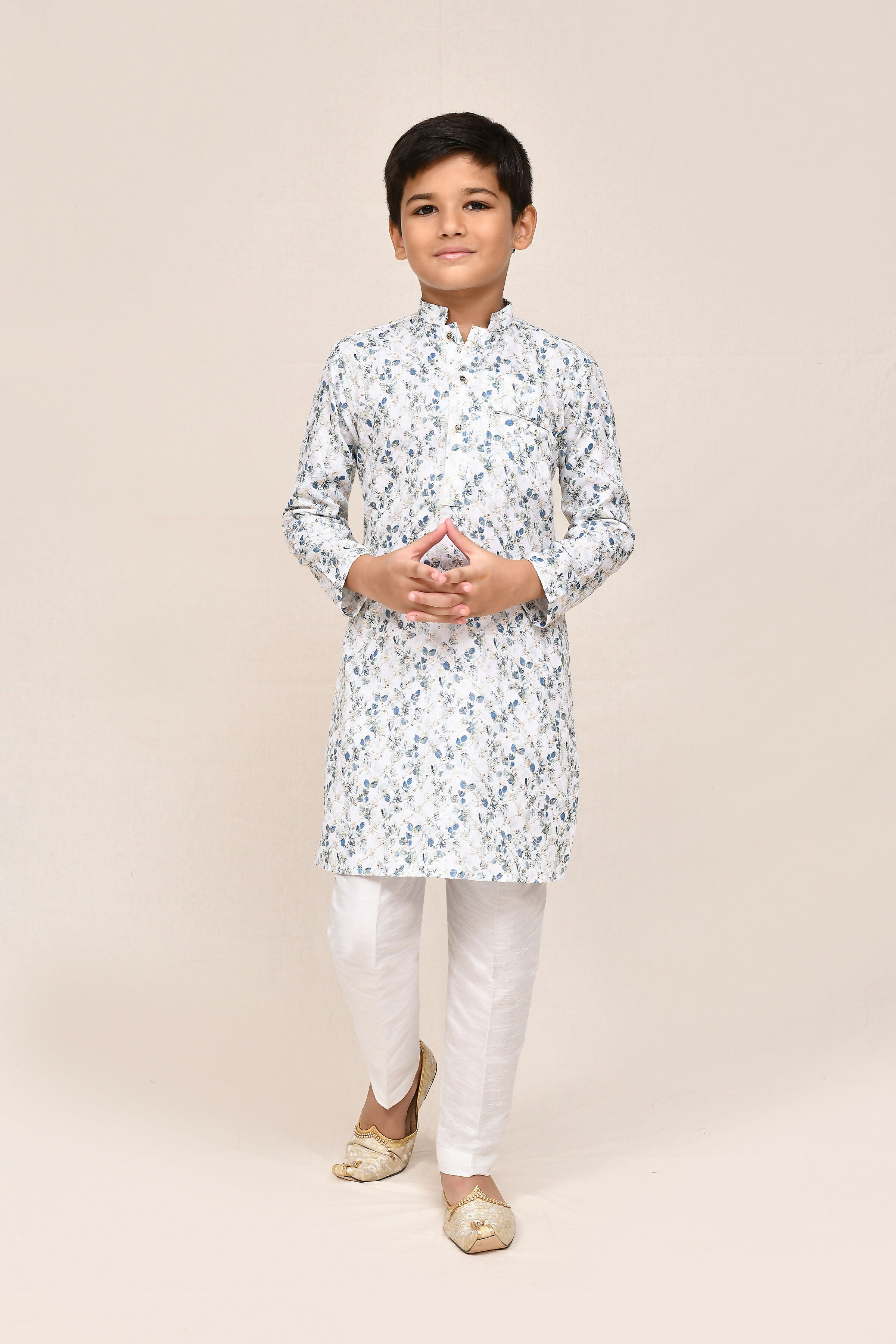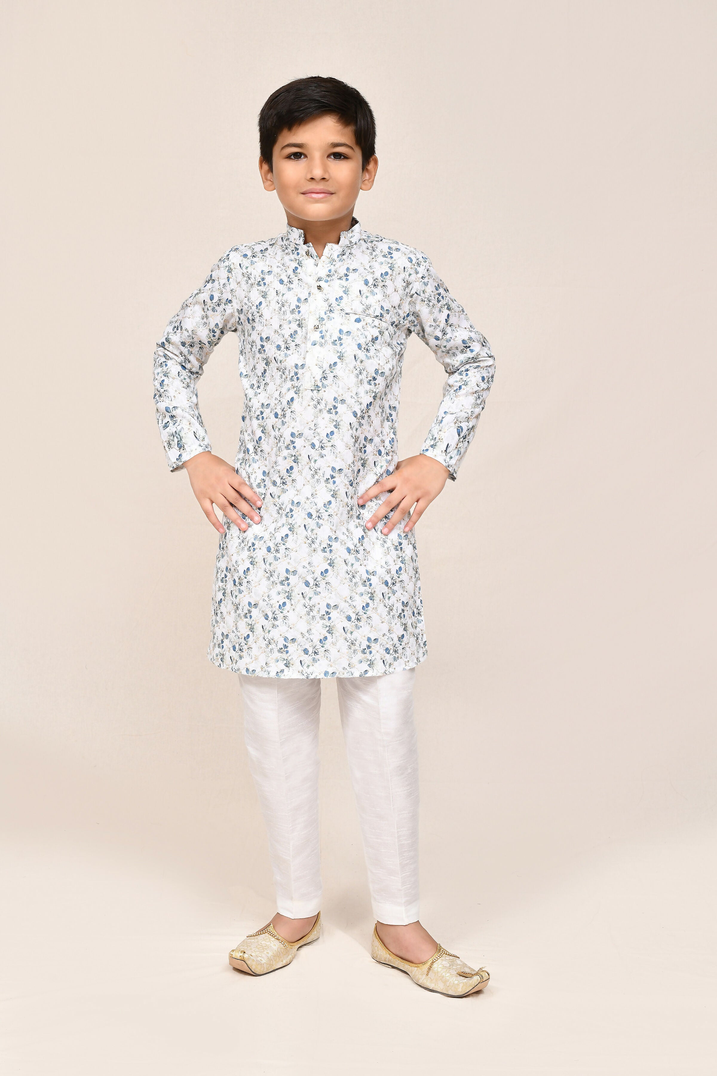 Joban Fashion Printed Cotton White Kurta With Straight Fit Pant