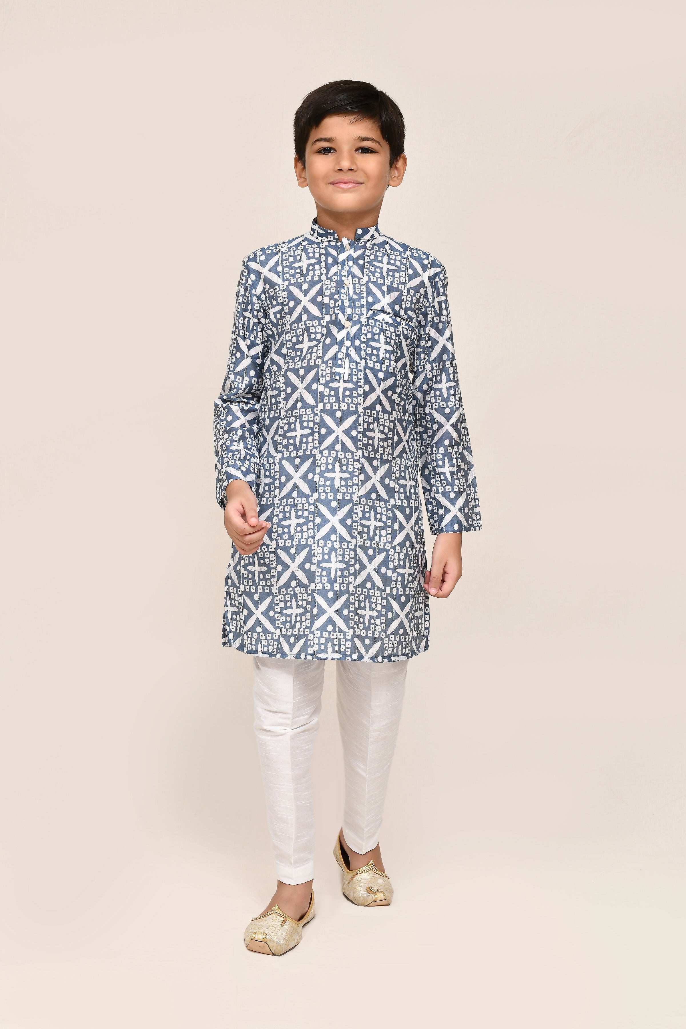 Joban Fashion Silk Navy Blue Kurta With Straight Fit Pant