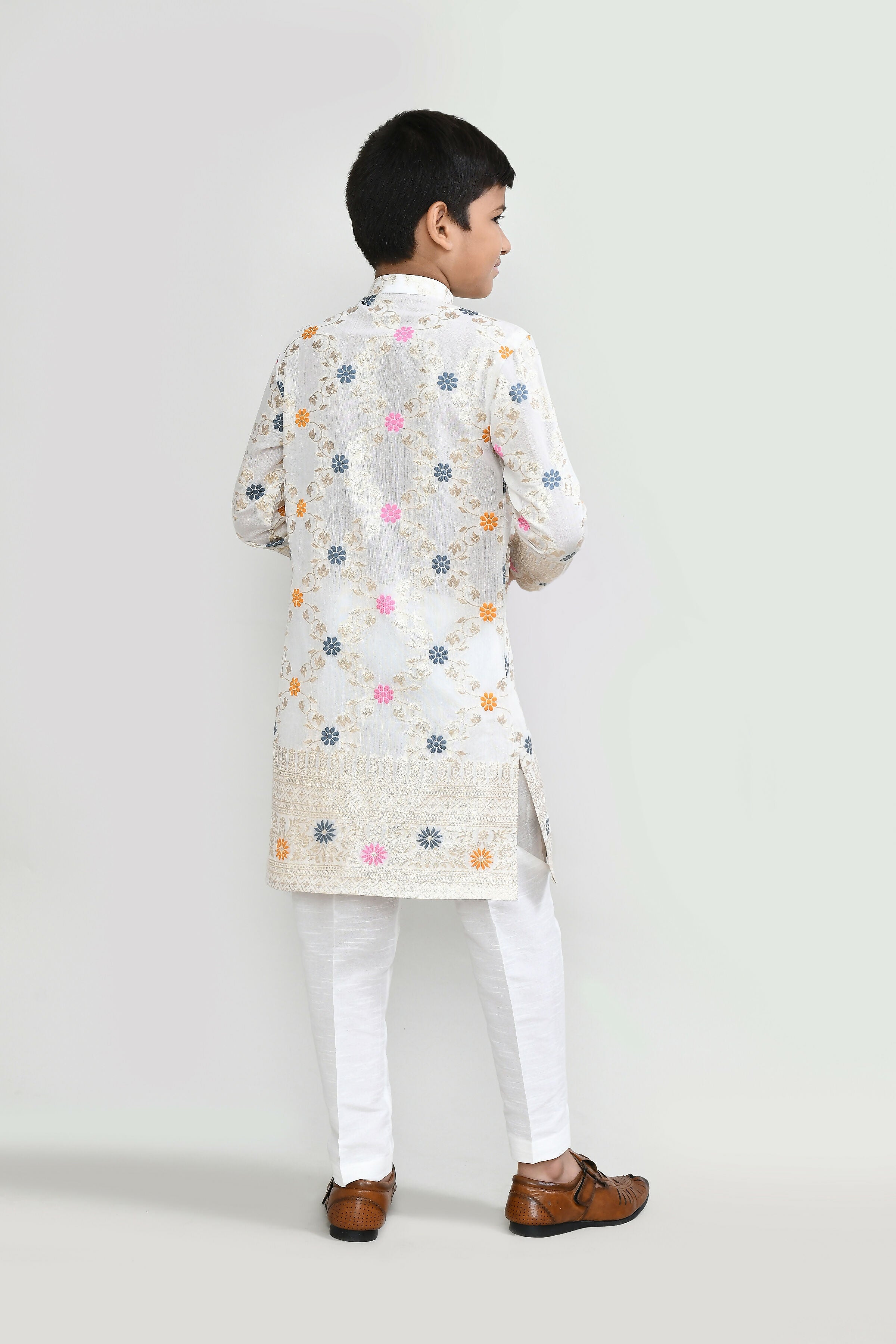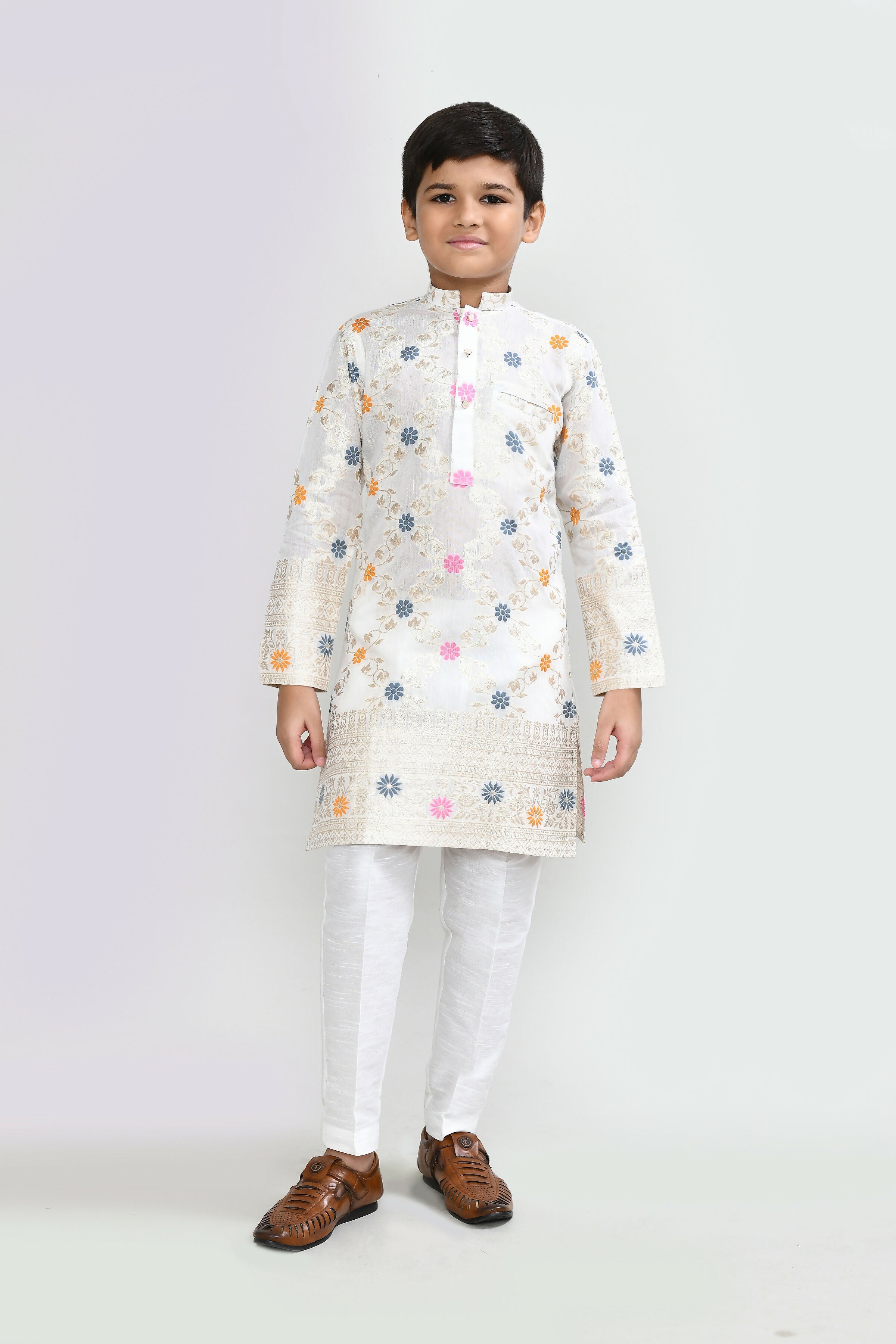 Joban Fashion Silk Off White Kurta With Straight Fit Pant