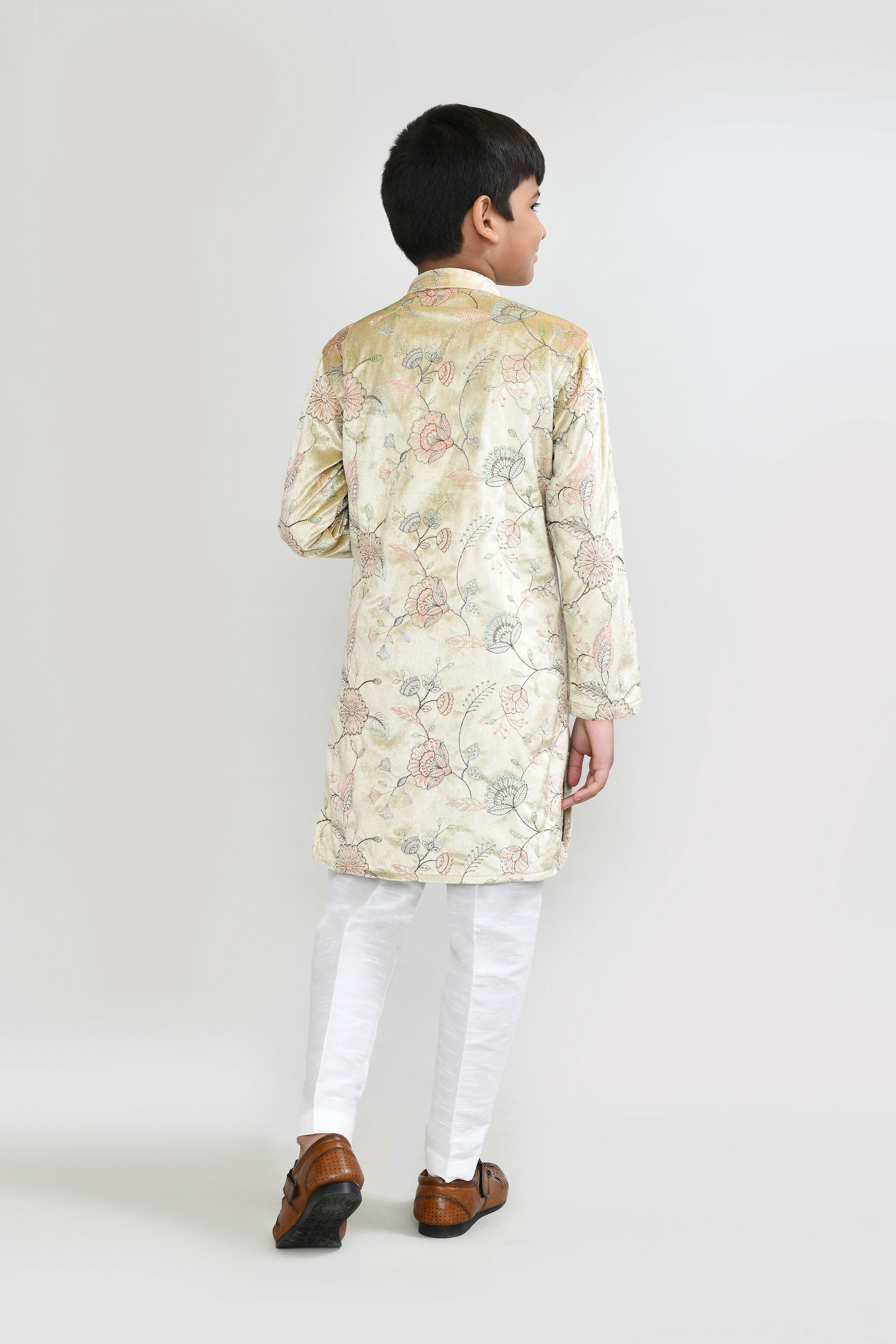 Joban Fashion Velvet Golden Kurta With Straight Fit Pant