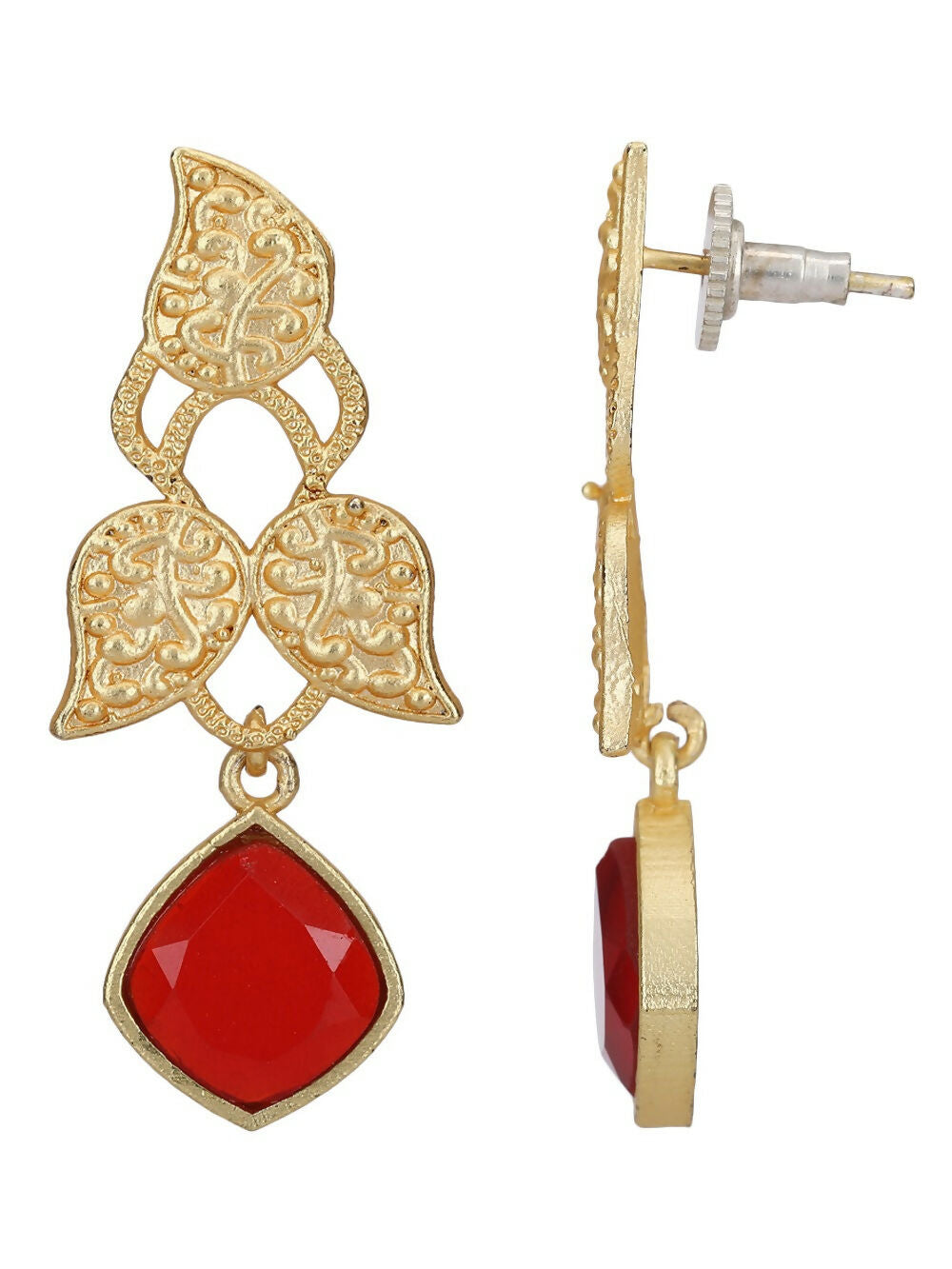 Joban Fashion Women Red Stone Matte Gold Earrings