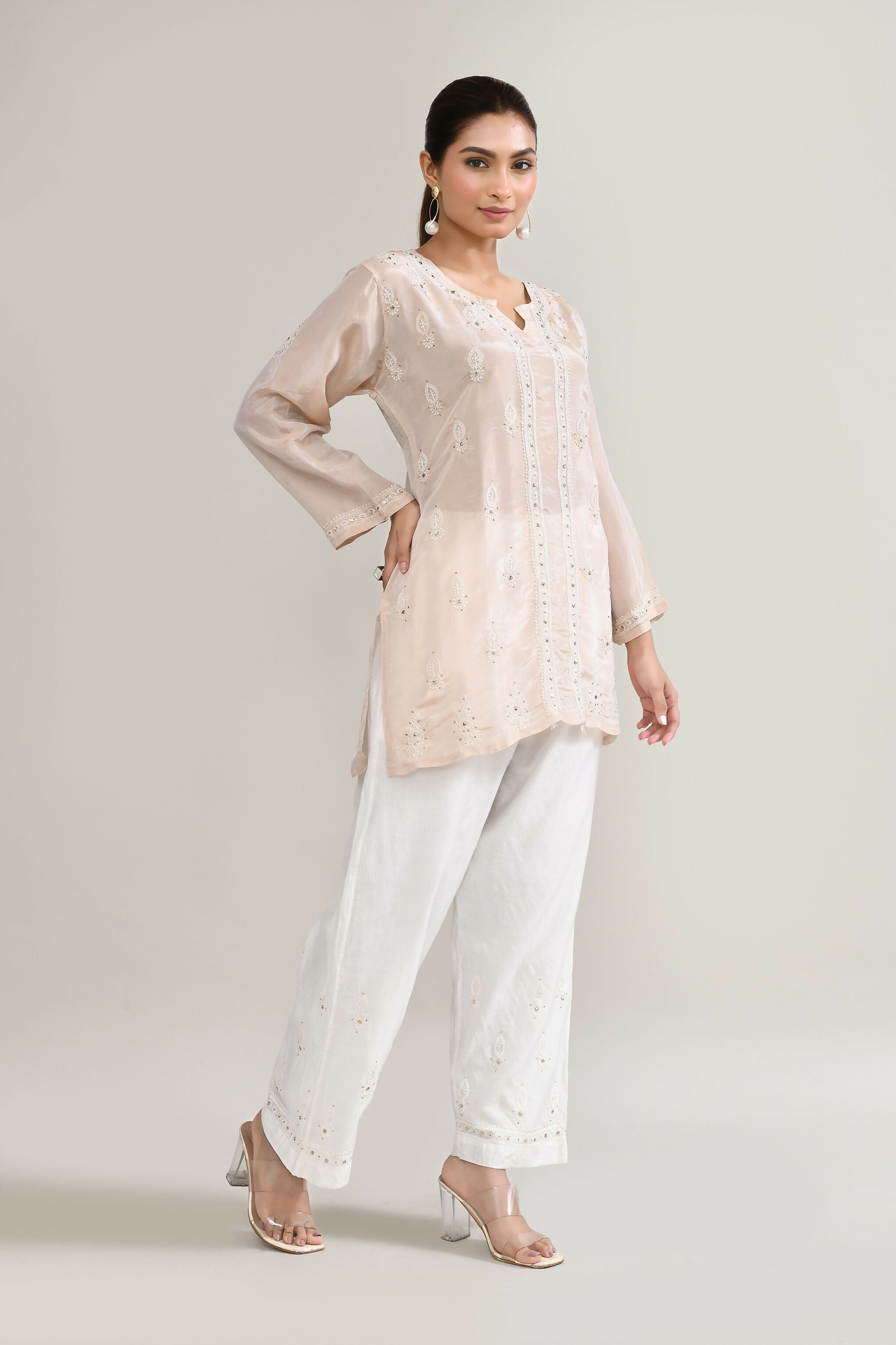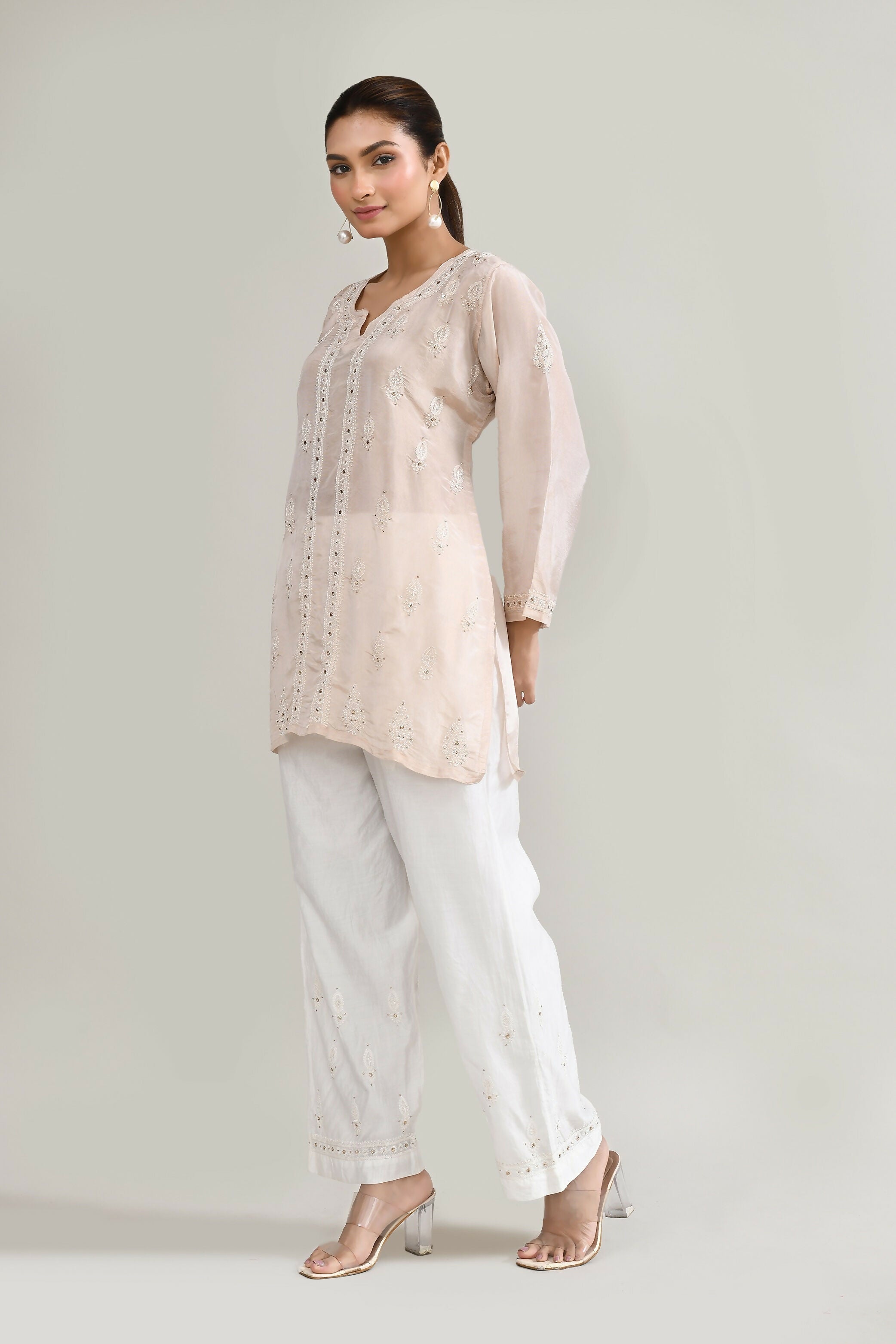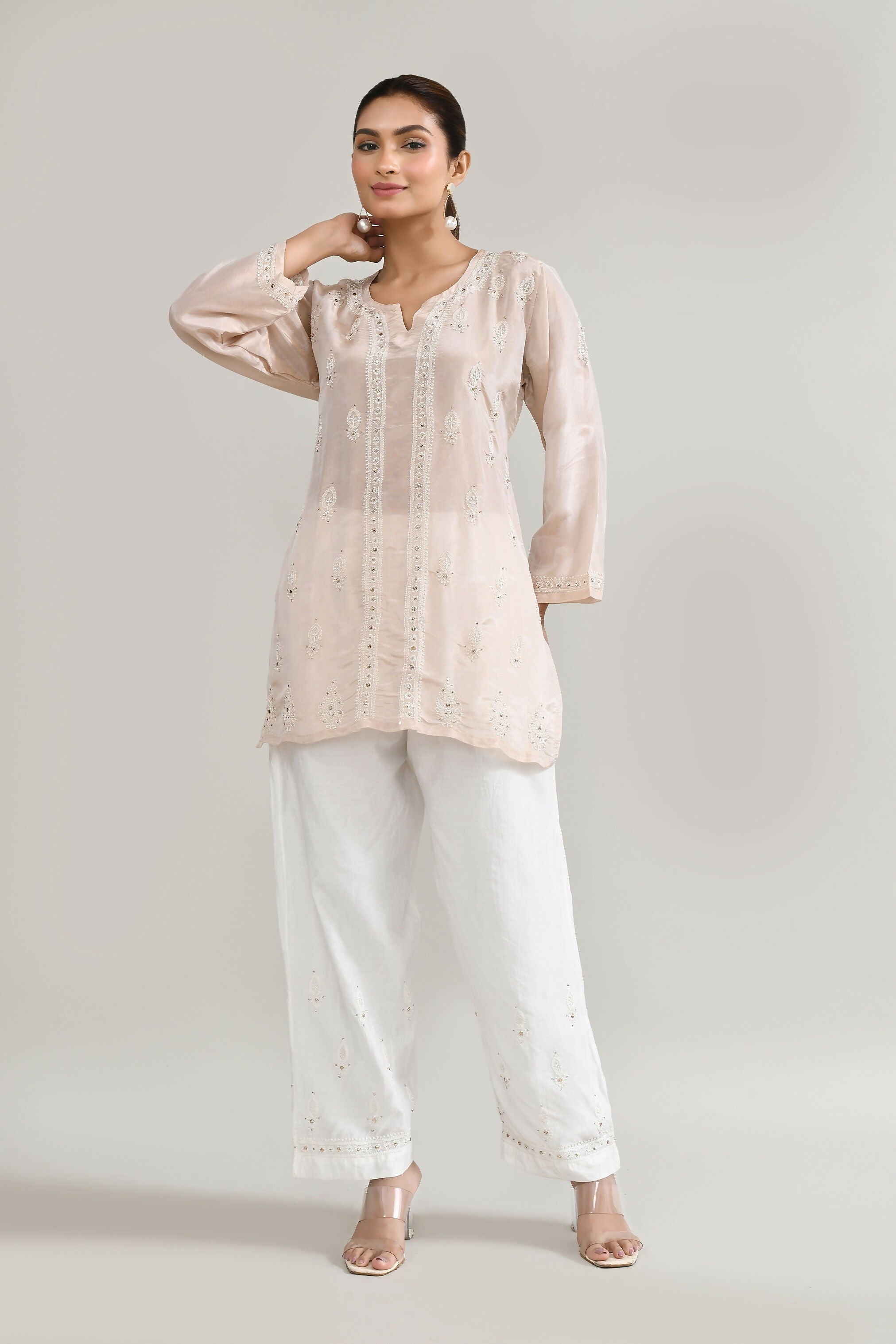 Joban Fashion Womens Cotton ChikanKari Baby Pink Cord set