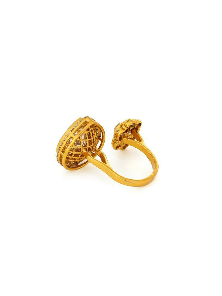 Kundan Gold Plated Hexagon and Pear Ring - Ruby Raang