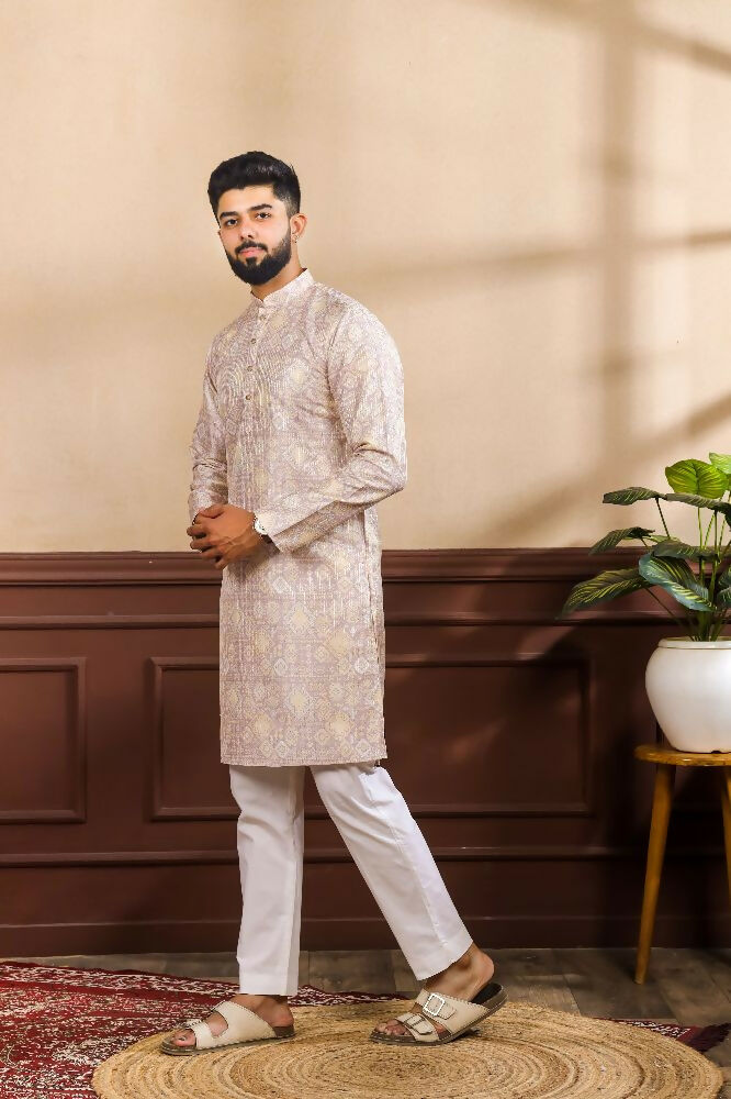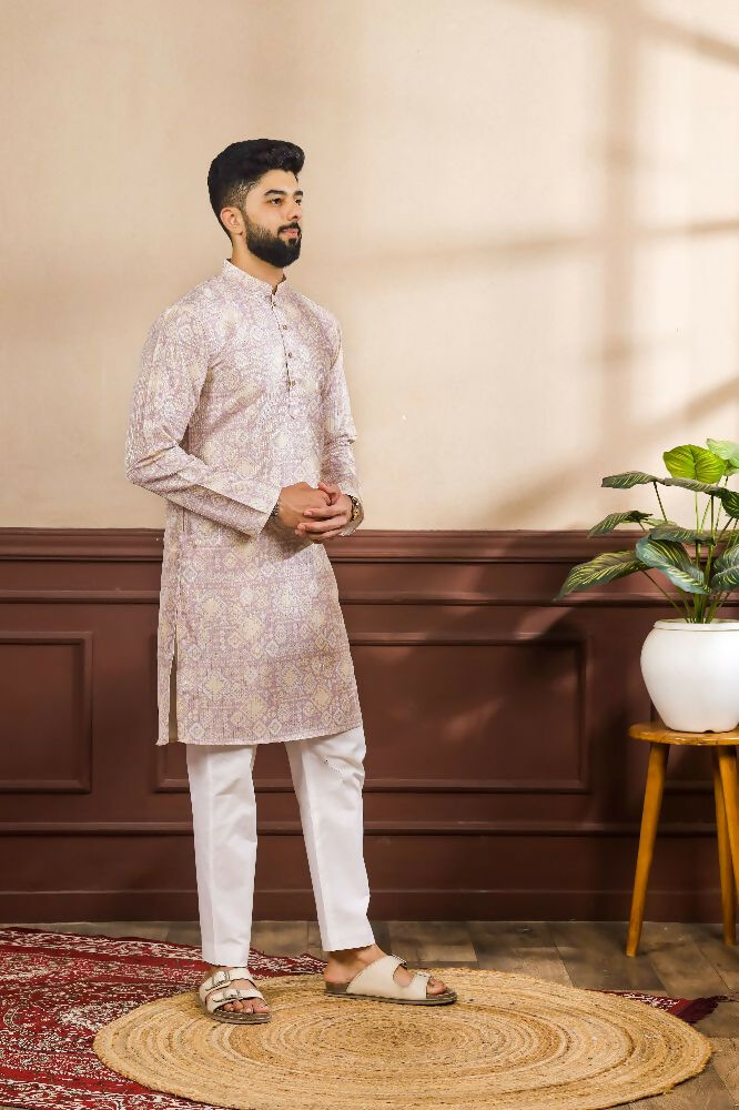 Lavender Art Silk Digital Printed, Embroidery Work Kurta Set - Mahotsav