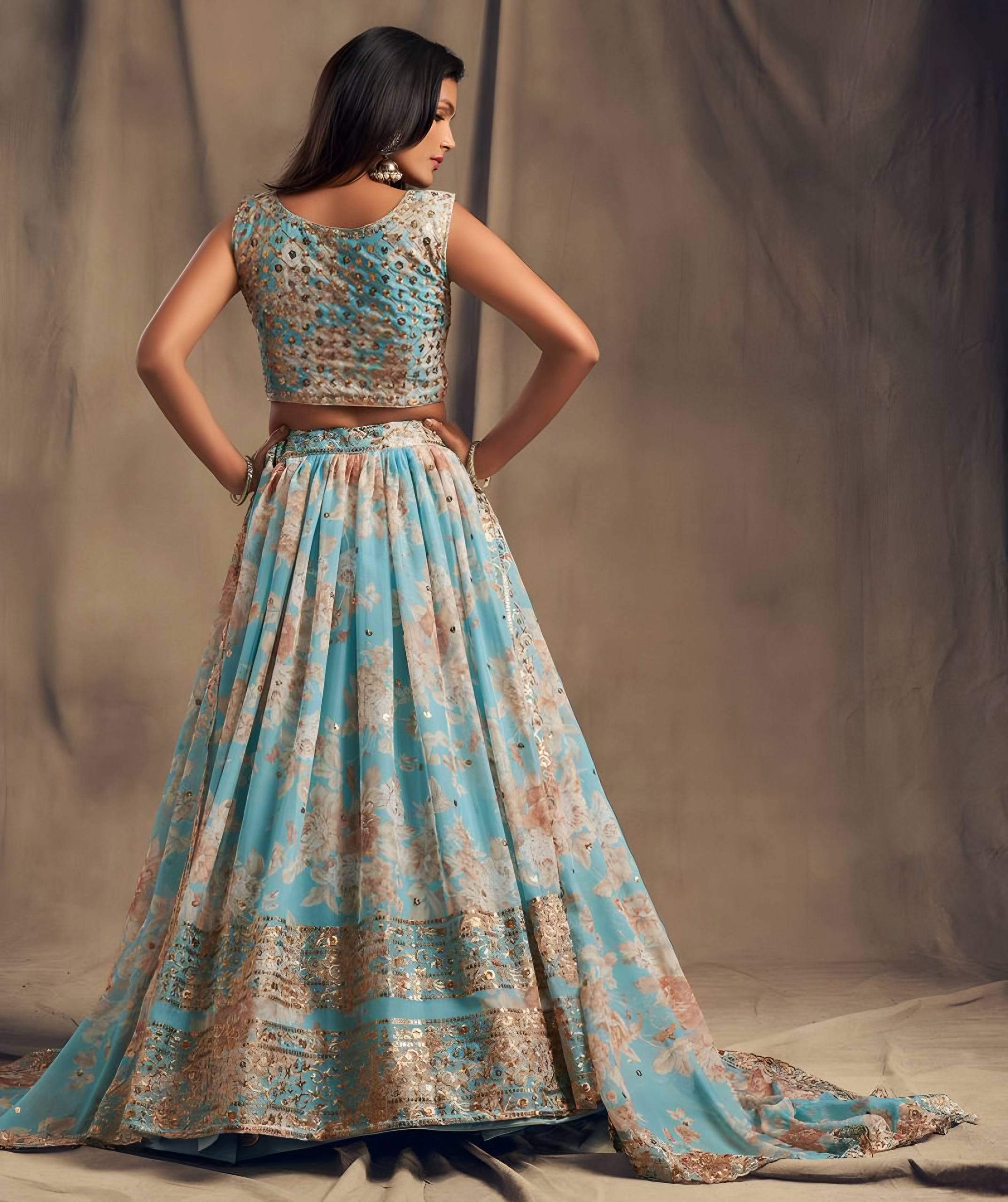 Lehenga Mart Designer Bollywood Style Wedding Wear Lehenga Choli - Aqua