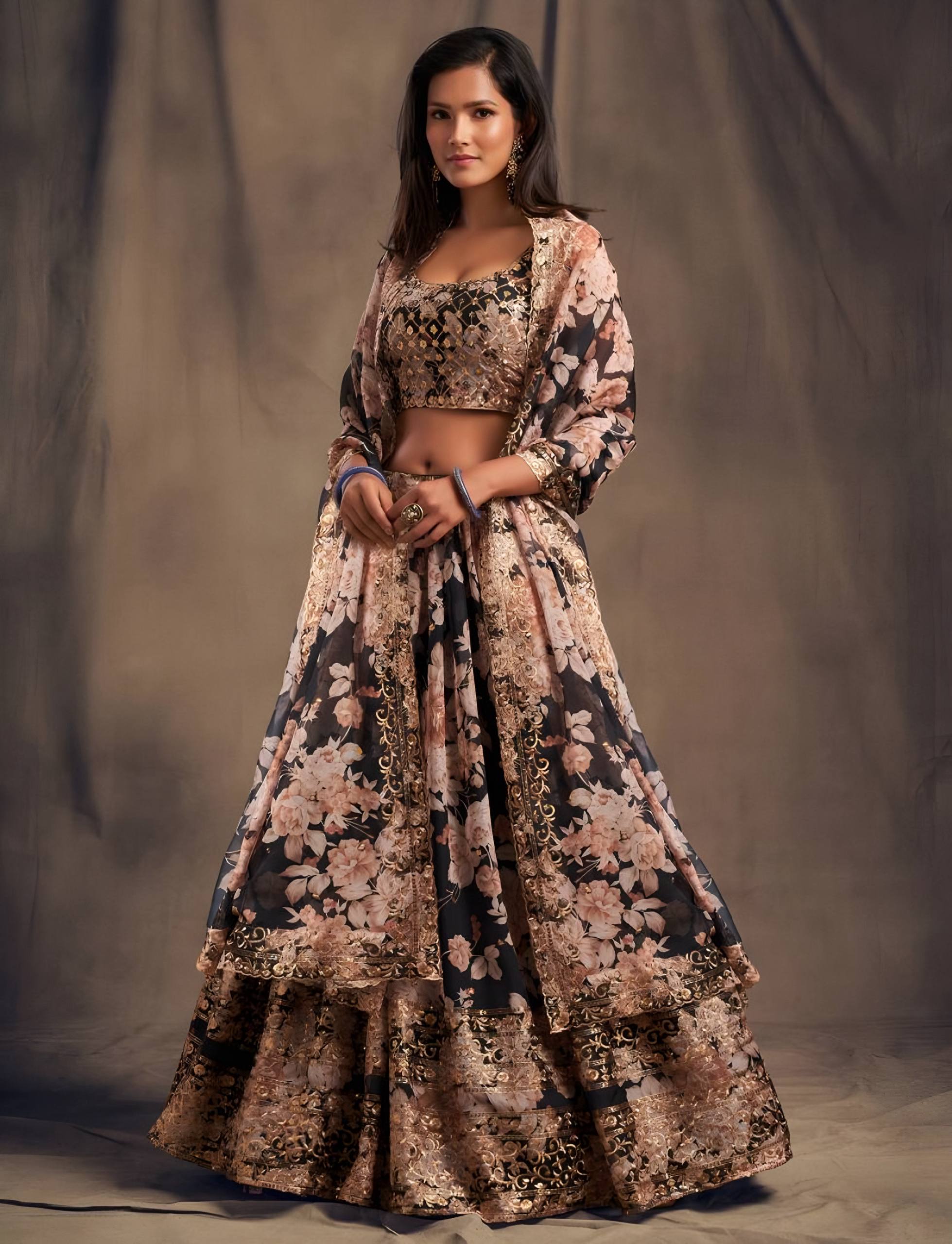 Lehenga Mart Designer Bollywood Style Wedding Wear Lehenga Choli - Black