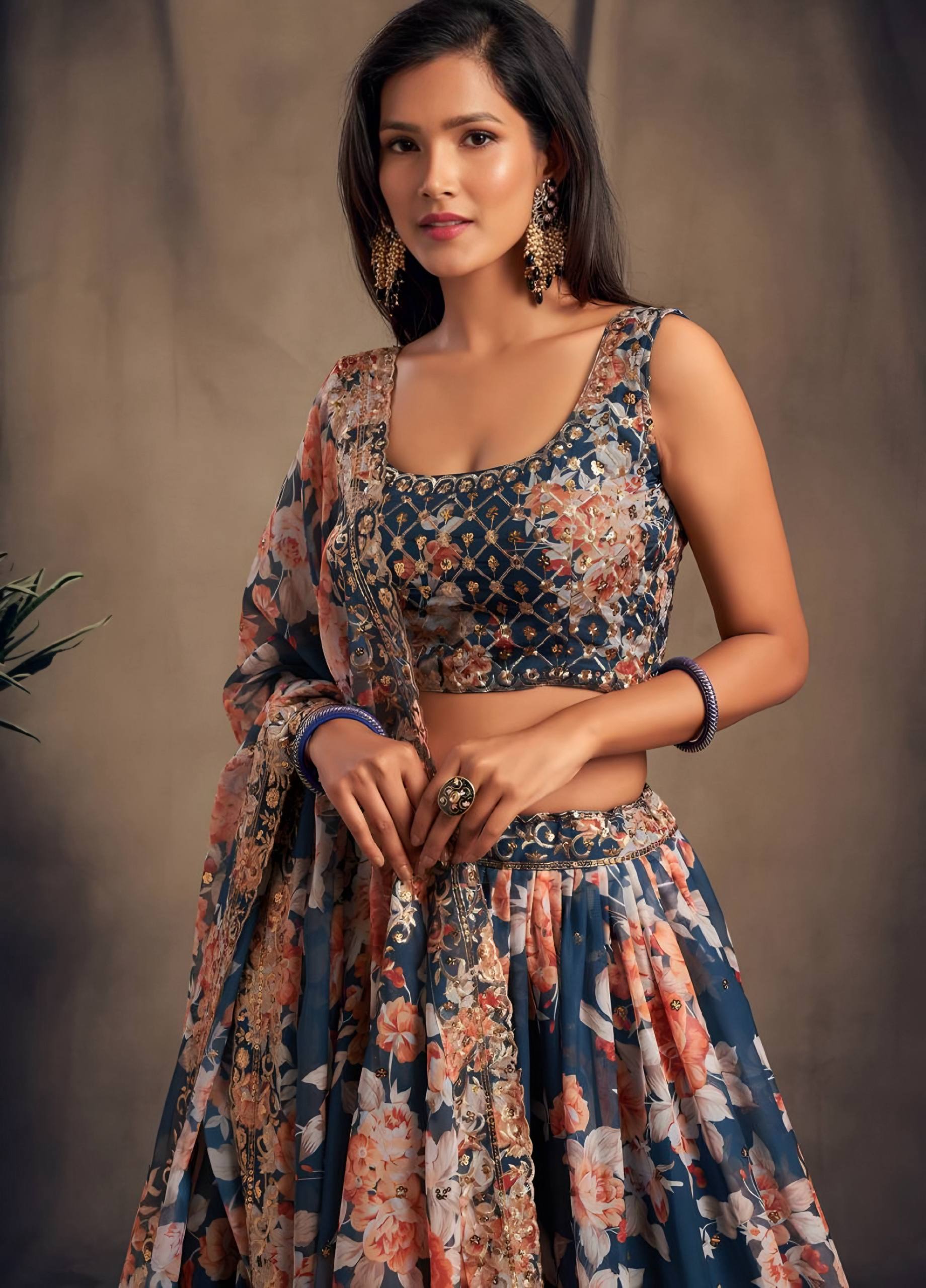 Lehenga Mart Designer Bollywood Style Wedding Wear Lehenga Choli - Navy Blue