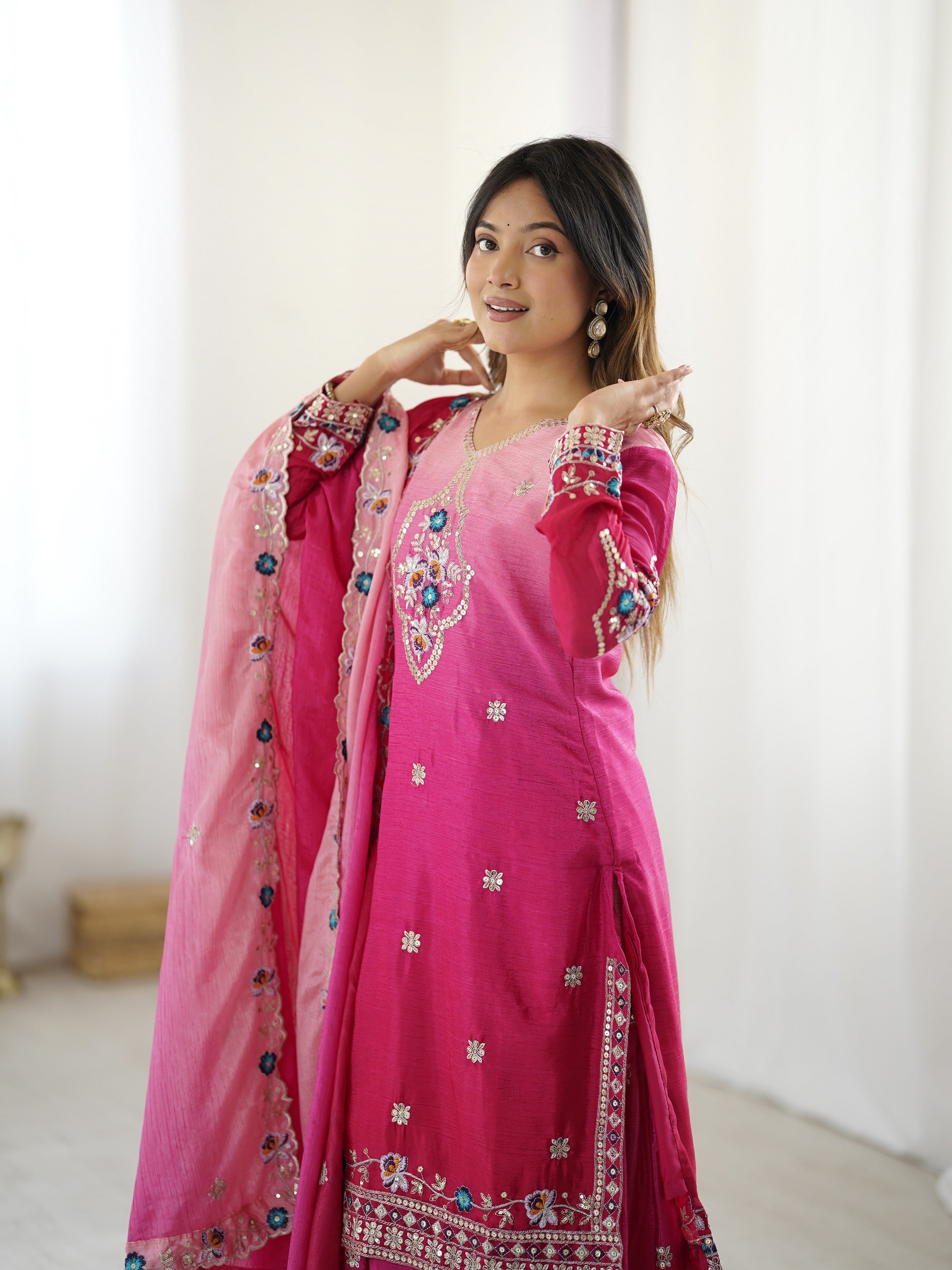 Lehenga Mart Designer Chinon Sharara Suit Dupatta for Women - pink