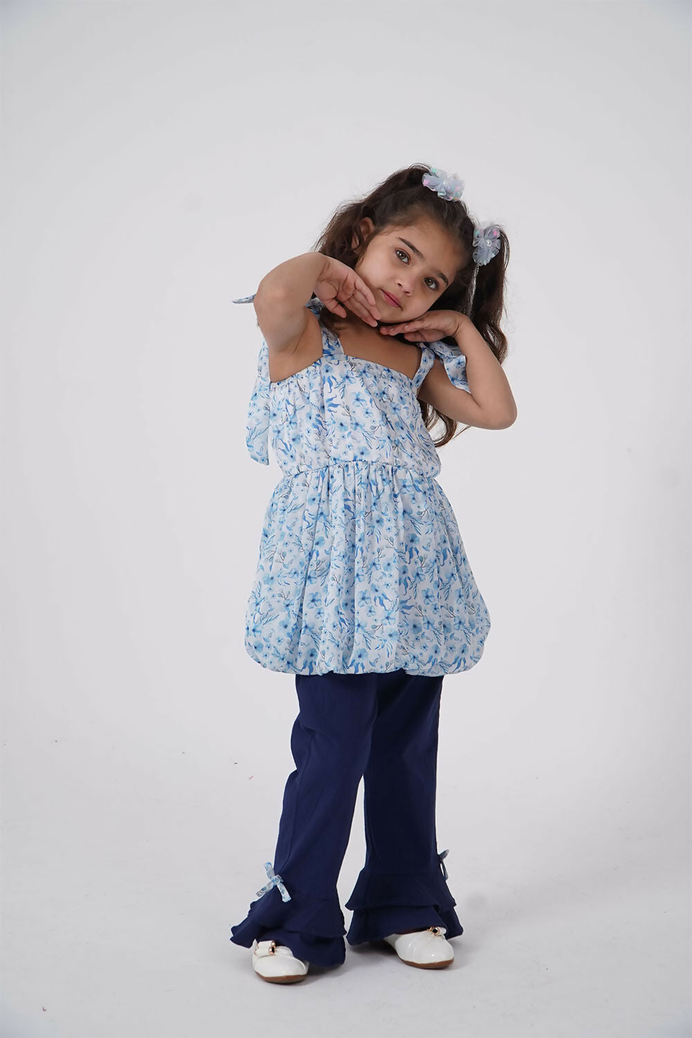 LH Luxury Fashion Ana Shoulder Tie-Up Balloon Top & Flared Trouser Set