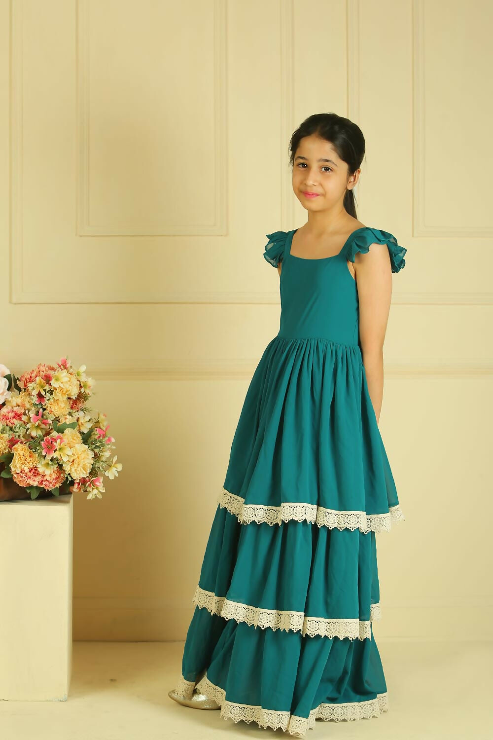 LH Luxury Fashion Fairytale Girls Layered Dress – Elegant Off-Shoulder Dress for Girls