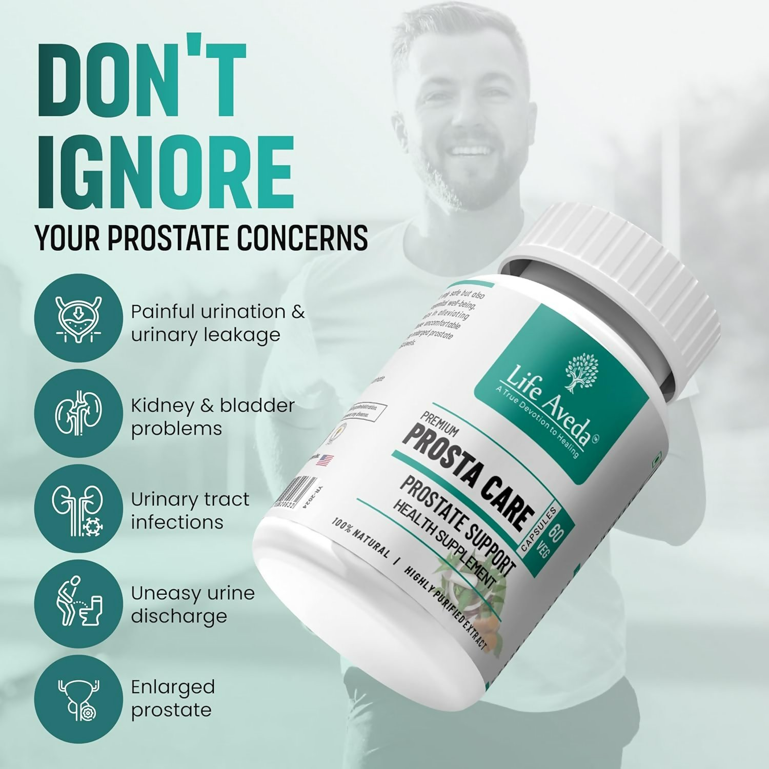 Life Aveda 100% Natural Ayurvedic Premium Prosta Care Capsule For Men's