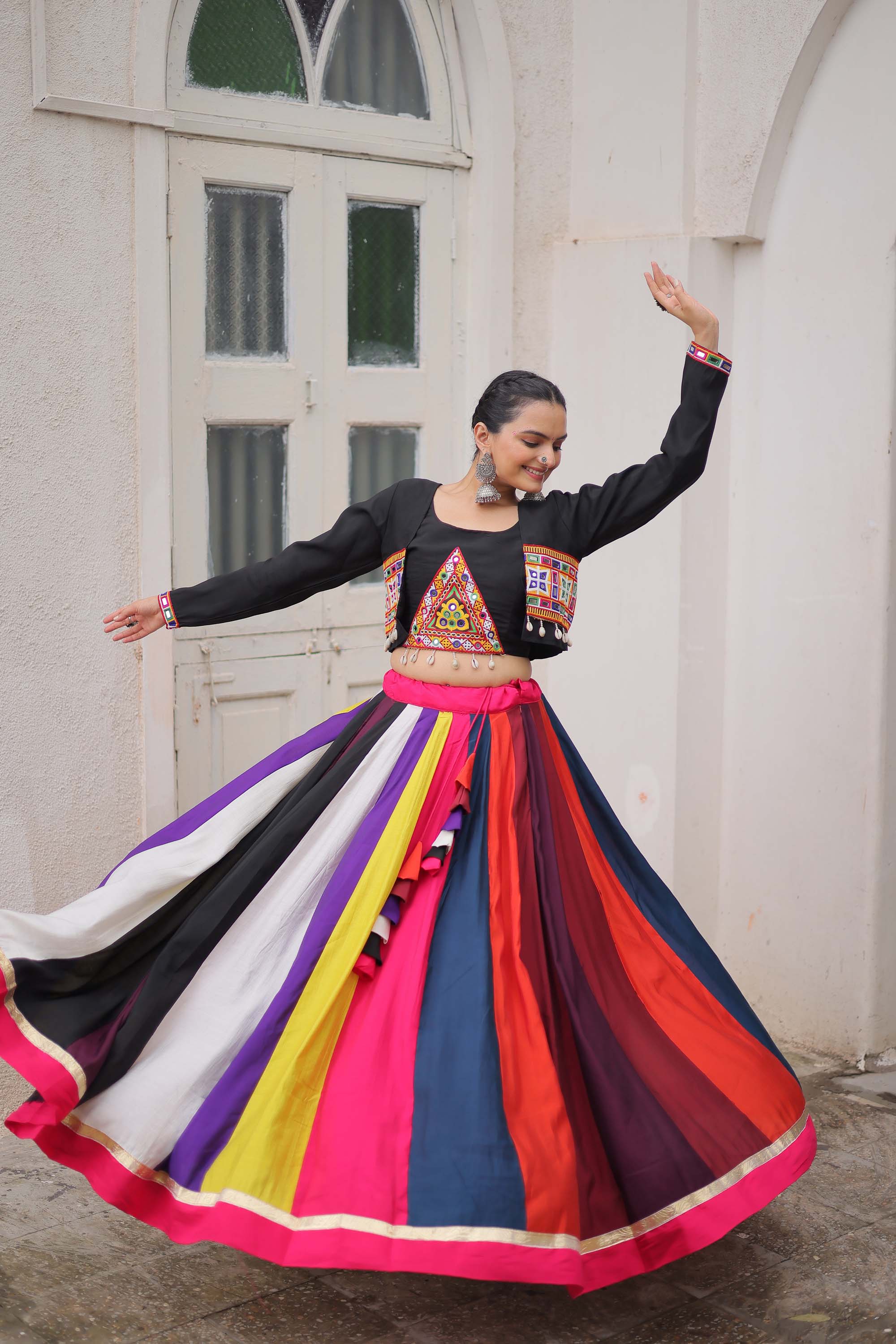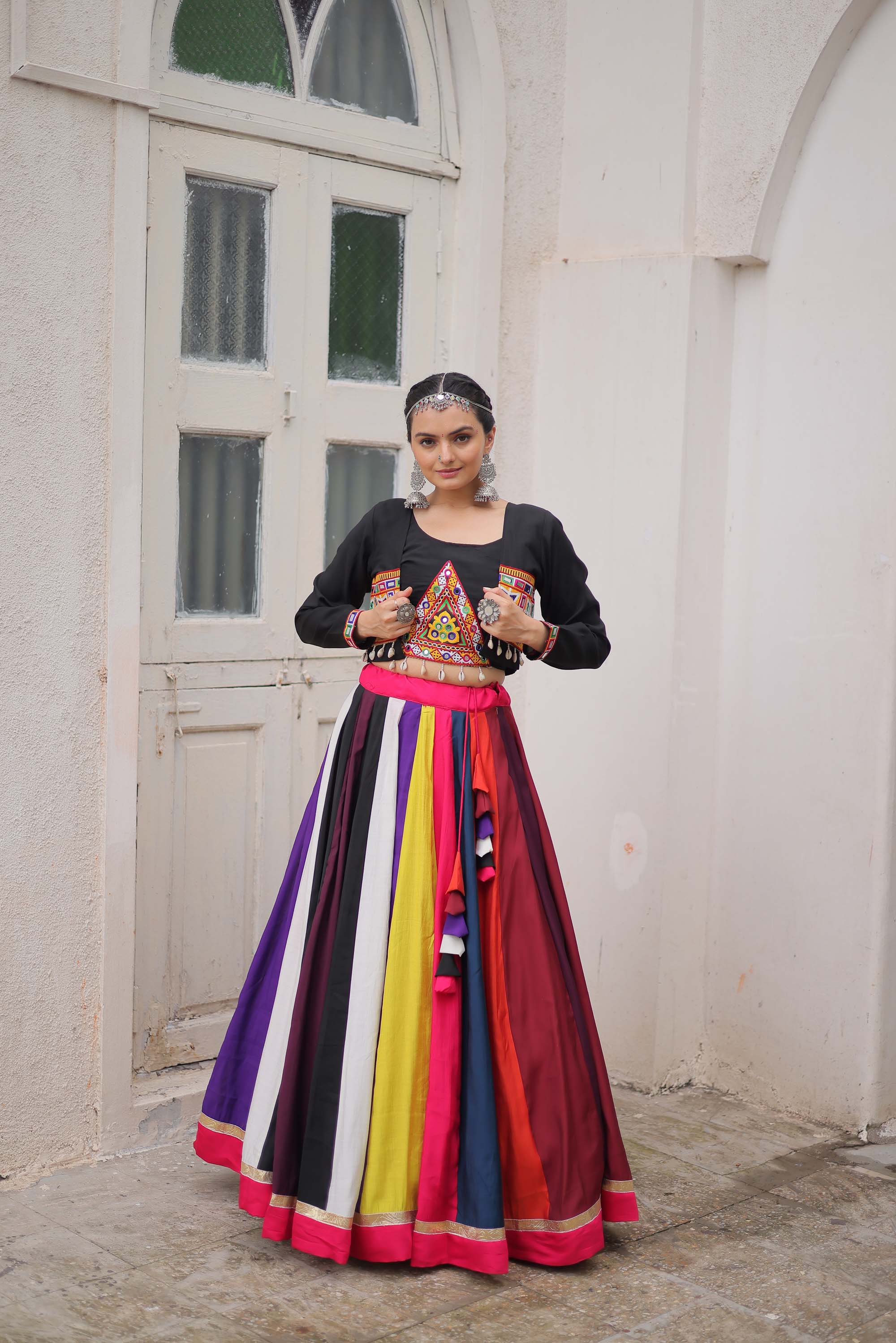 Lorenvalley Fashion Multicolor Roman Silk with Attractive Colour Combination Roman Fabrics Lace work Lehenga Choli