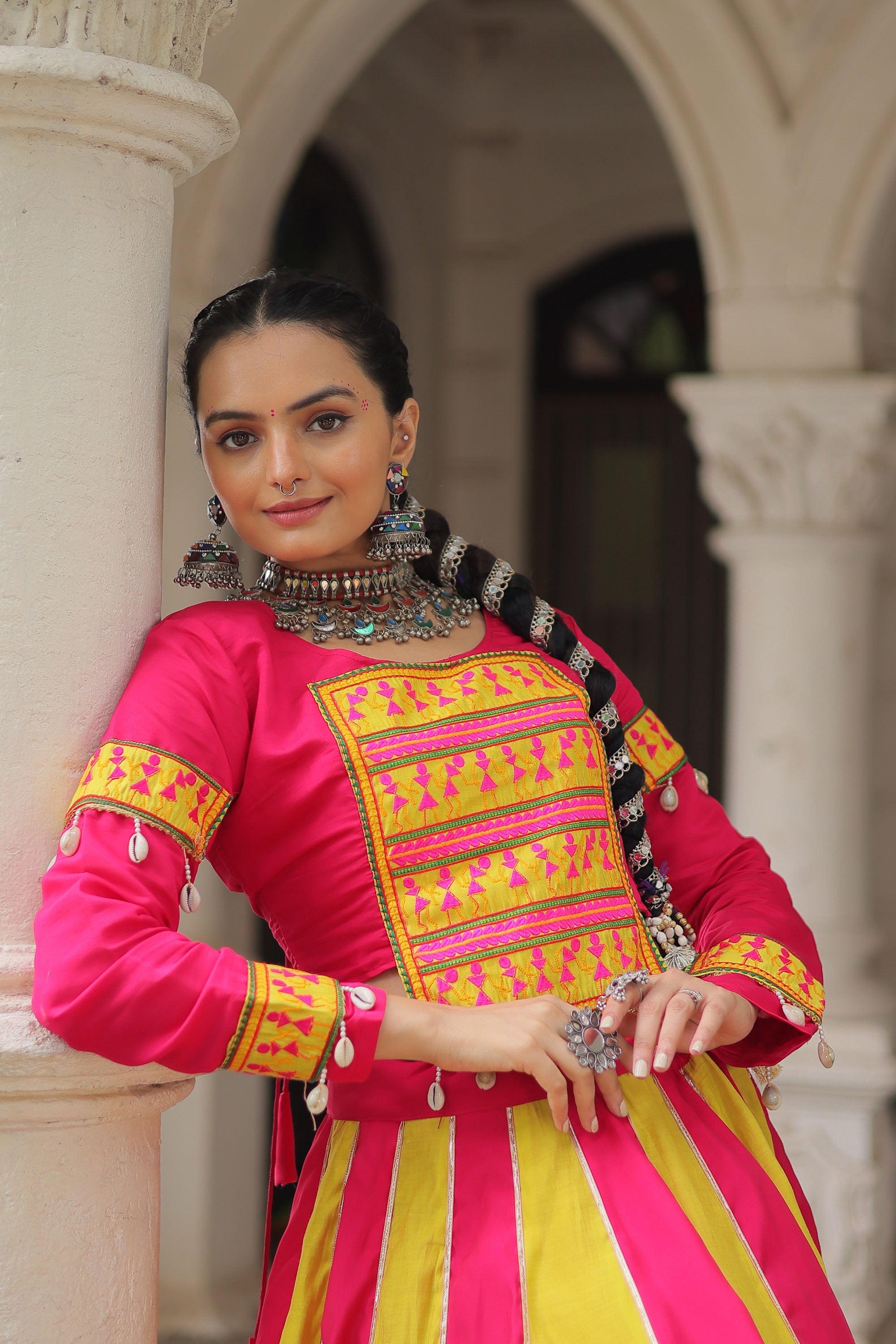 Lorenvalley Fashion Multicolor Roman Silk with attractive combination of Mirror lace embellished work Lehenga Choli