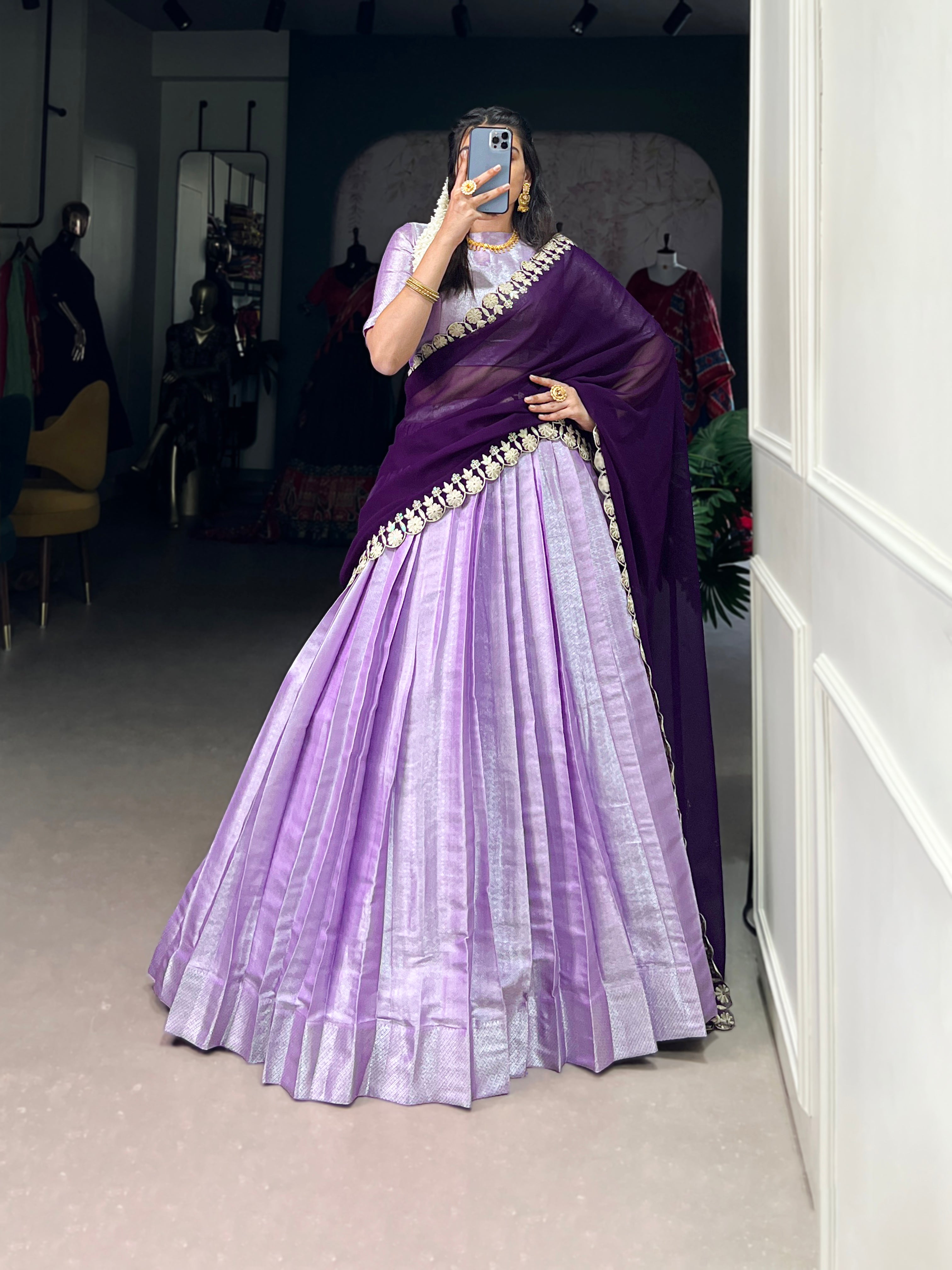 Lorenvalley Lavender Jacquard Silk weaving work Lehenga Choli with Dupatta