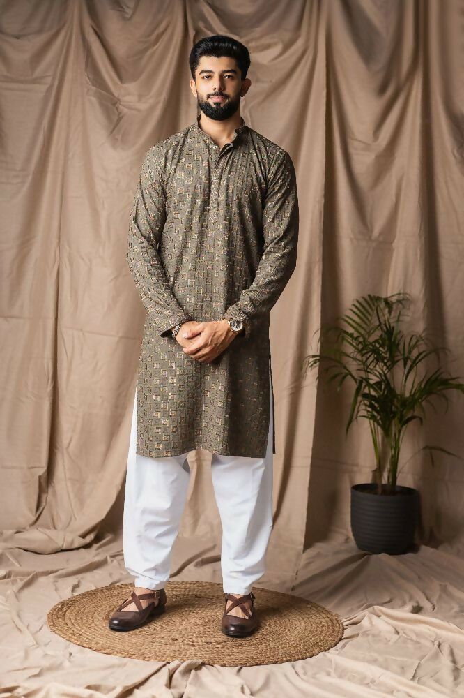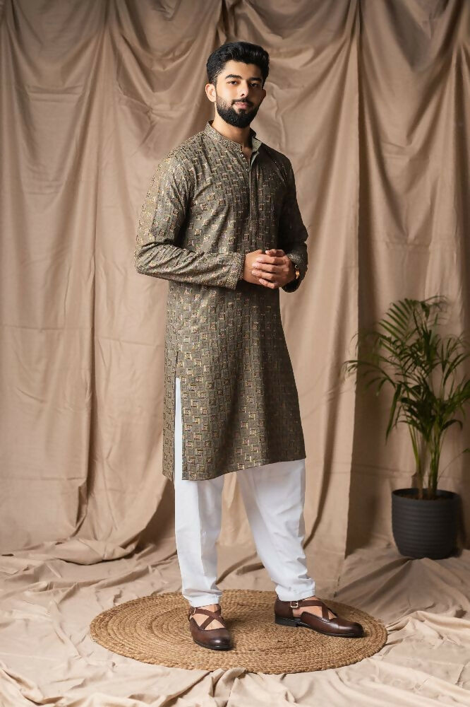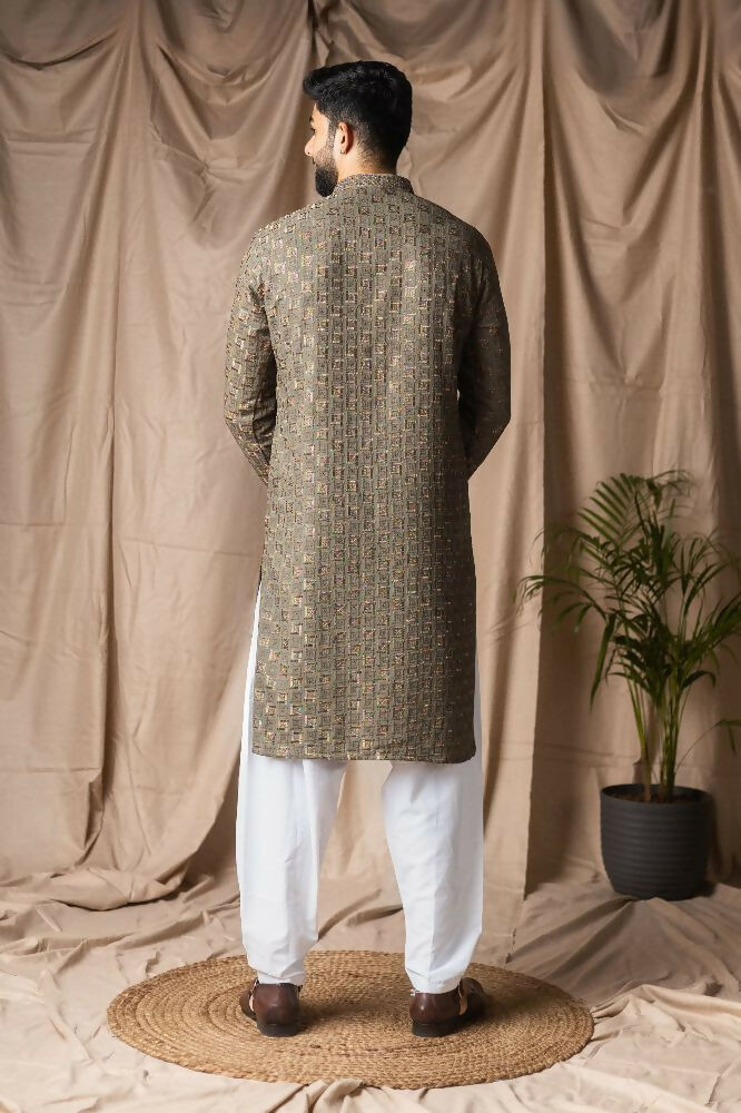 Mehandi Green Rayon Thread Embroidery Work Kurta Set - Mahotsav