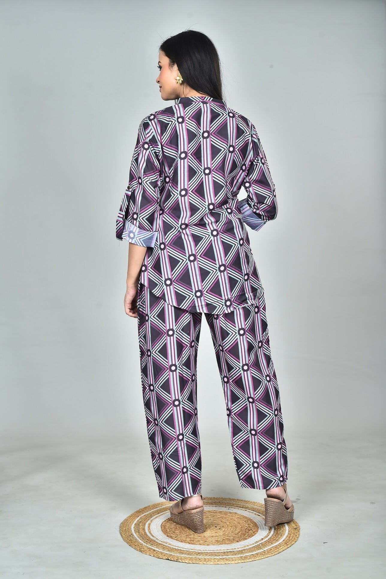 Morchari Digital Print Semi Muslin Co-Ord Set Top & Trouser-Multicolor