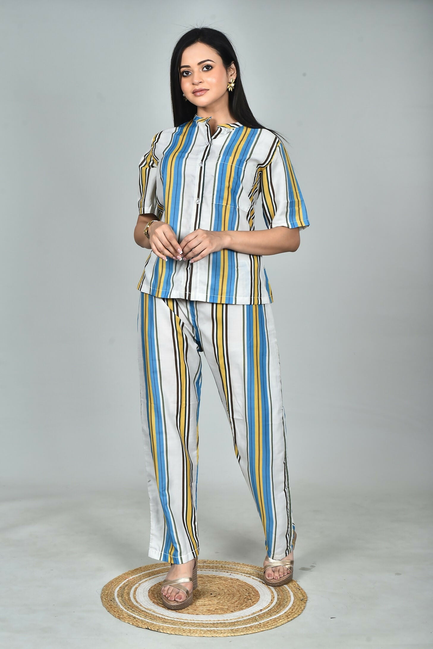 Morchari Digital Print Semi Muslin Co-Ord Set Top & Trouser-Multicolor