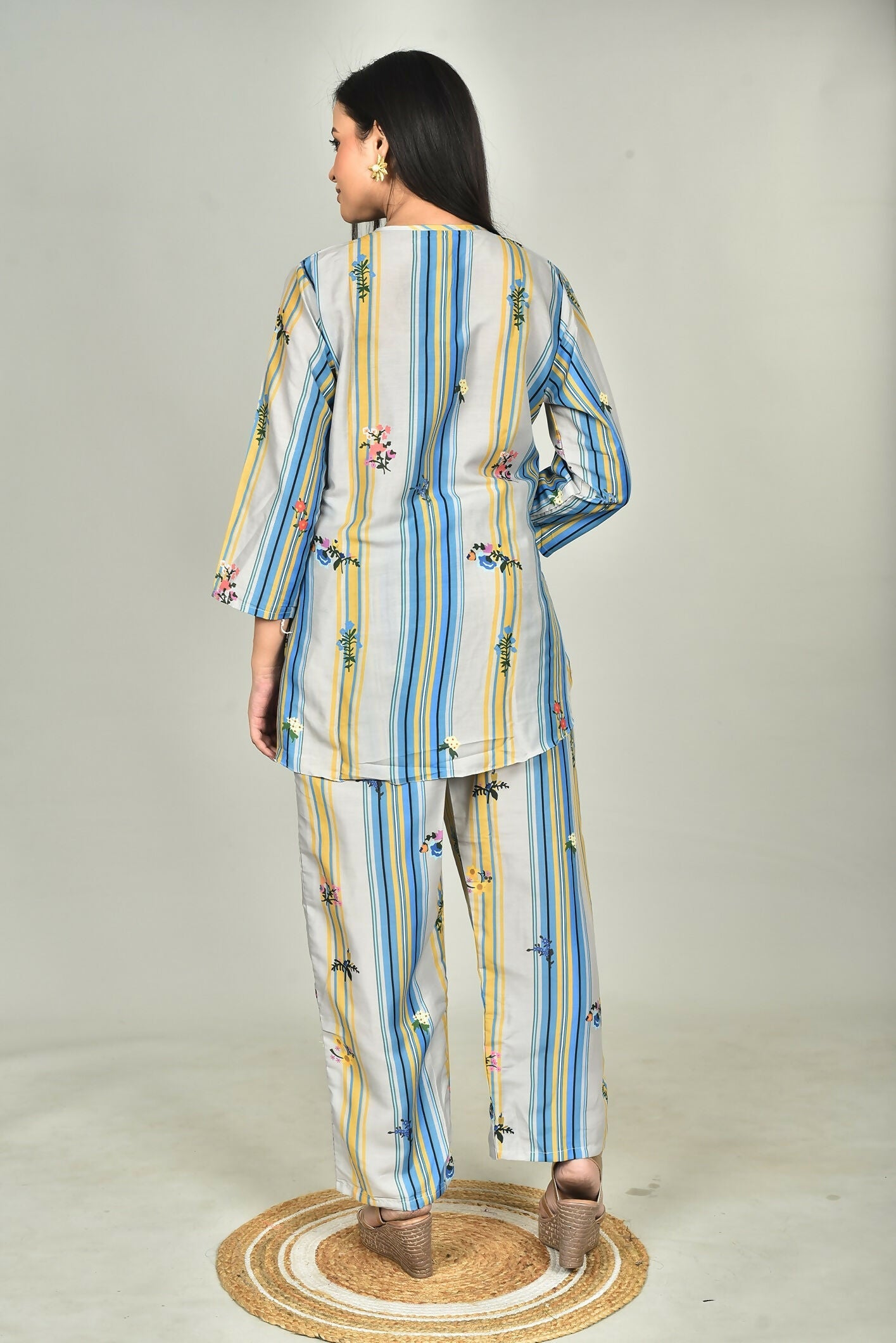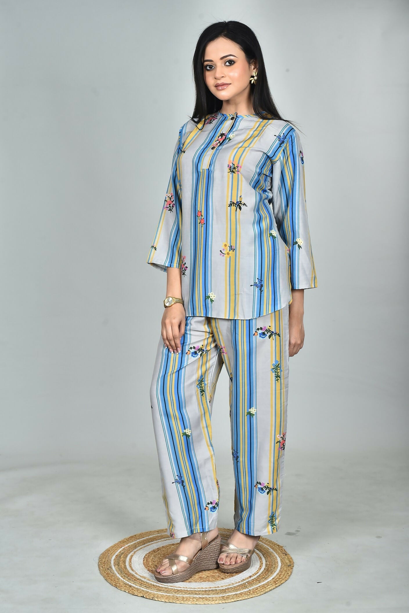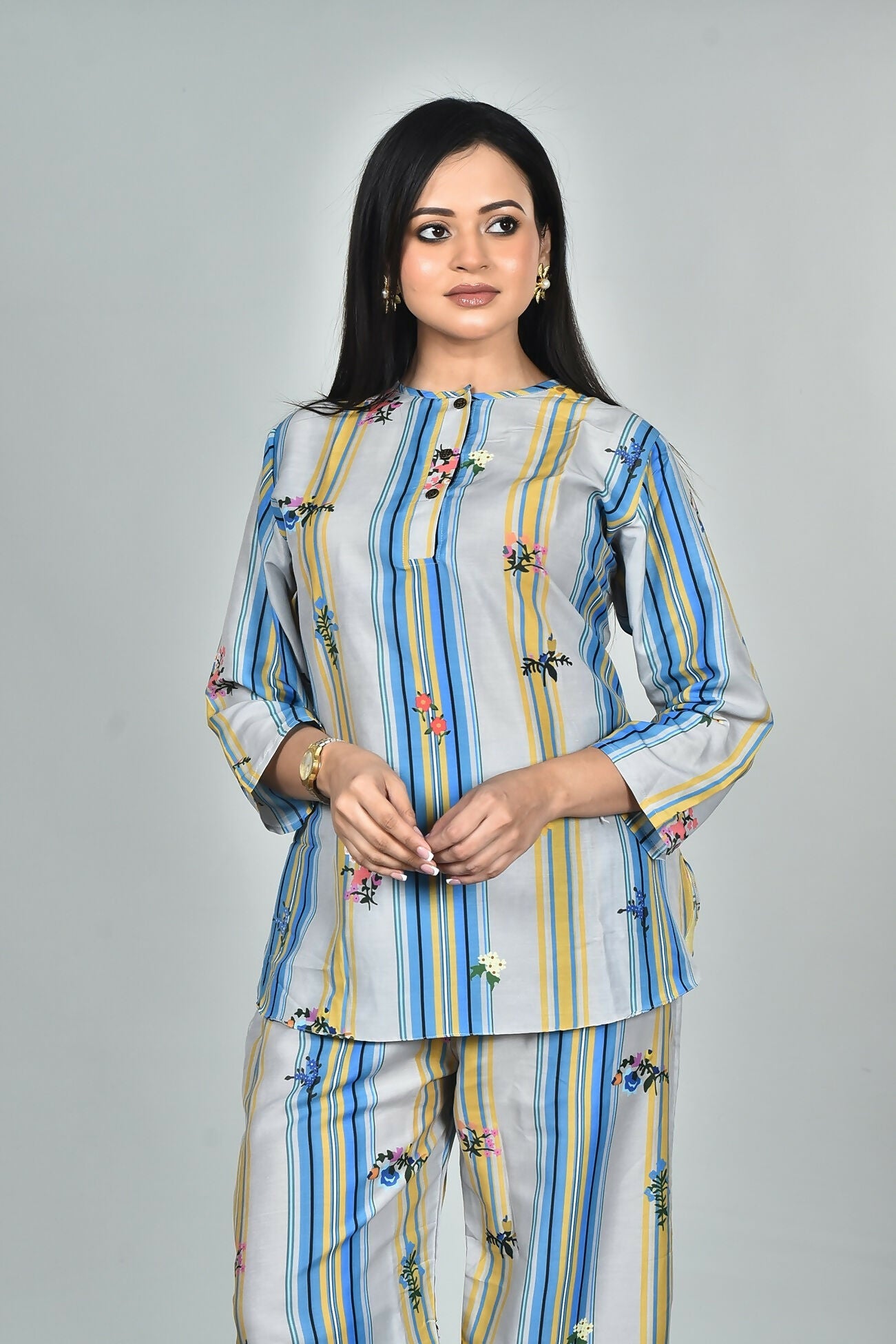Morchari Digital Print Semi Muslin Co-Ord Set Top & Trouser-Multicolor