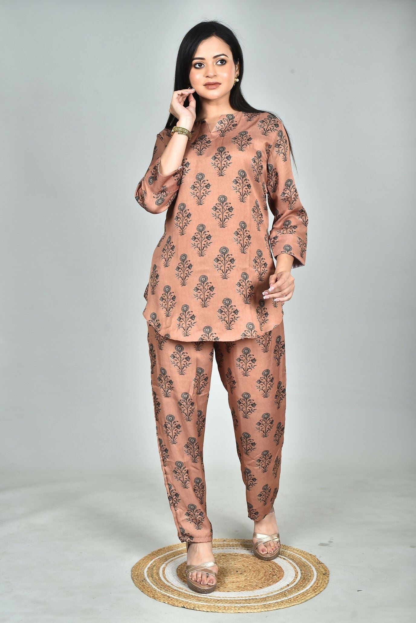 Morchari Digital Print Semi Muslin Co-Ord Set Top & Trouser-Multicolor