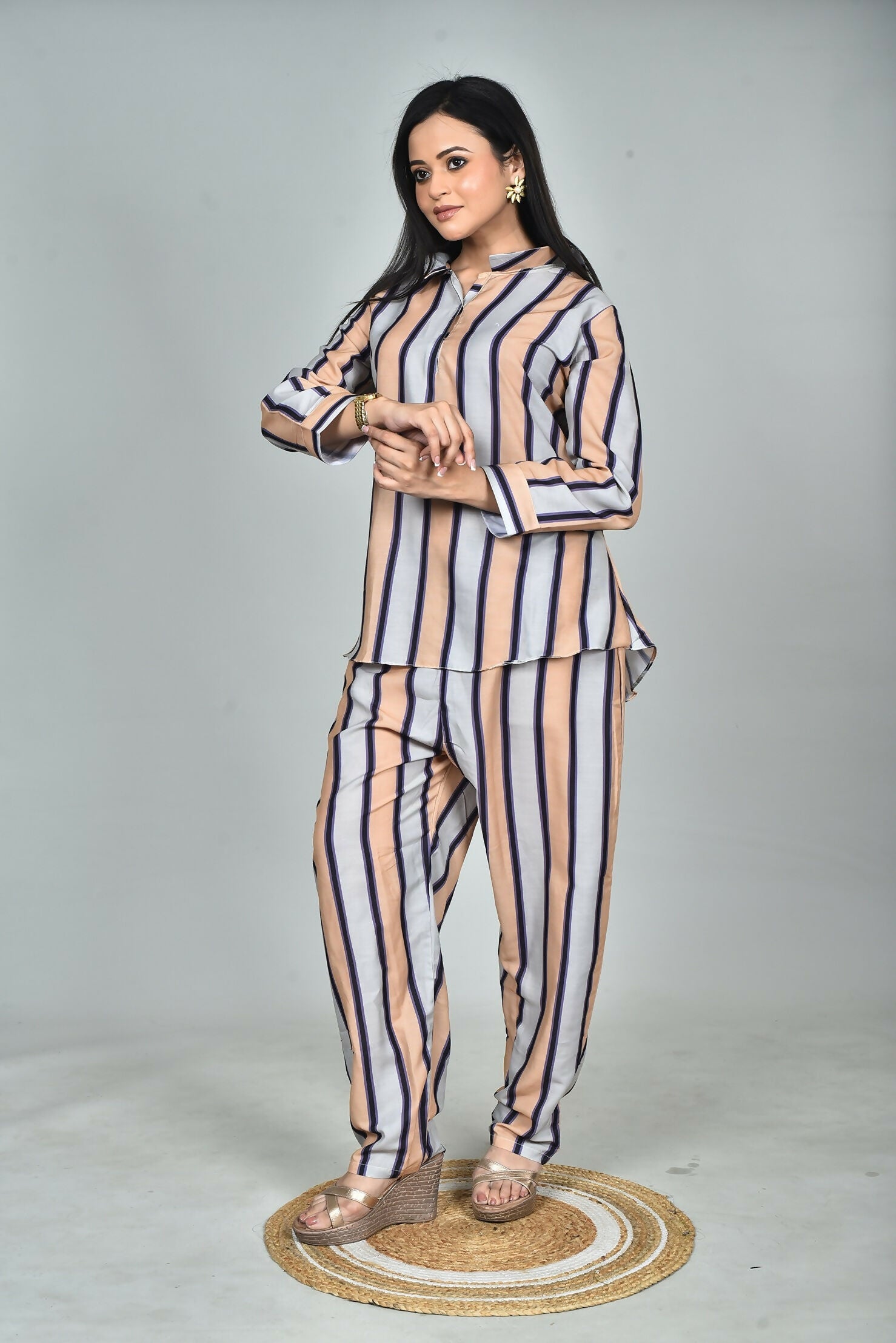Morchari Digital Print Semi Muslin Co-Ord Set Top & Trouser-Multicolor