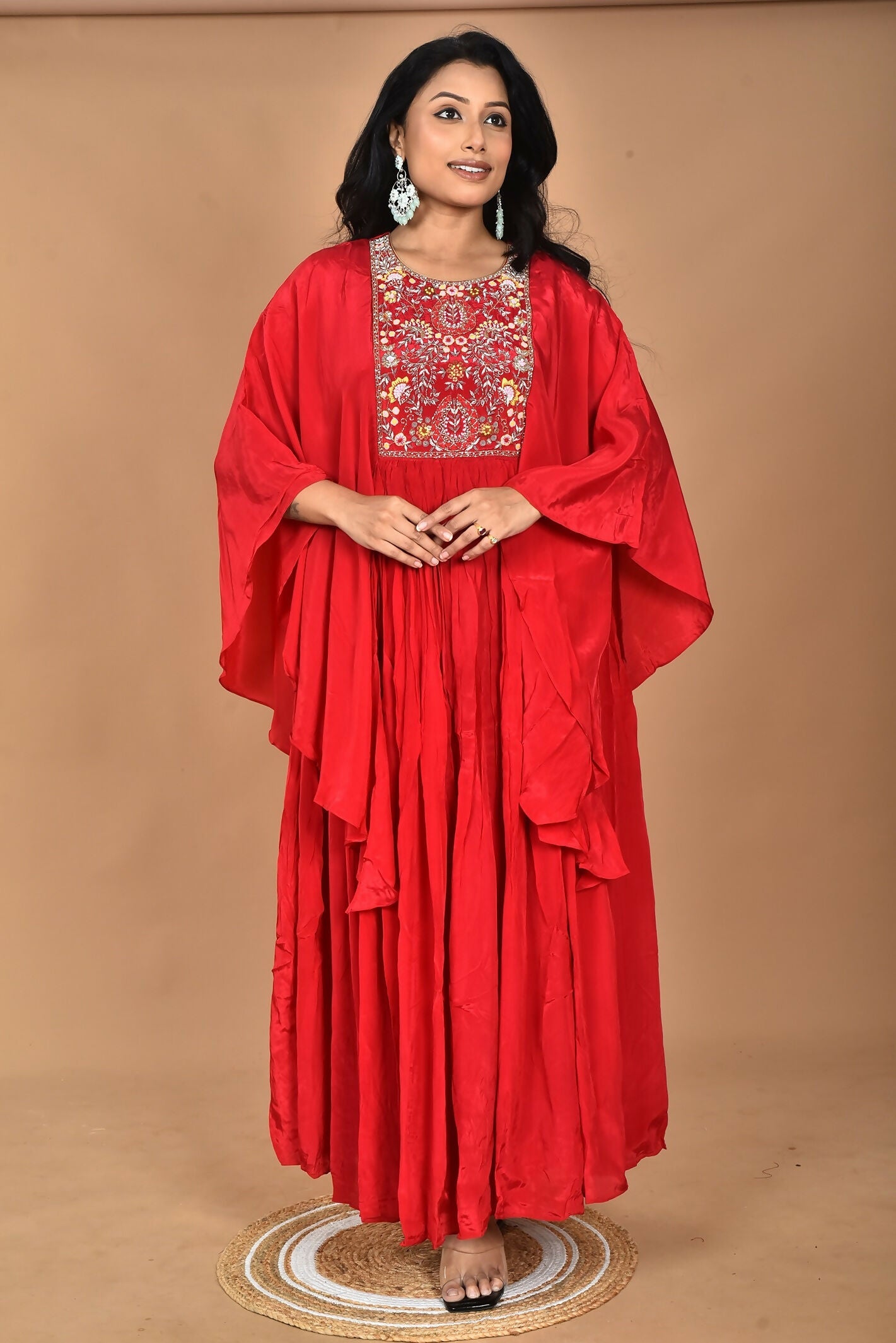 Morchari Kaftan Zari Embroidery Work Gown-Red