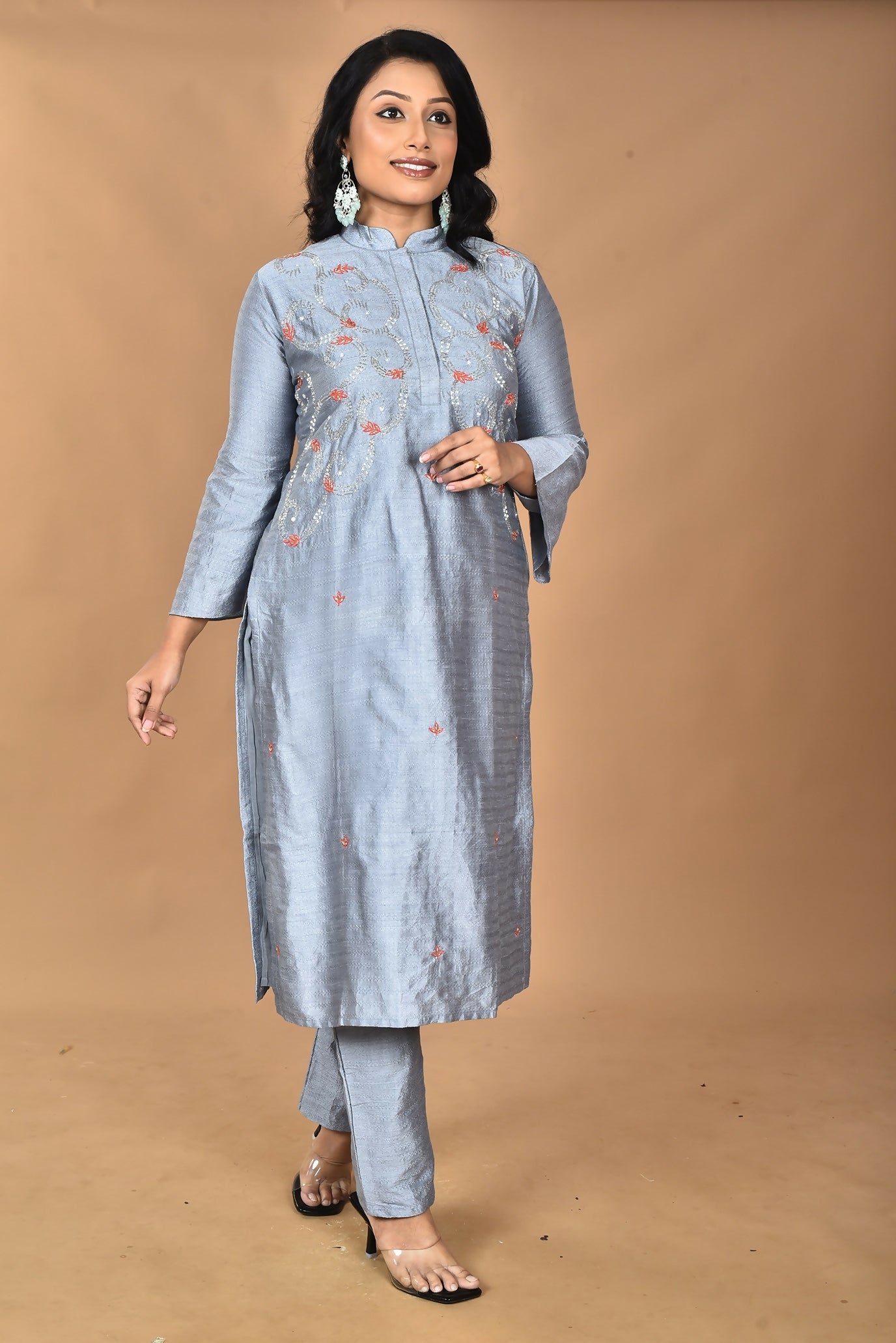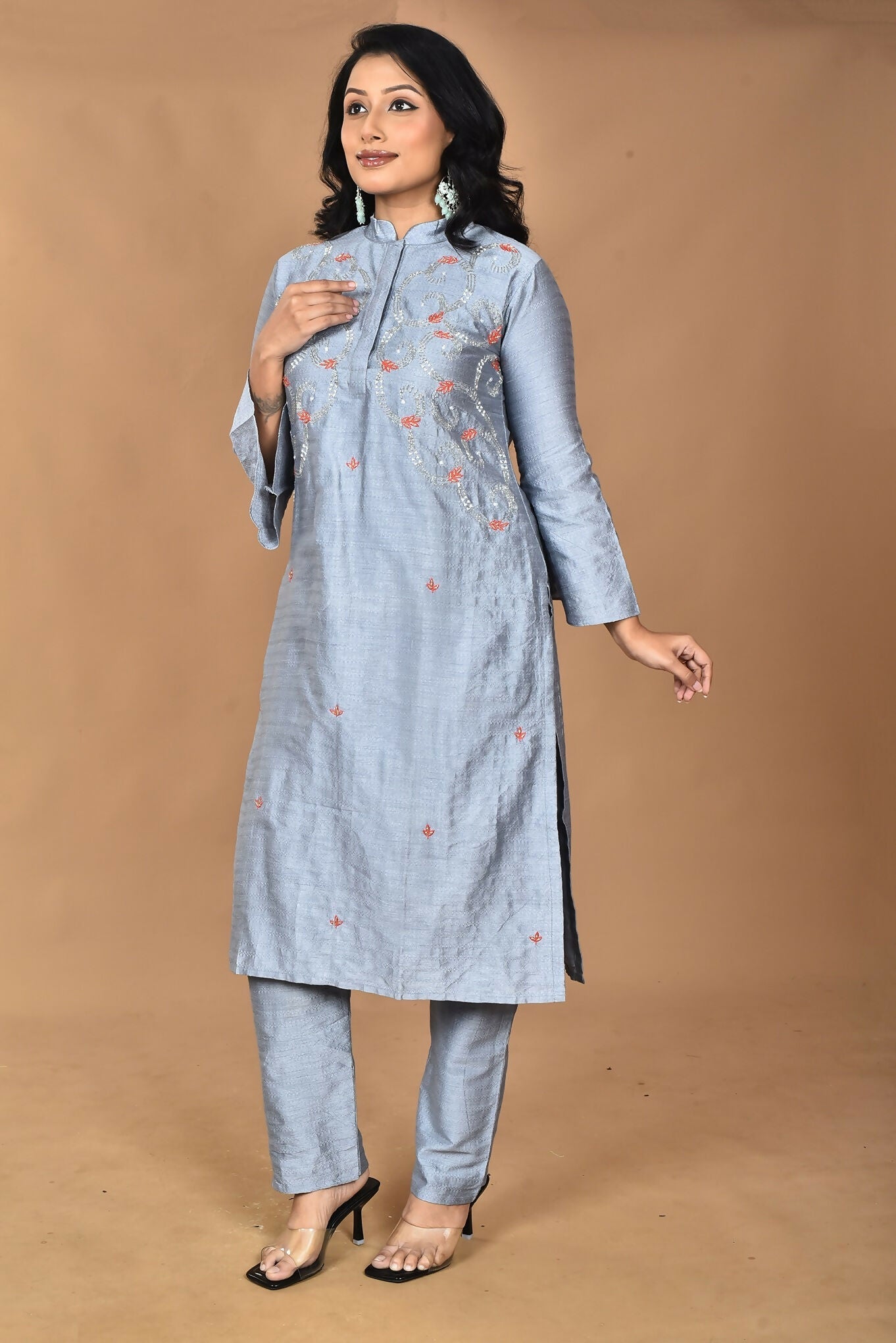 Morchari Women And Hand Embroidery Co-Ord Set-Grey